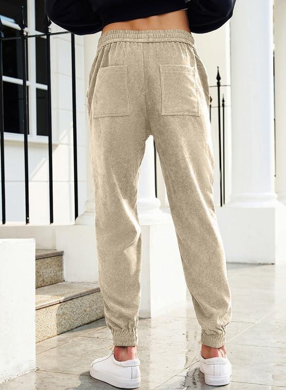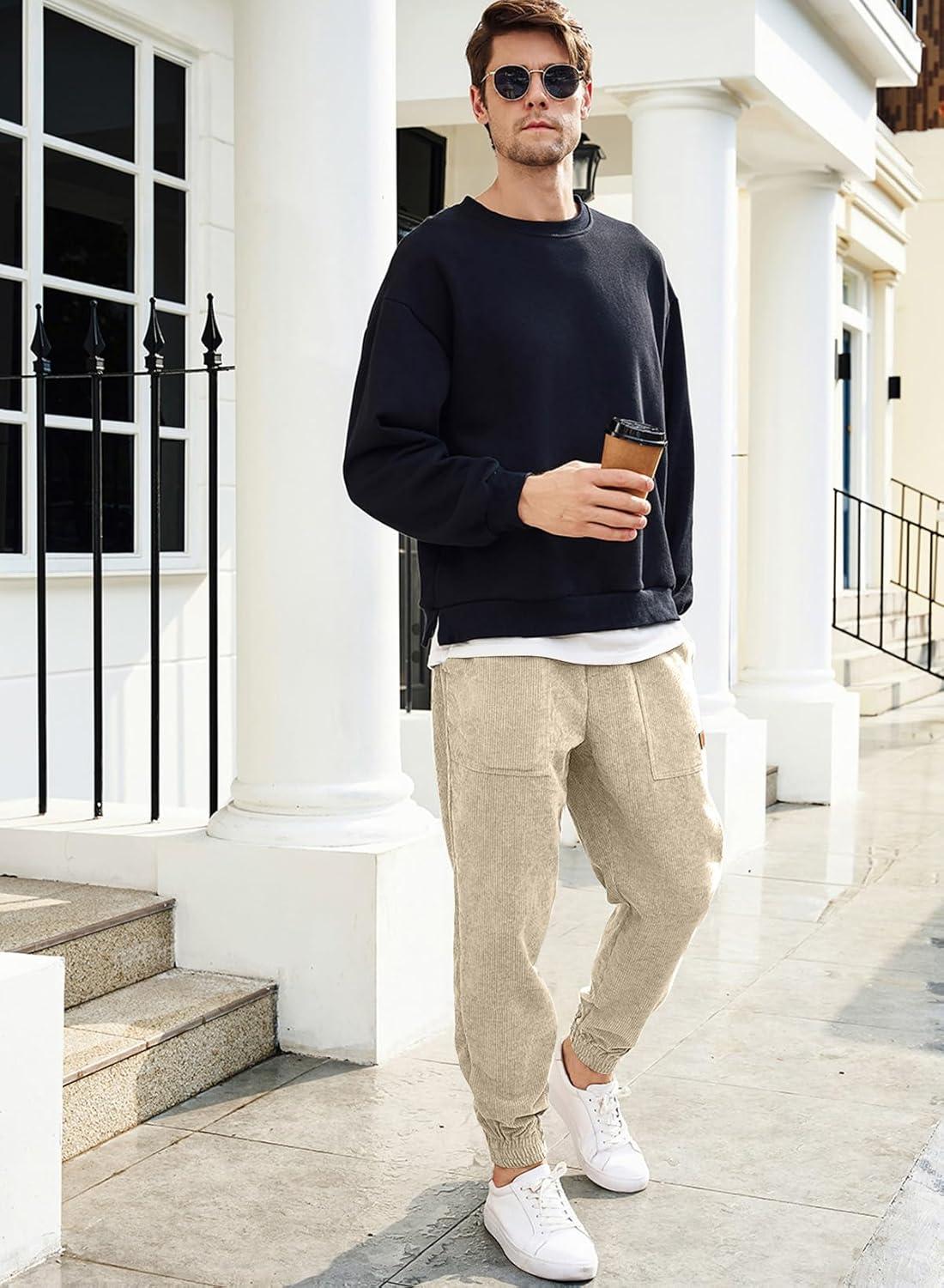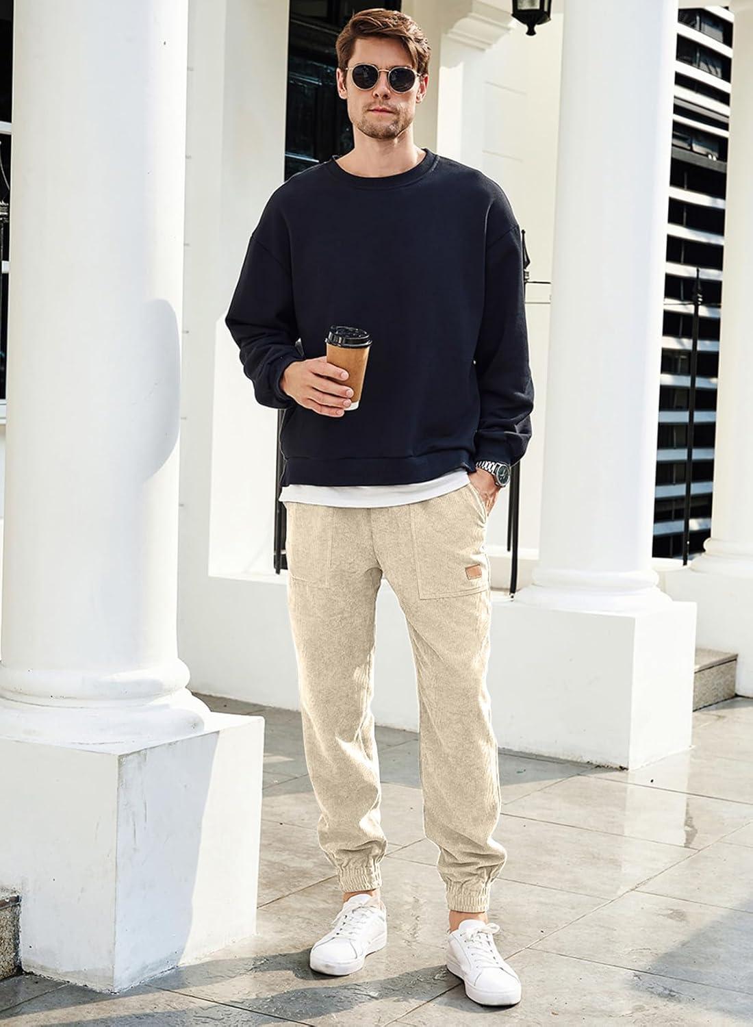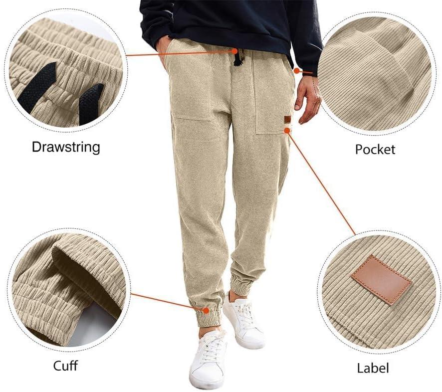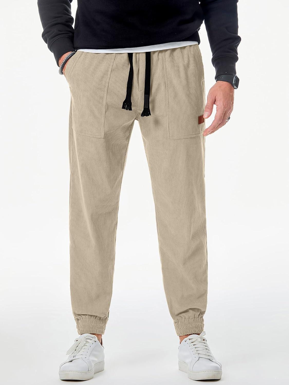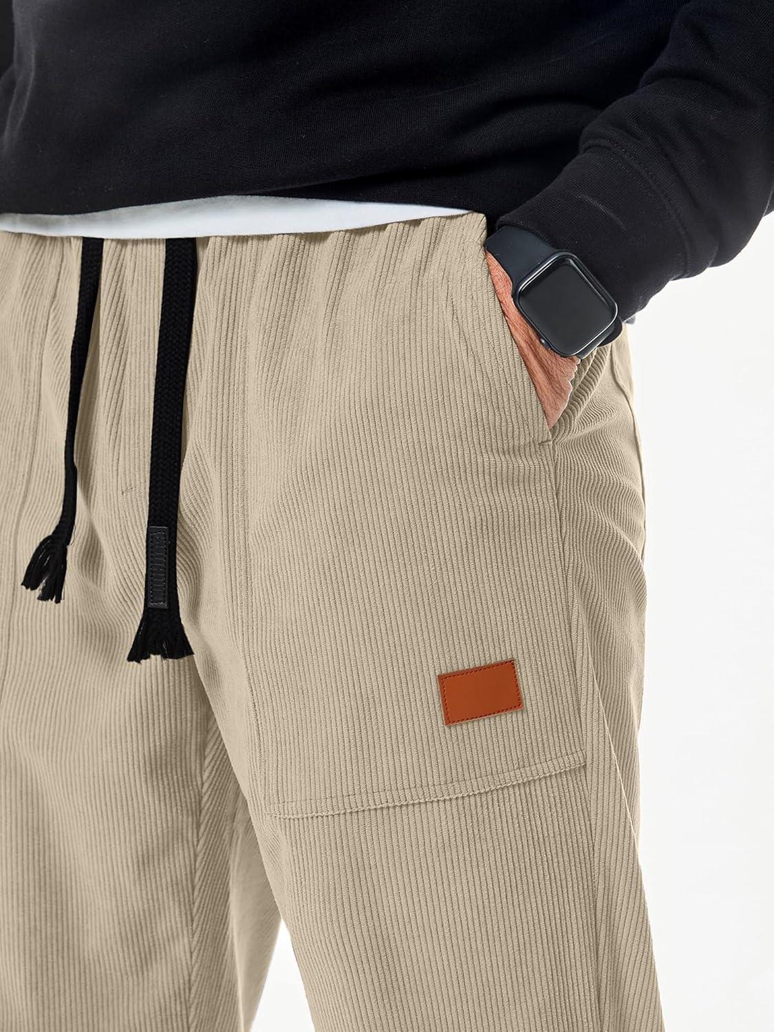 JMIERR Mens Corduroy Joggers Pants Casual Cargo Pants Drawstring Elastic Waist Baggy Tapered Sweatpants with Pockets(Light Khaki)