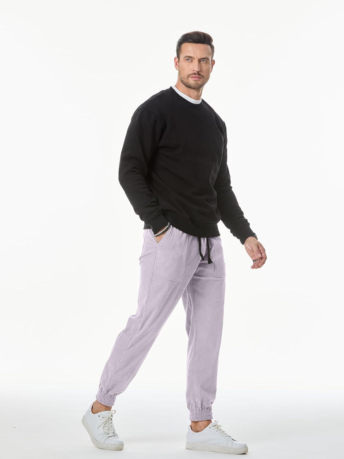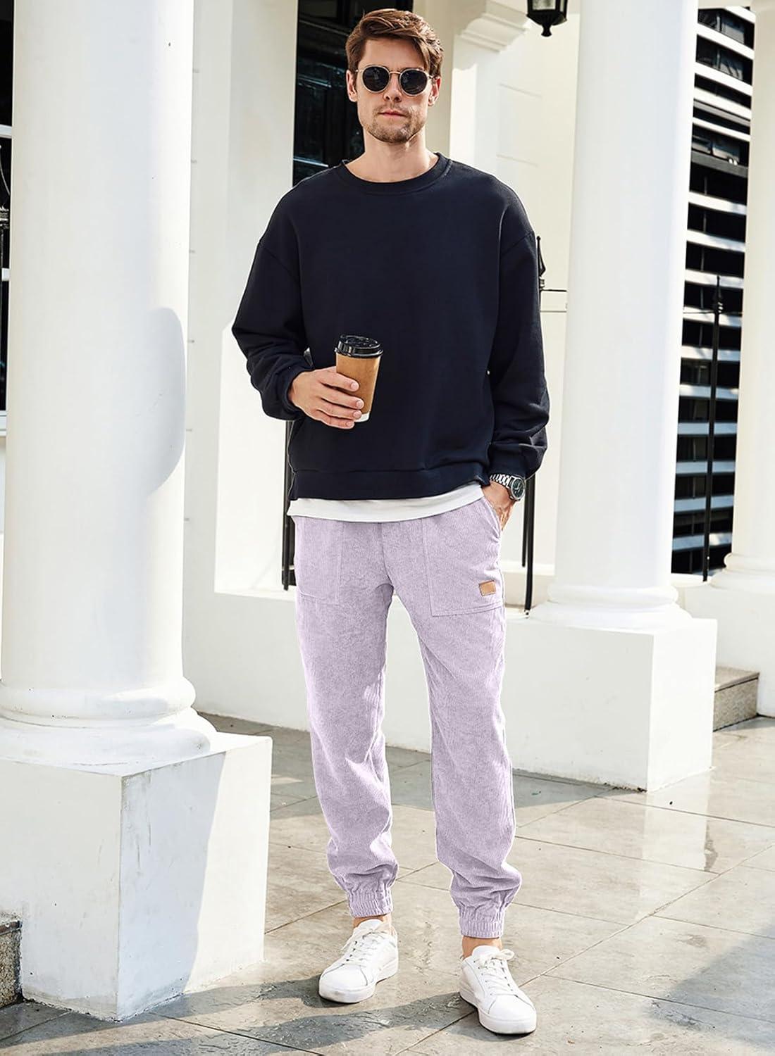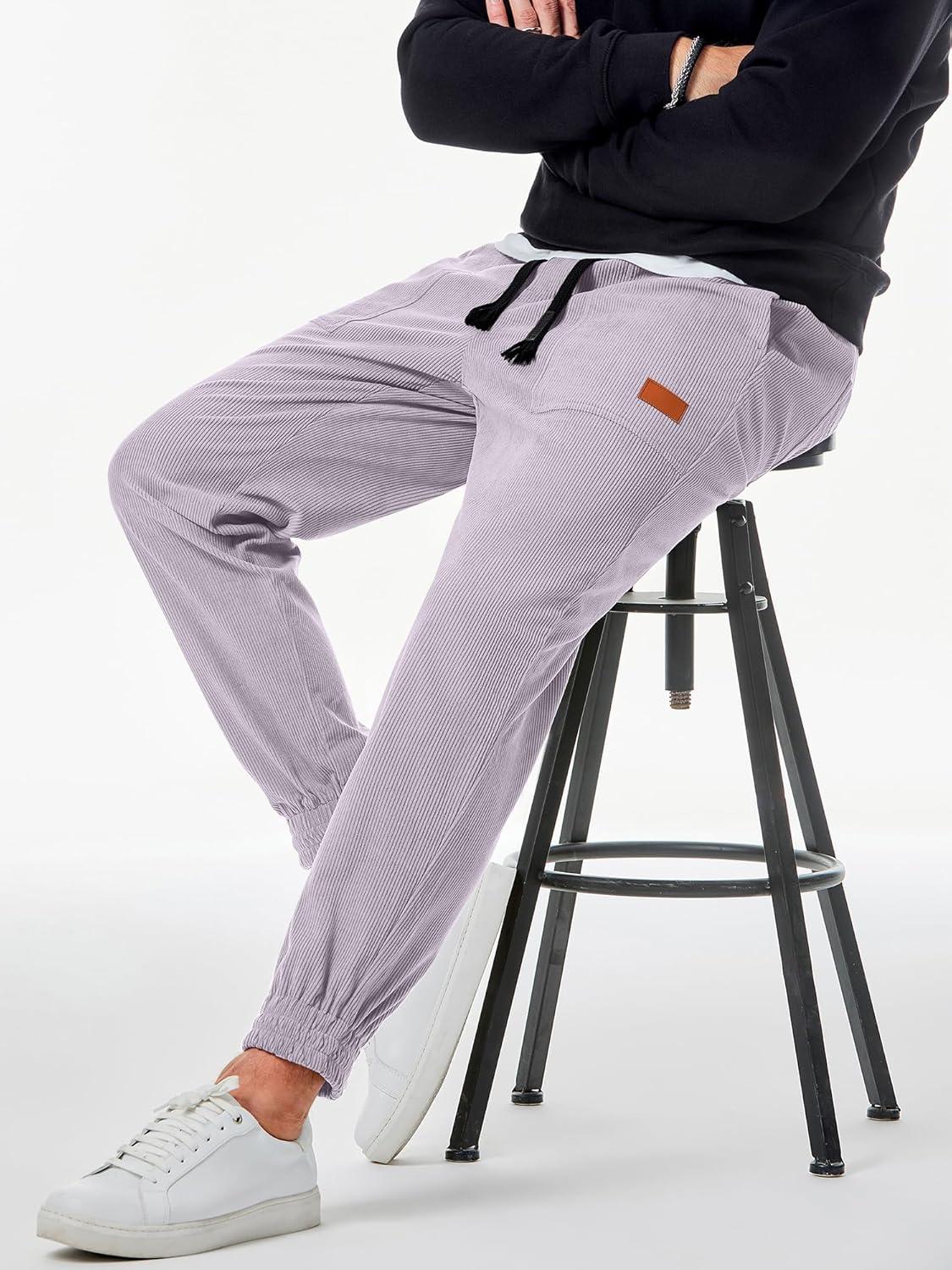 JMIERR Mens Corduroy Joggers Pants Casual Cargo Pants Drawstring Elastic Waist Baggy Tapered Sweatpants with Pockets(Purple)