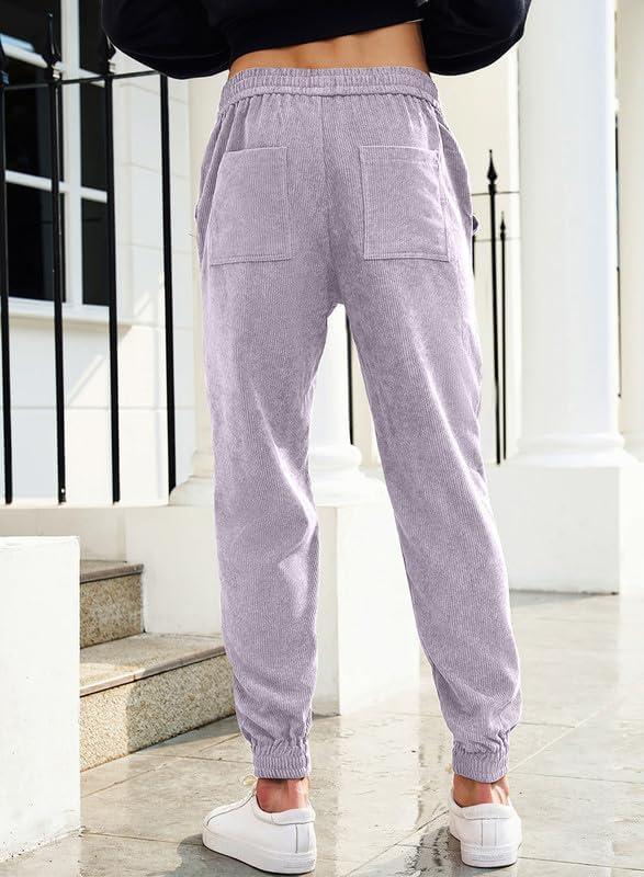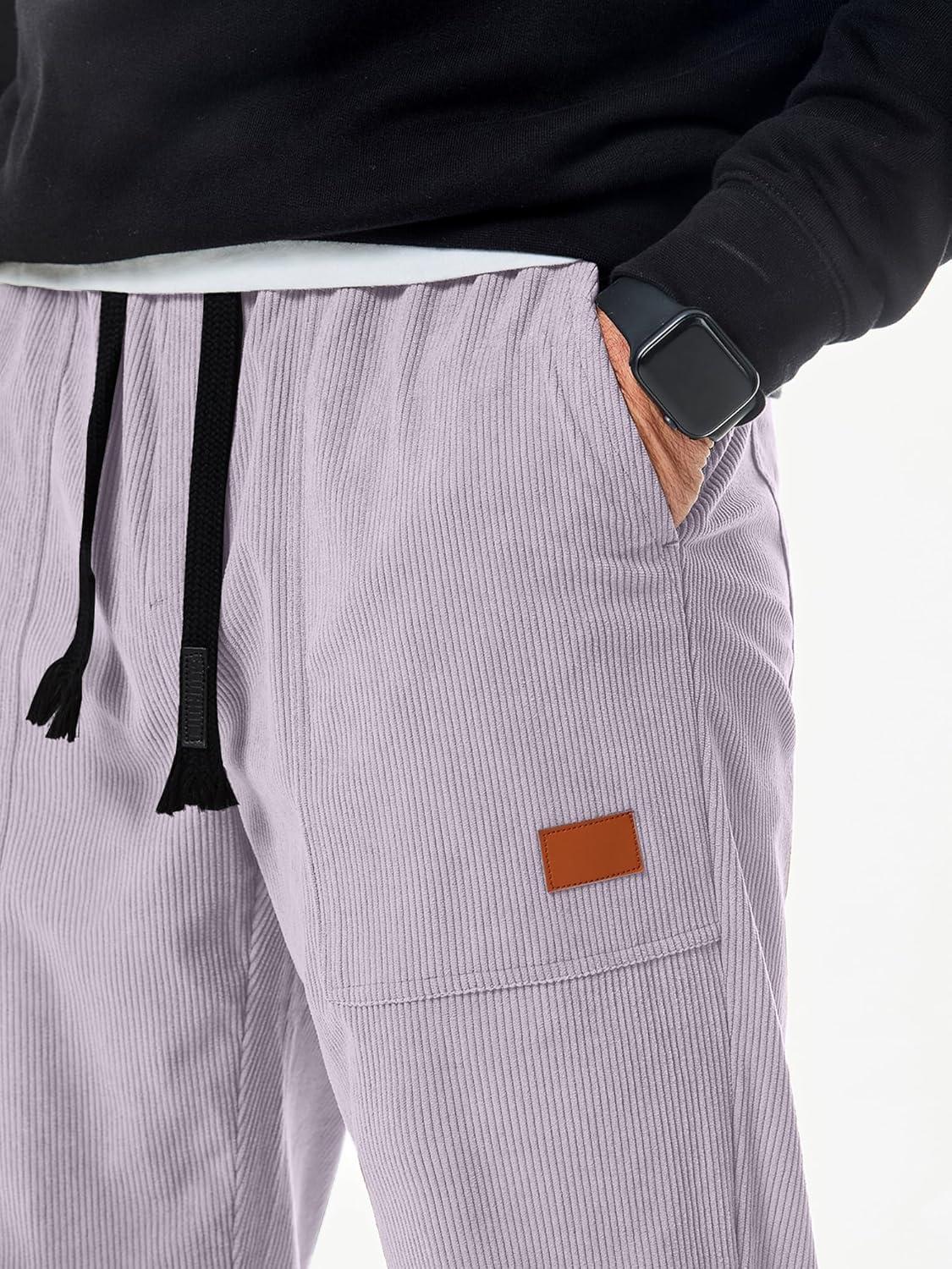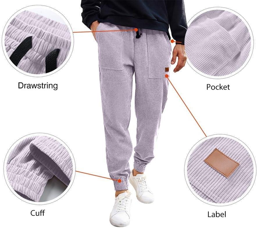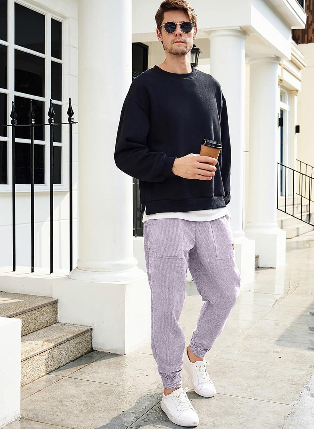 JMIERR Mens Corduroy Joggers Pants Casual Cargo Pants Drawstring Elastic Waist Baggy Tapered Sweatpants with Pockets(Purple)