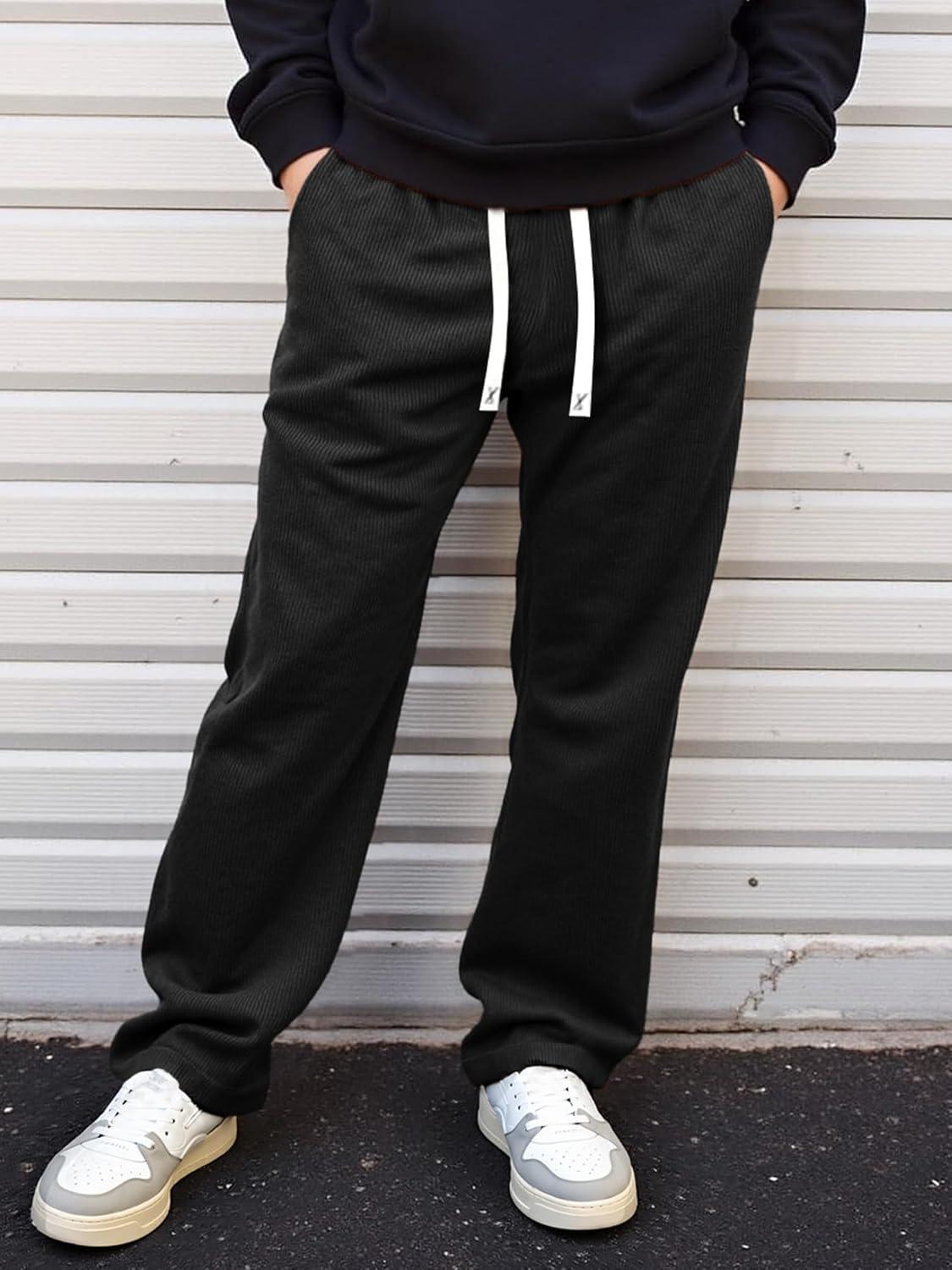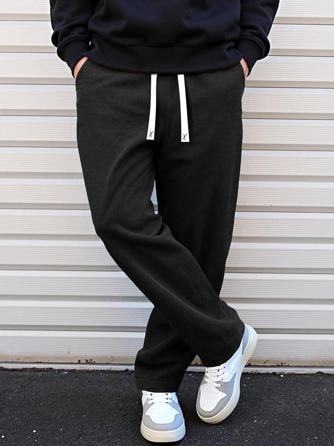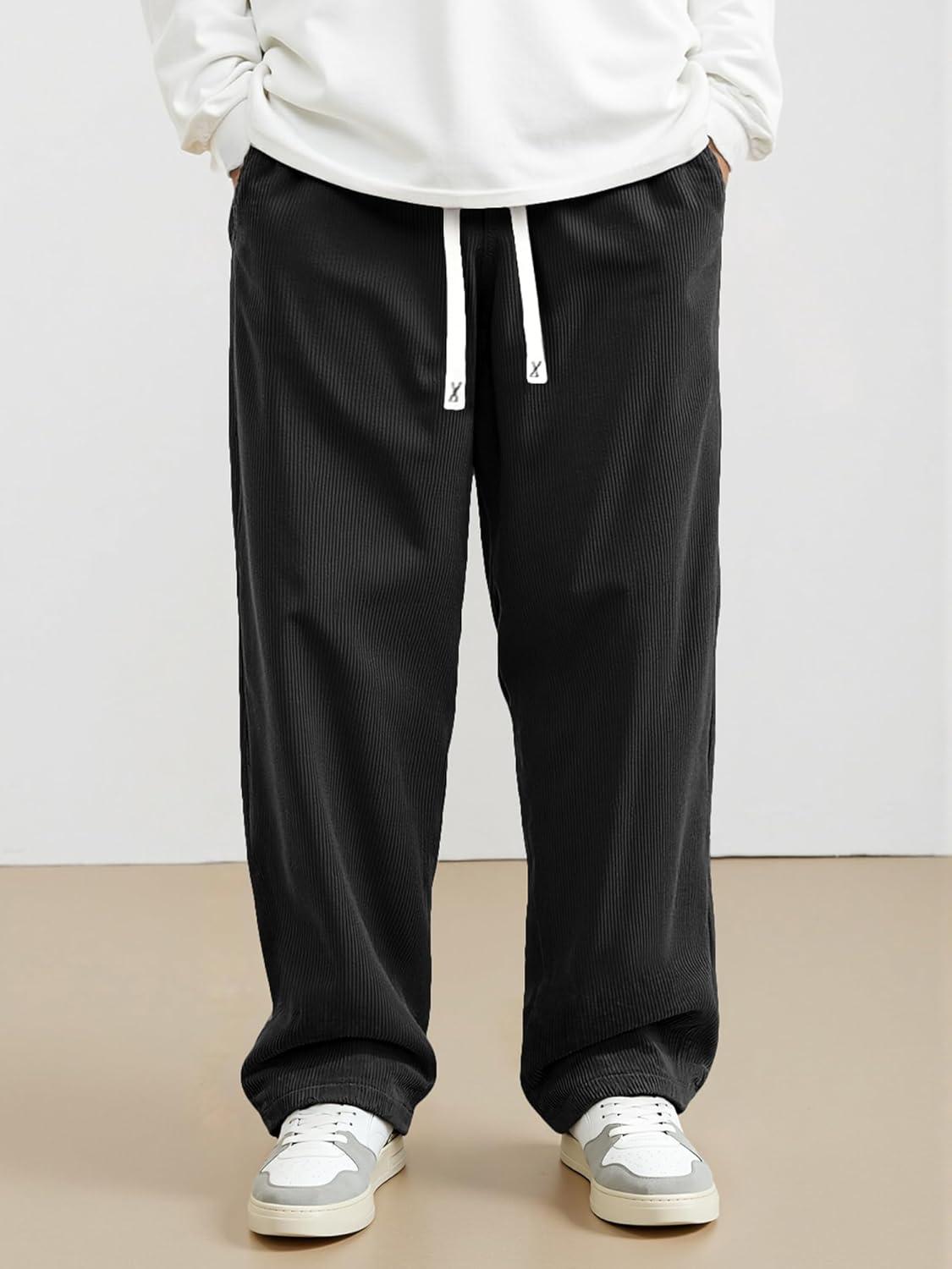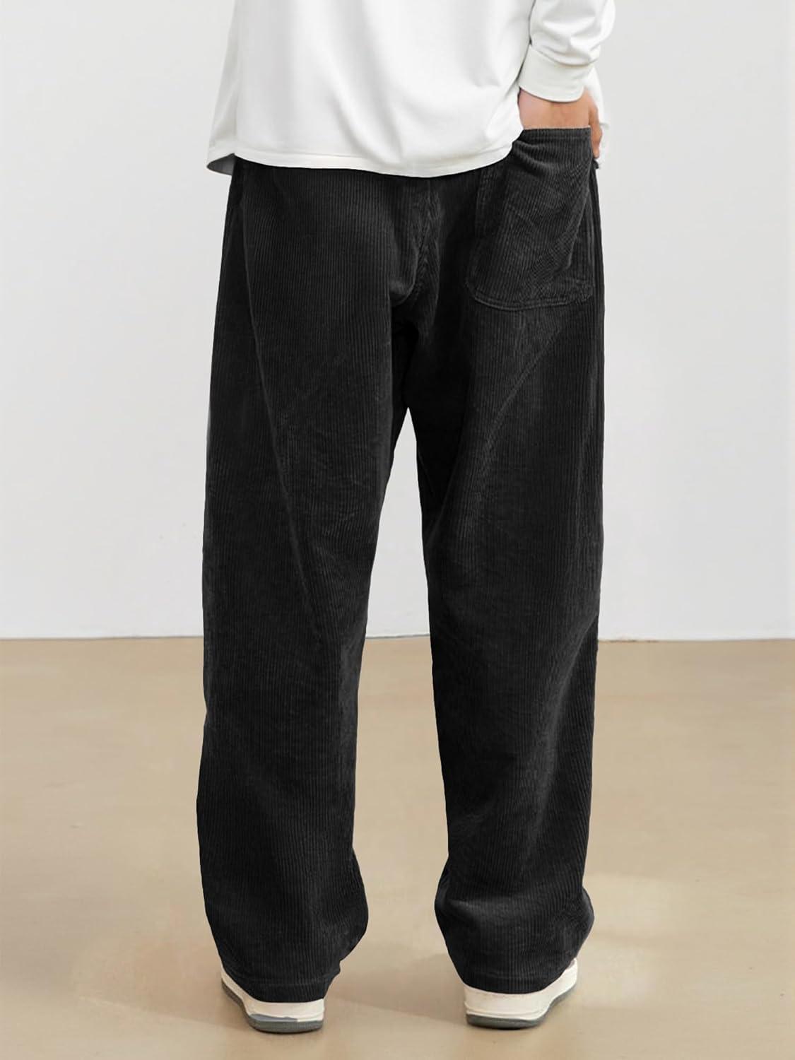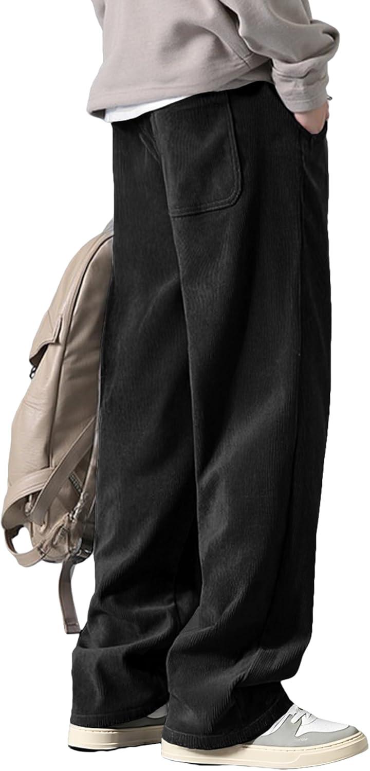 JMIERR Mens Corduroy Pants Casual Baggy Pants Wide Leg Loose Fit Joggers Sweatpants Elastic Waist Drawstring with Pockets(Black)