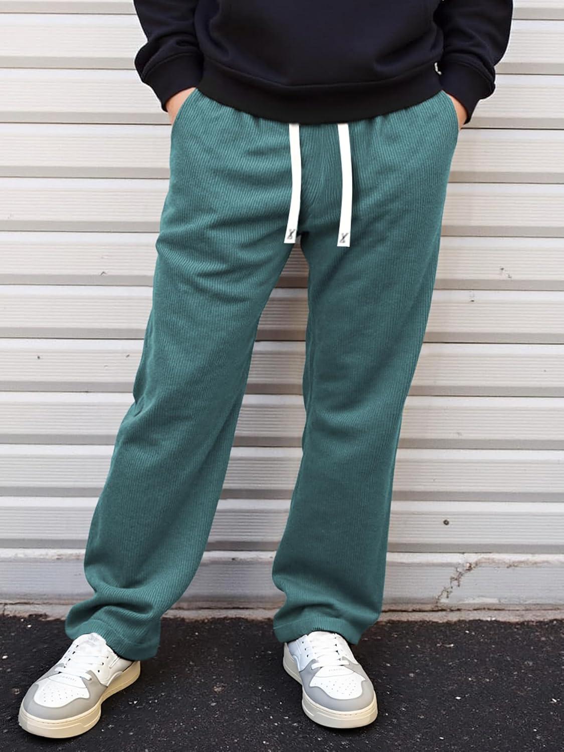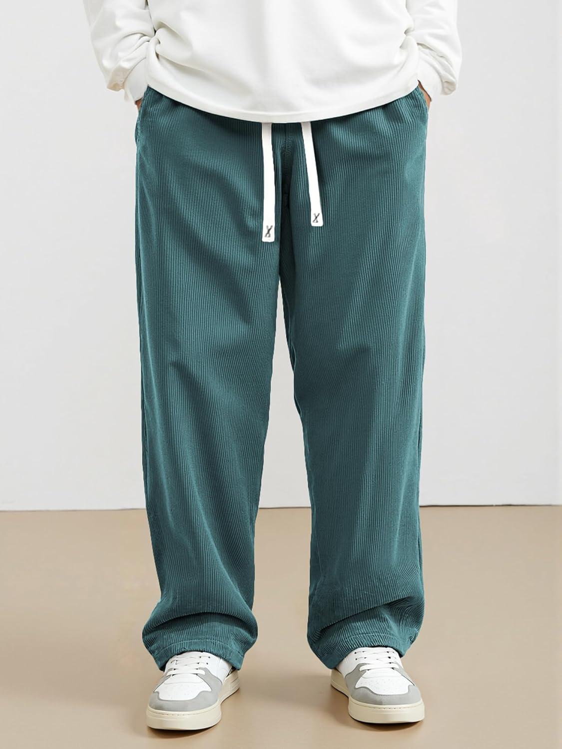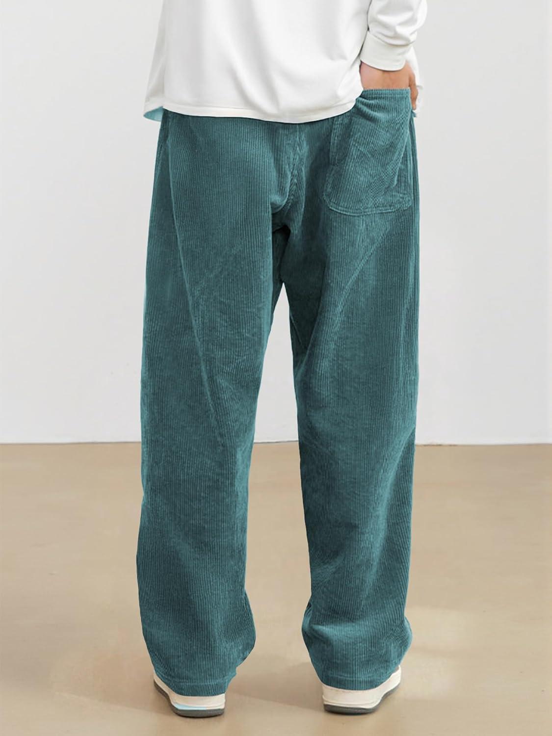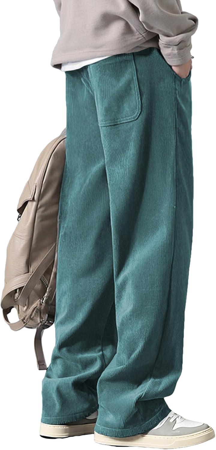 JMIERR Mens Corduroy Pants Casual Baggy Pants Wide Leg Loose Fit Joggers Sweatpants Elastic Waist Drawstring with Pockets(Blue)