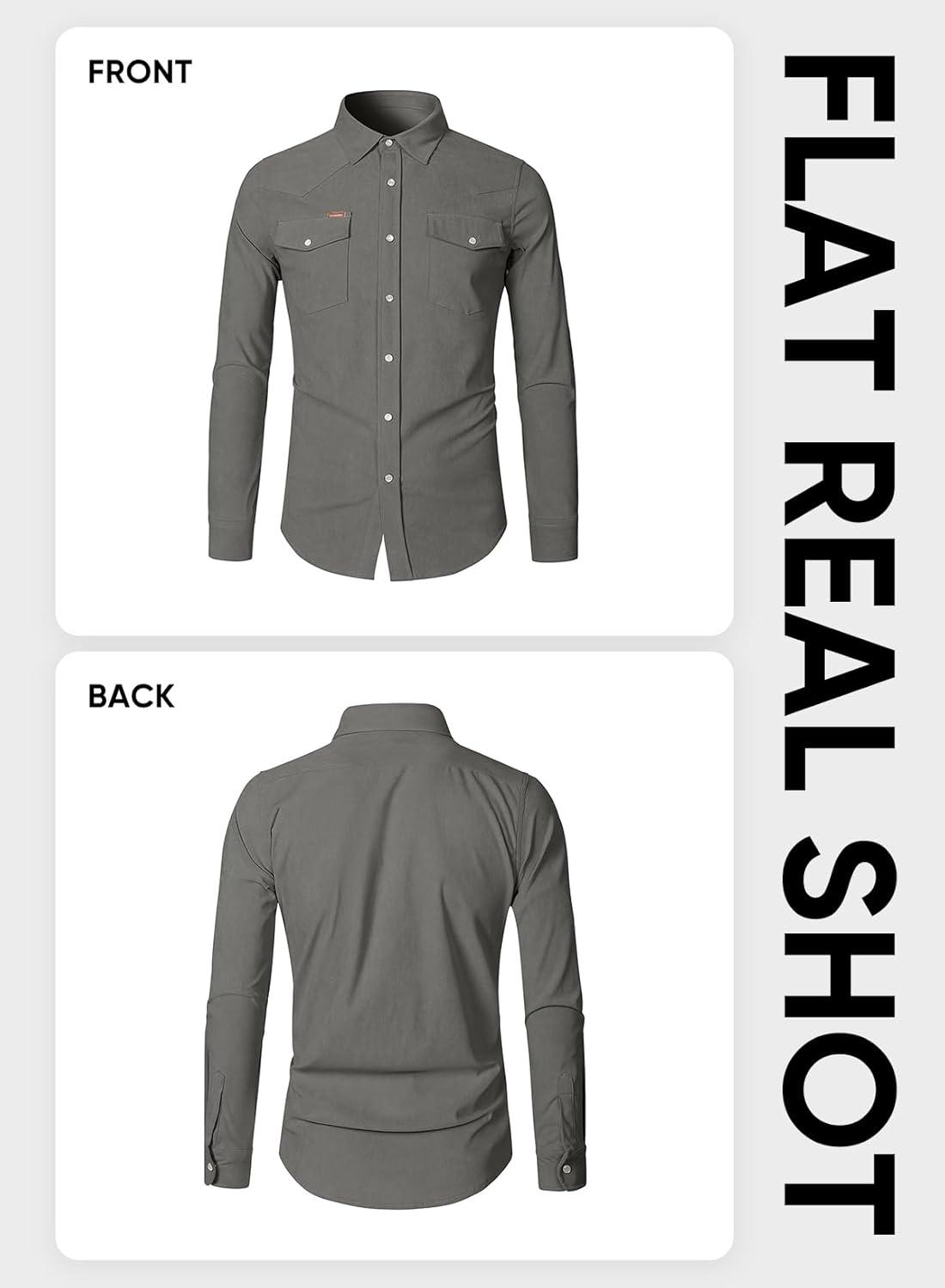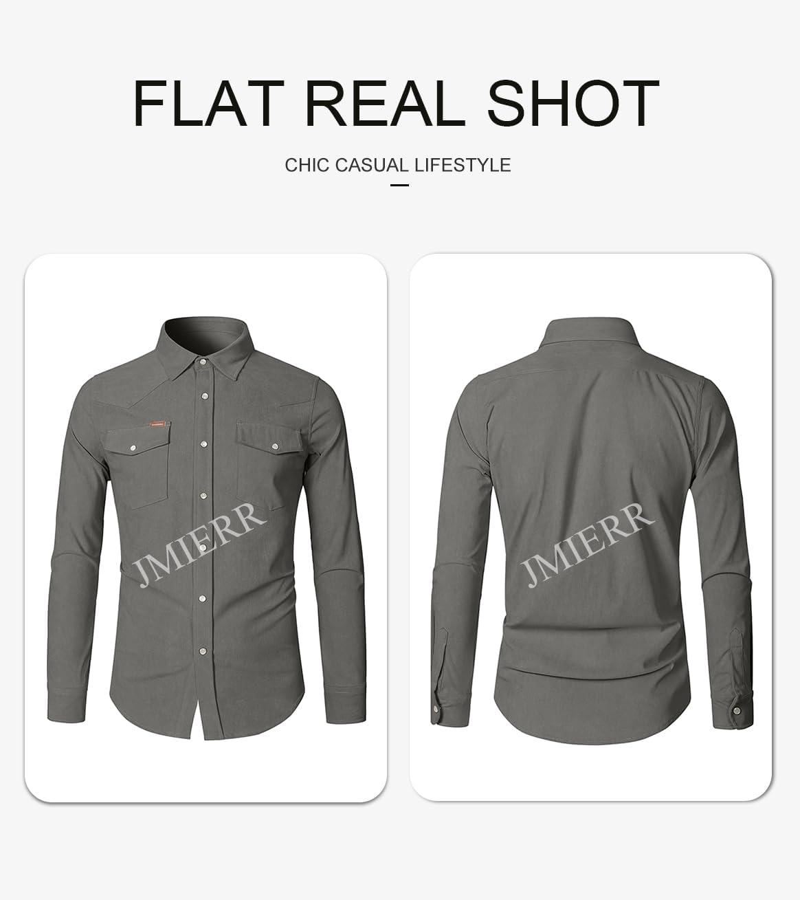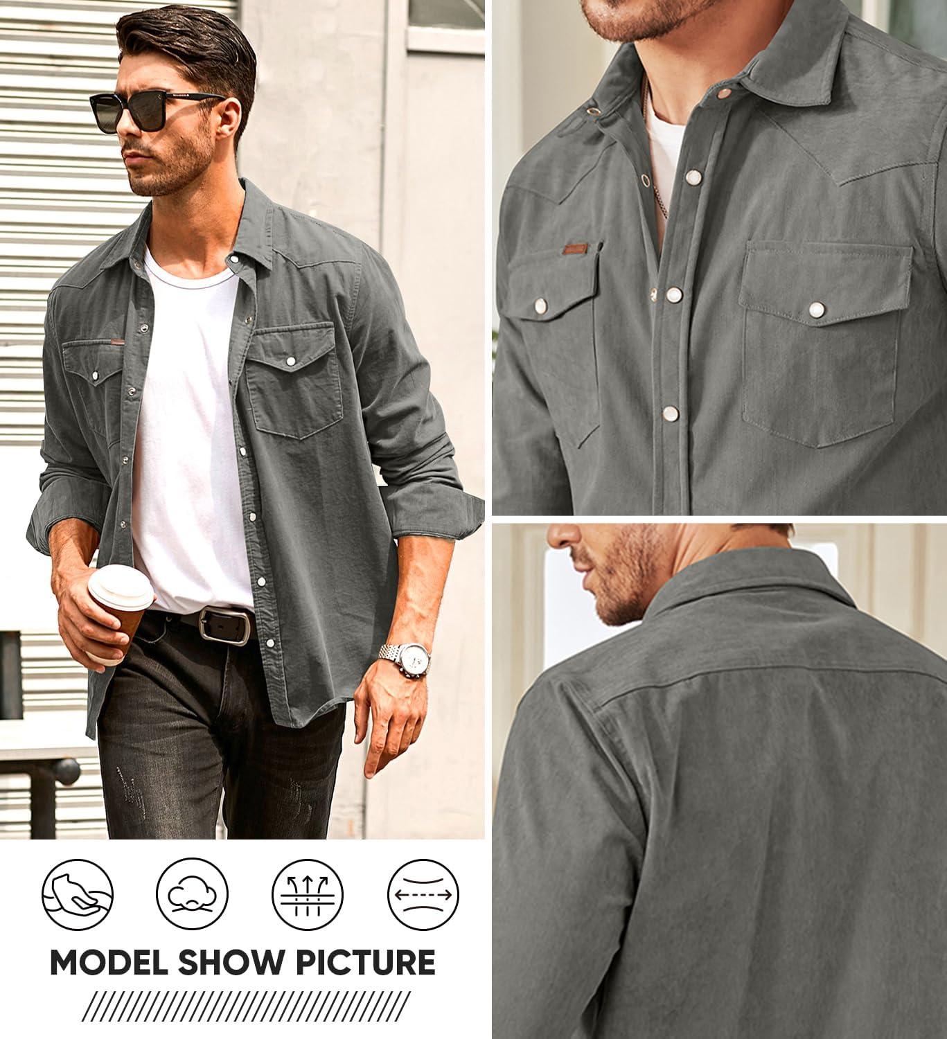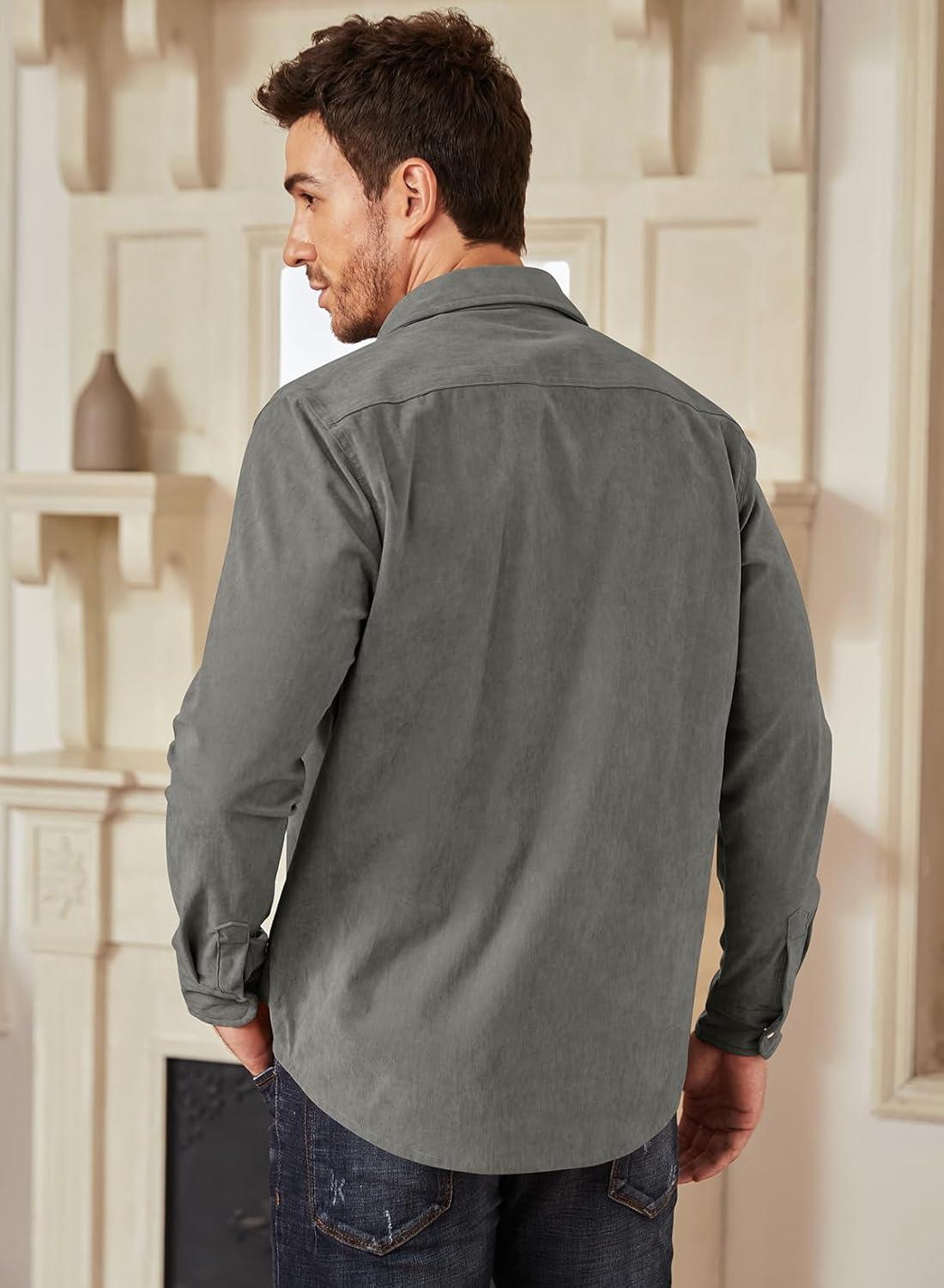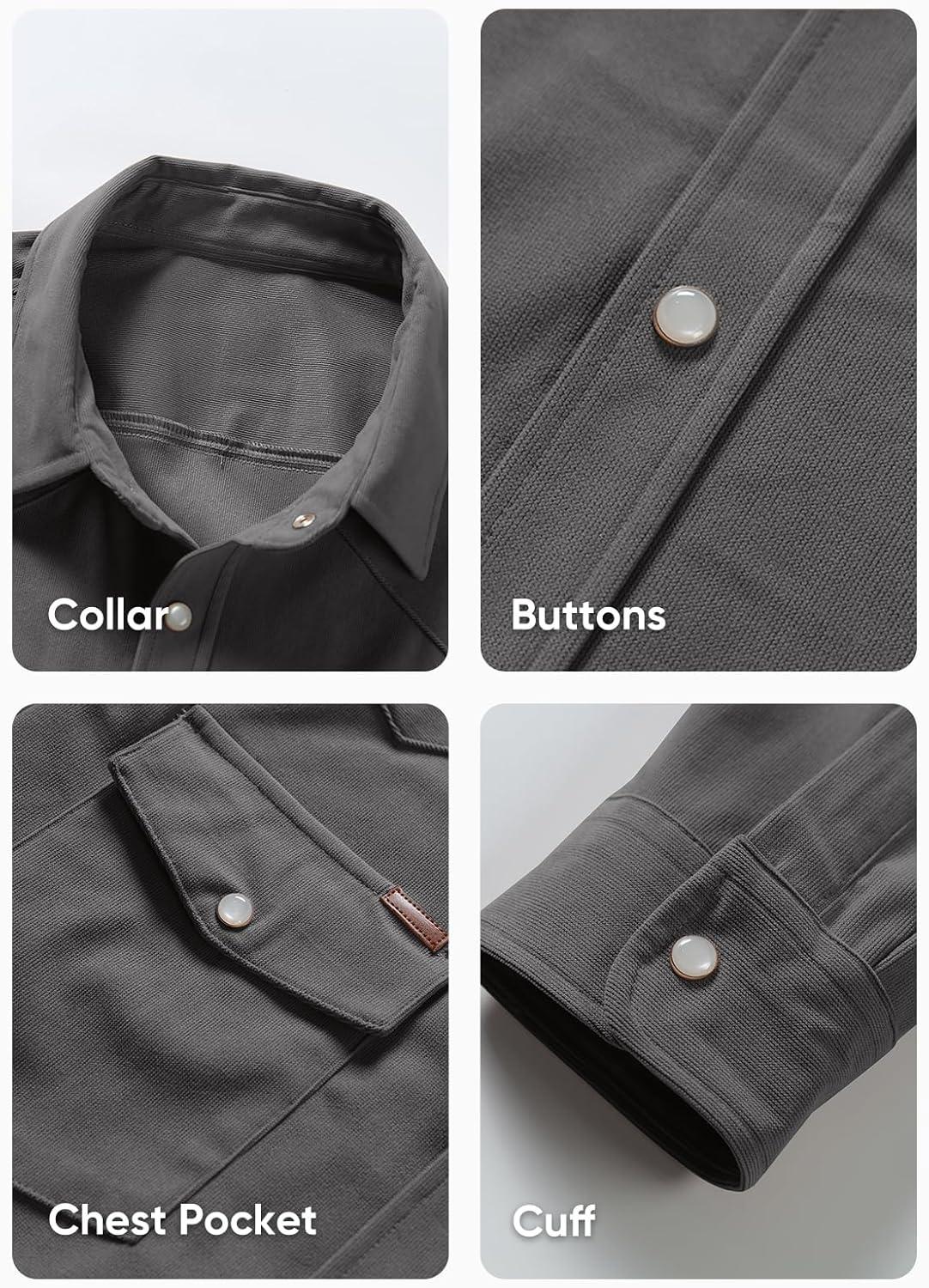 JMIERR Men’s Corduroy Shirts Casual Western Long Sleeve Button Down Shacket Jackets with 2 Flap Pocket(A6 Grey)