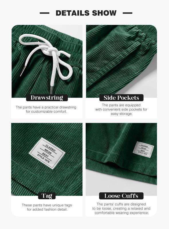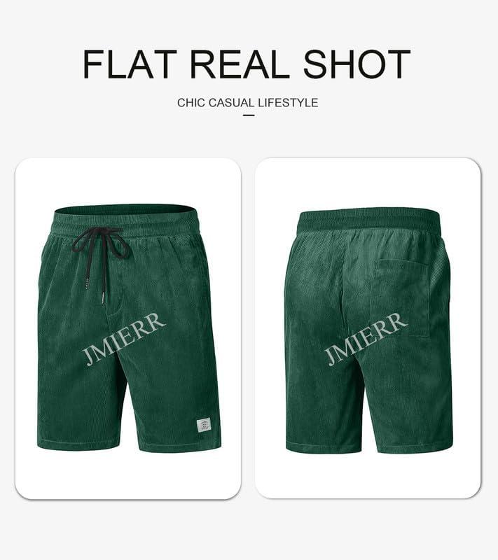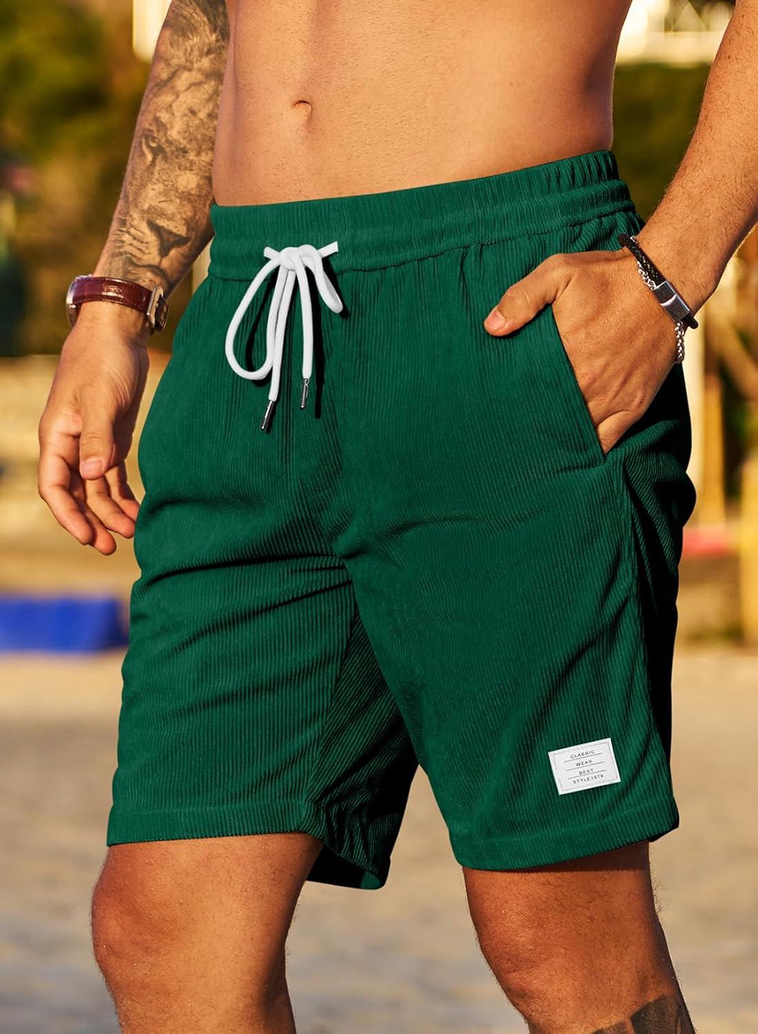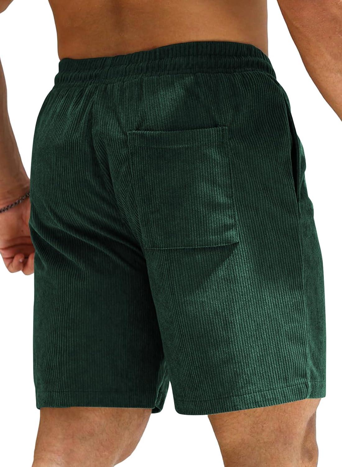 JMIERR Men’s Corduroy Shorts Casual Elastic Waist Drawstring Lightweight Summer Beach Shorts(A3 Blackish Green)