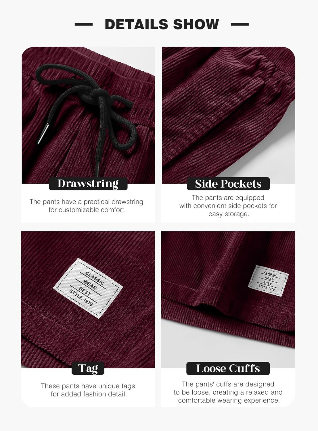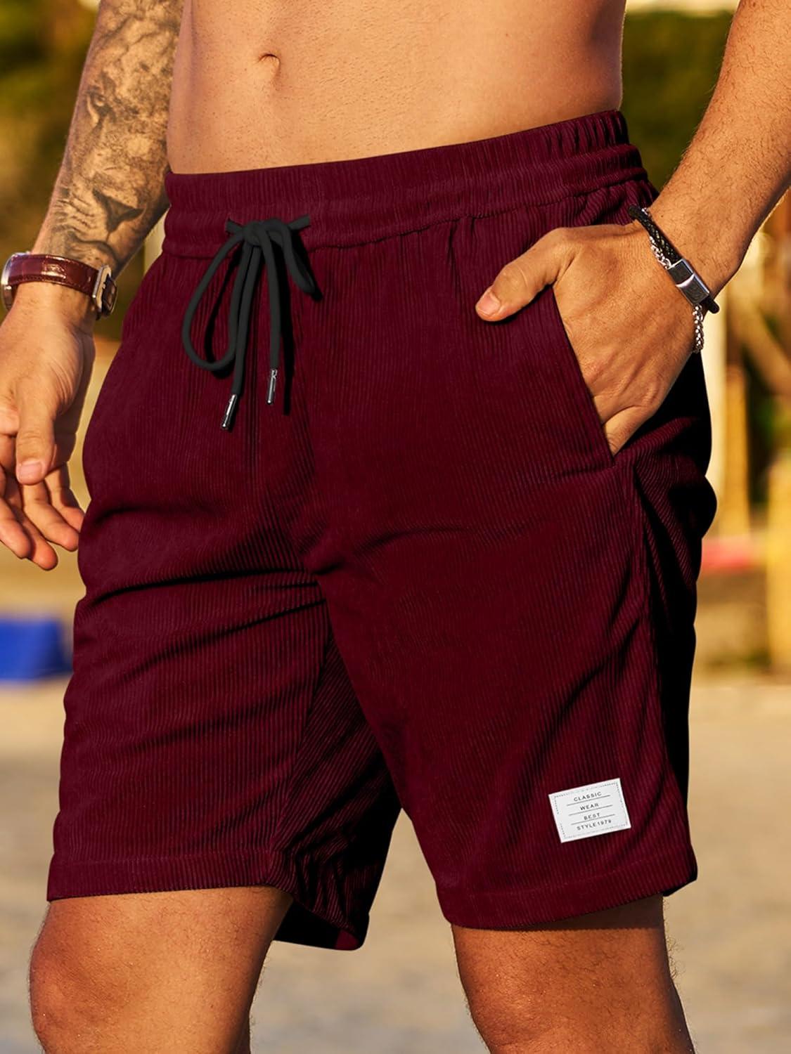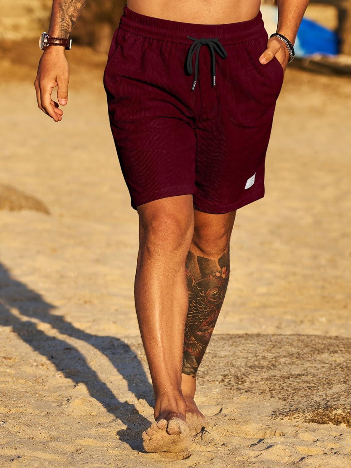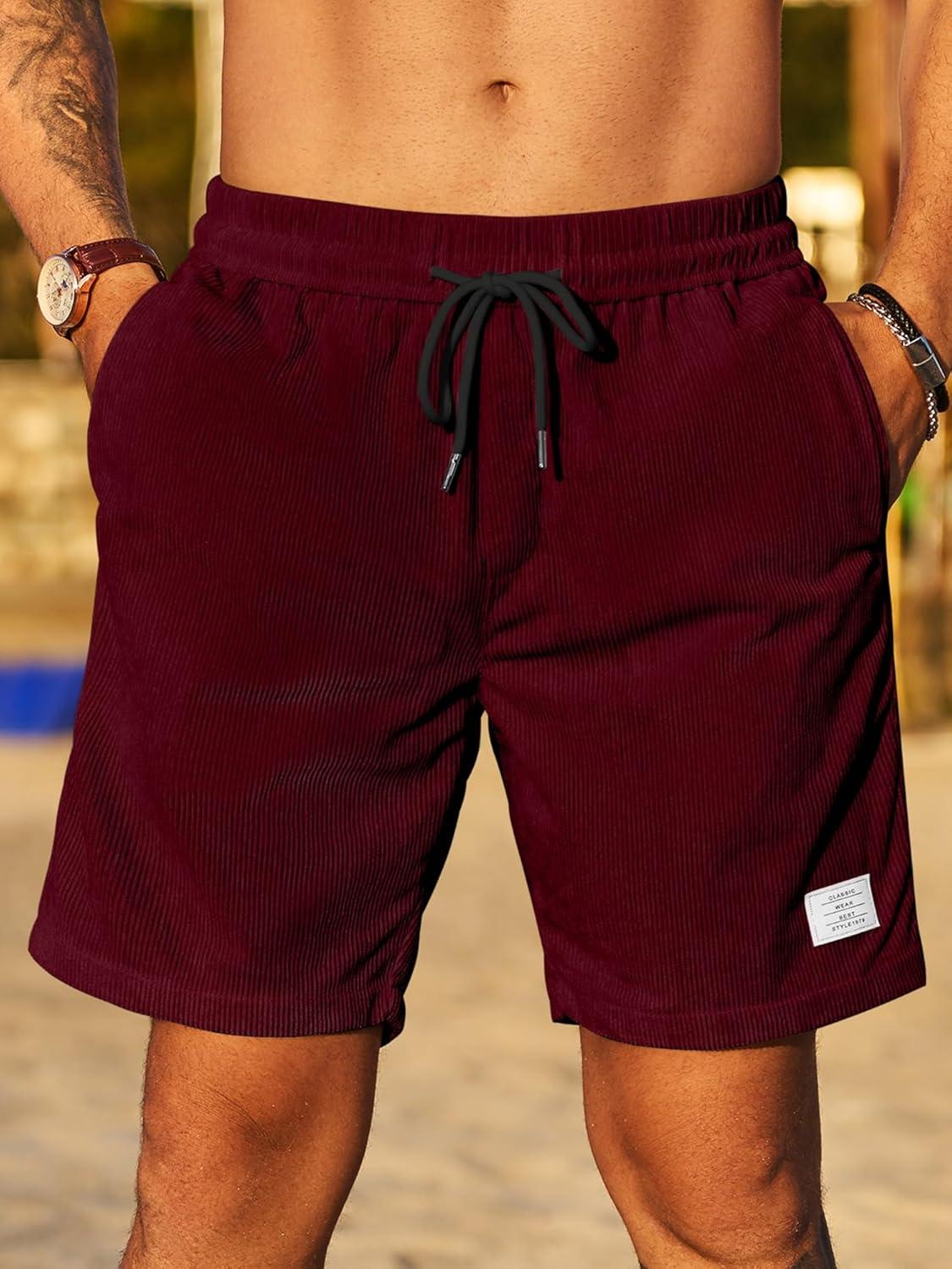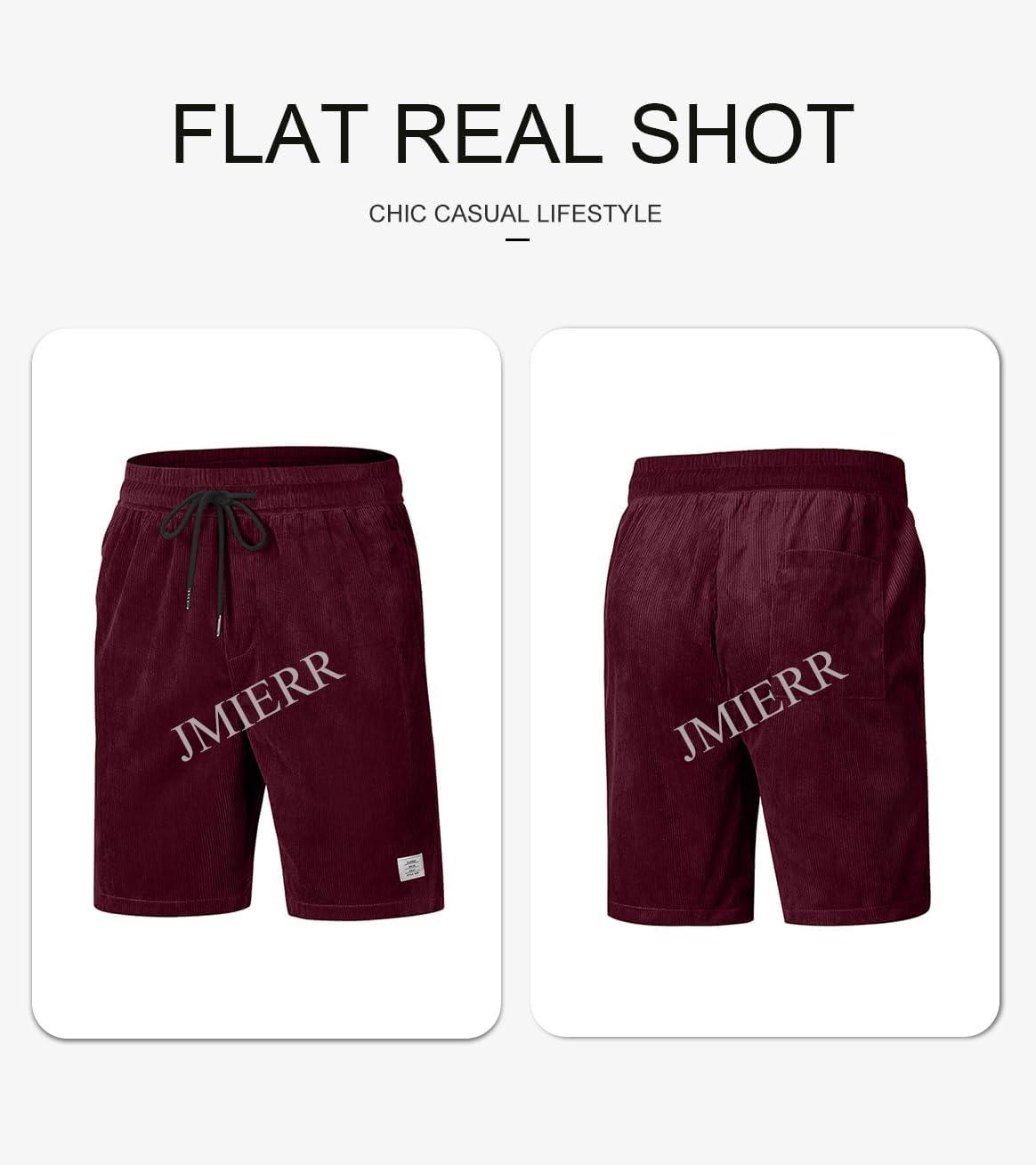 JMIERR Men’s Corduroy Shorts Casual Elastic Waist Drawstring Lightweight Summer Beach Shorts(A3 Burgundy)