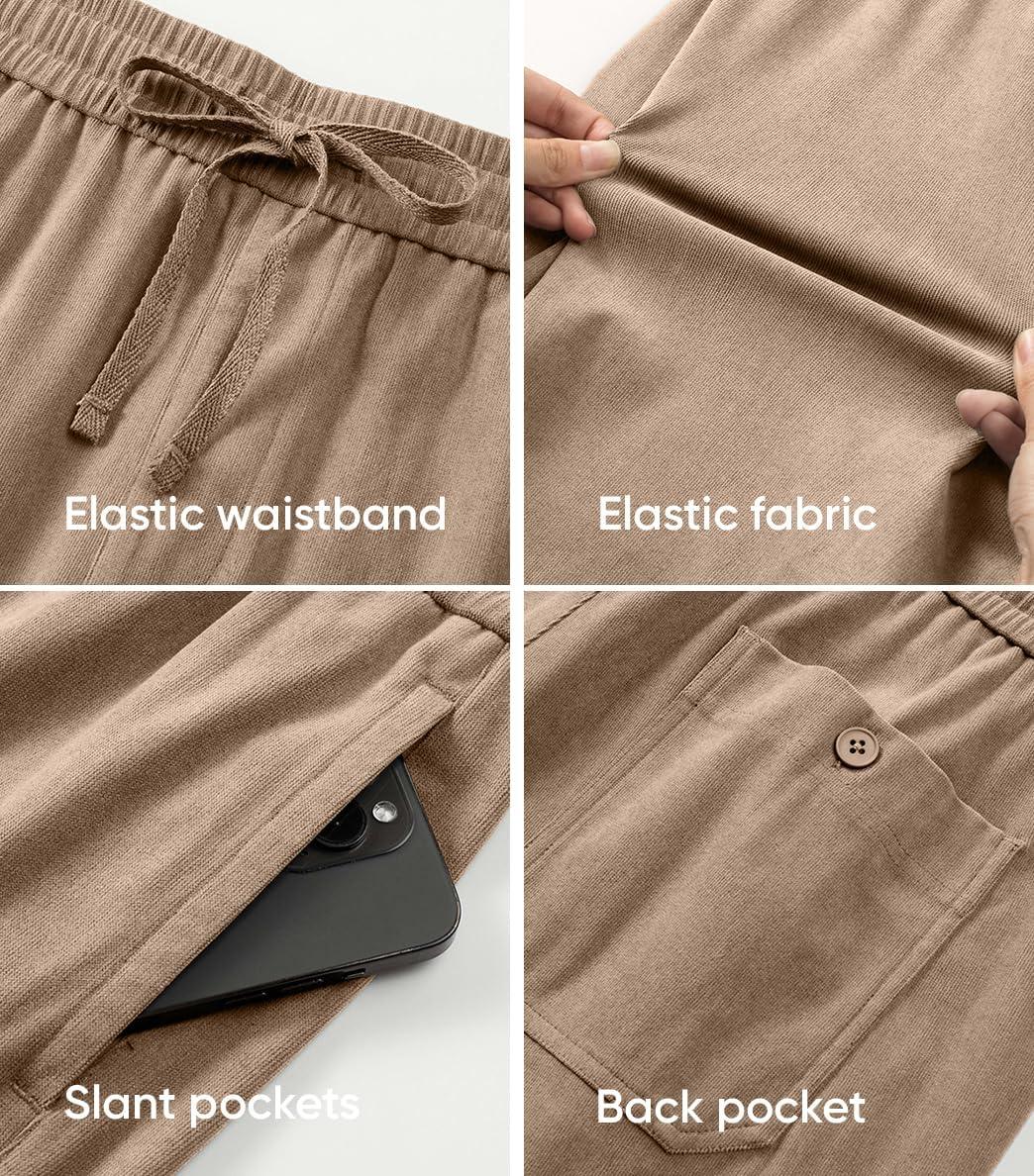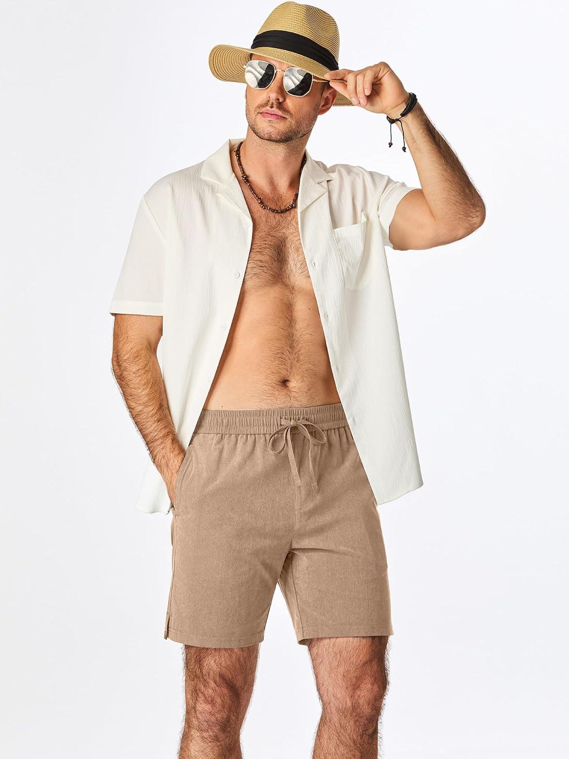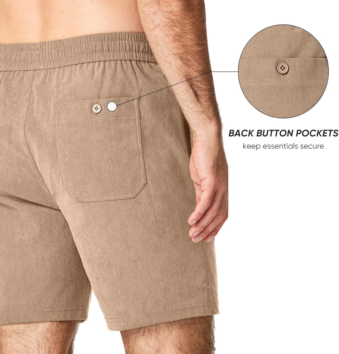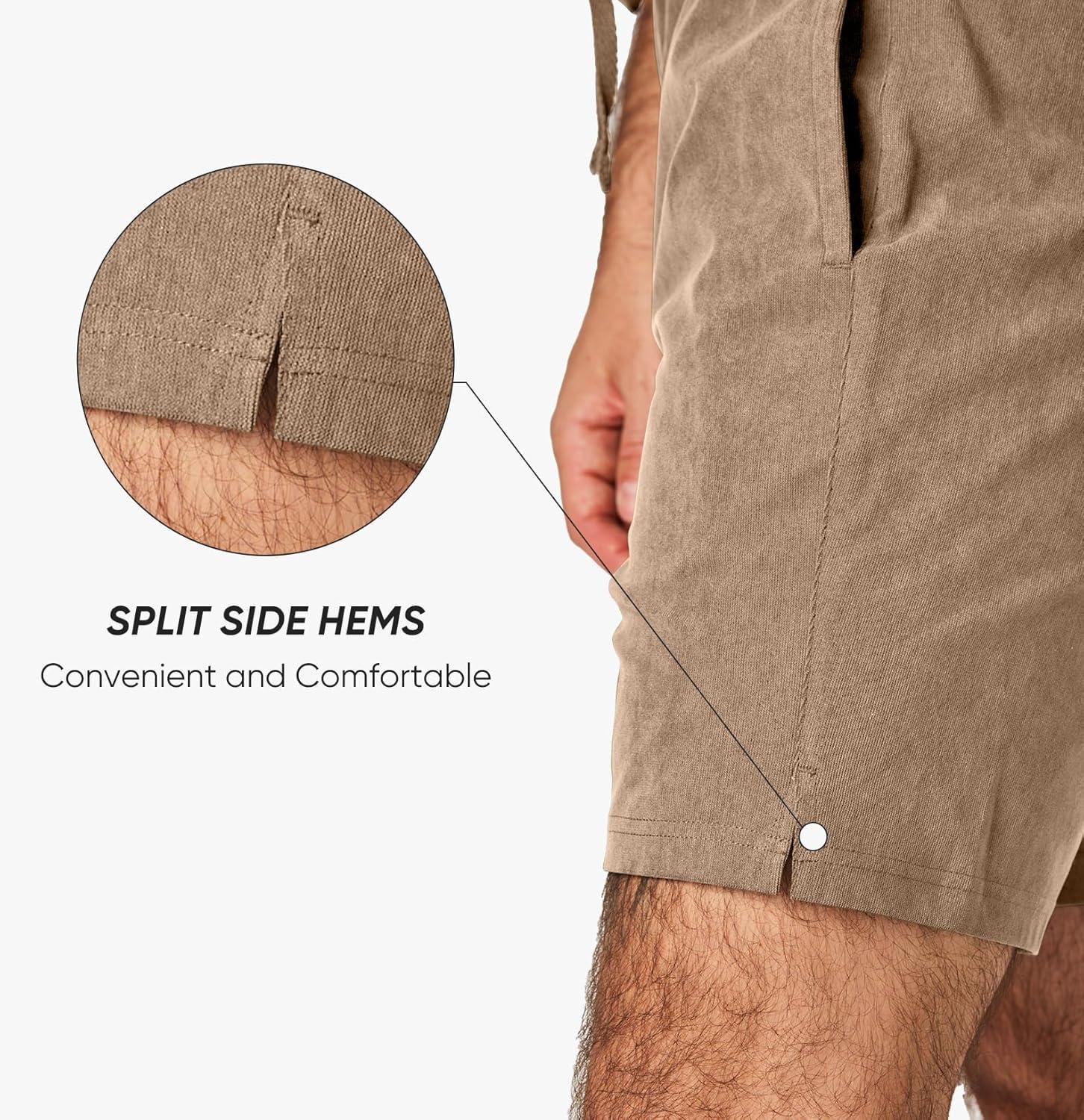 JMIERR Men’s Corduroy Shorts Casual Elastic Waist Drawstring Lightweight Summer Beach Shorts(B Light French Beige)