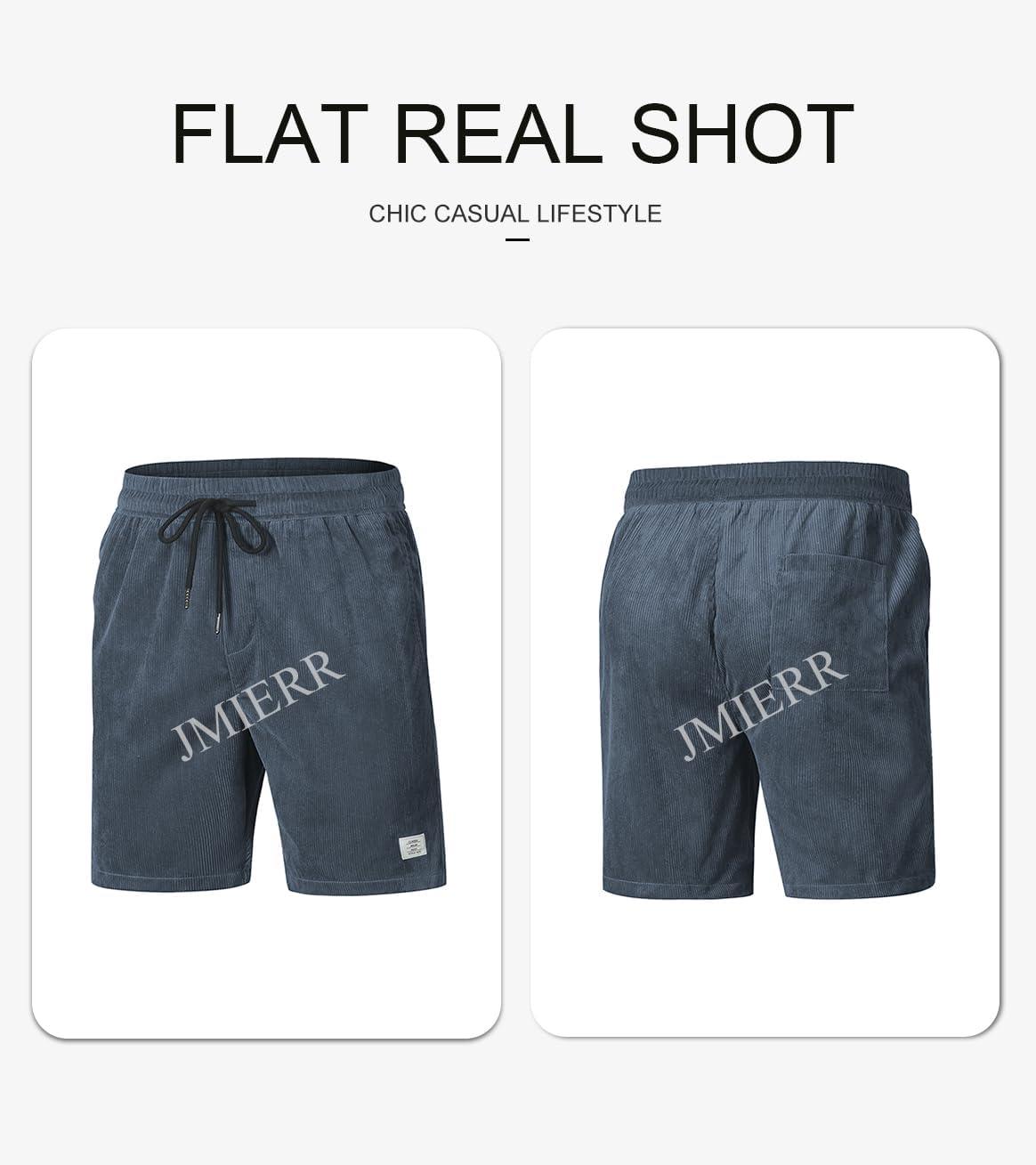JMIERR Men’s Corduroy Shorts Casual Elastic Waist Drawstring Lightweight Summer Beach Shorts(C Navy Blue)