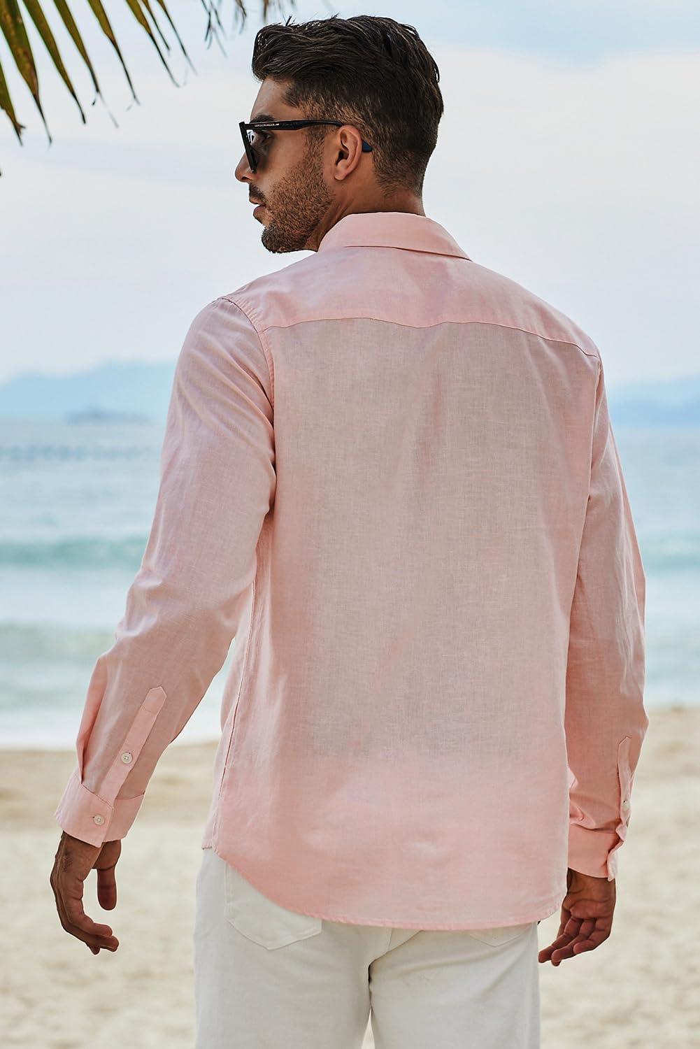JMIERR Men’s Cotton Linen Button Down Shirt Casual Stylish Long Sleeve Business Dress Shirts(B Pink)