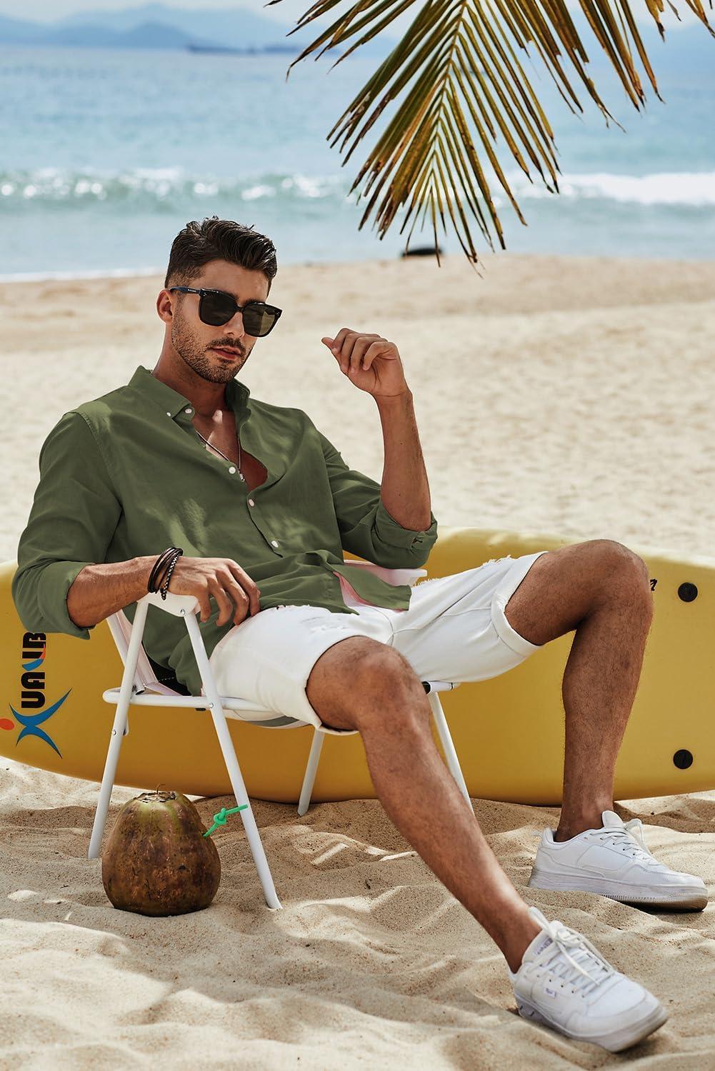 JMIERR Mens Cotton Linen Button Down Shirt Casual Stylish Long Sleeve Business Dress Shirts