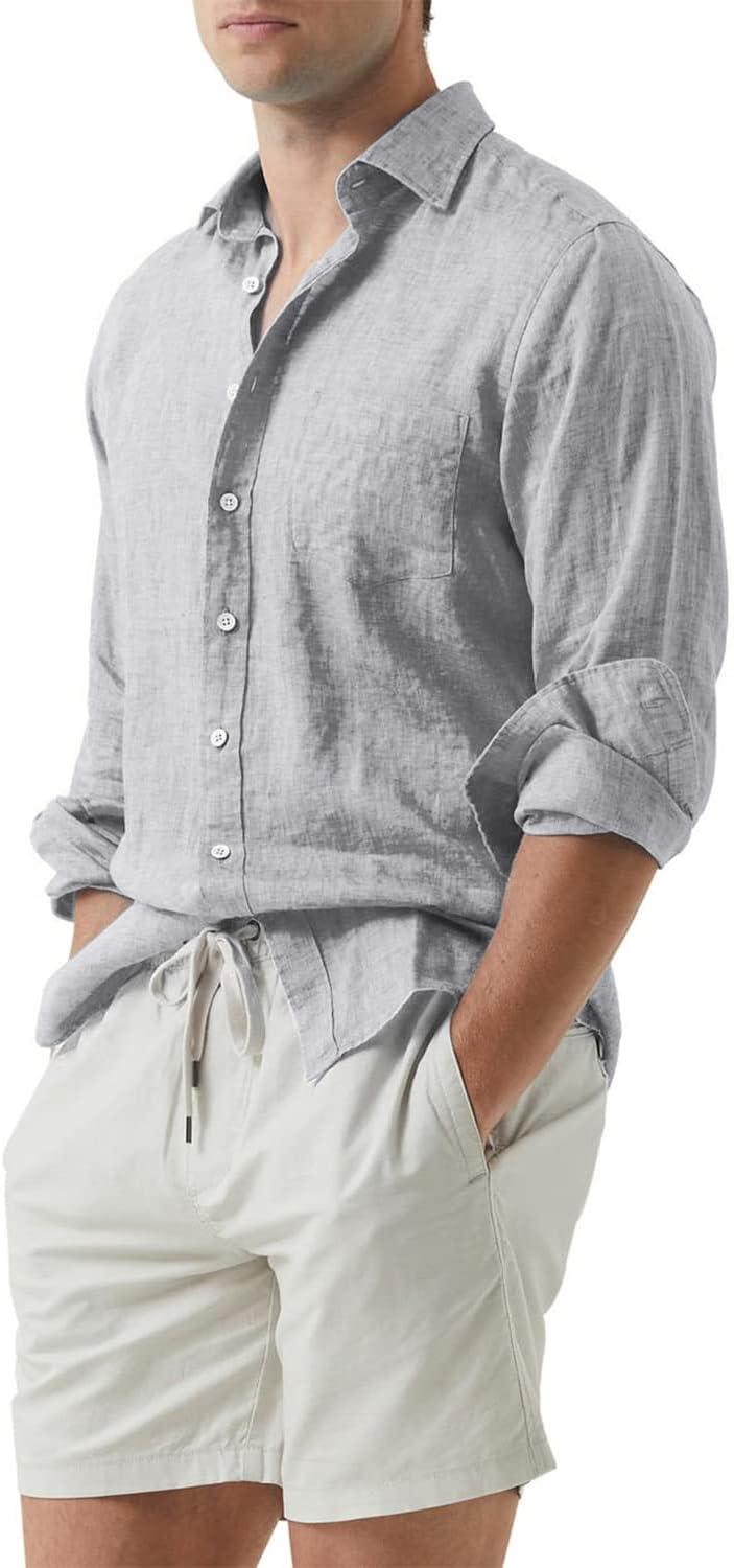 JMIERR Mens Cotton Linen Casual Stylish Button Down Shirt Long Sleeve Dress Shirts(A Grey)