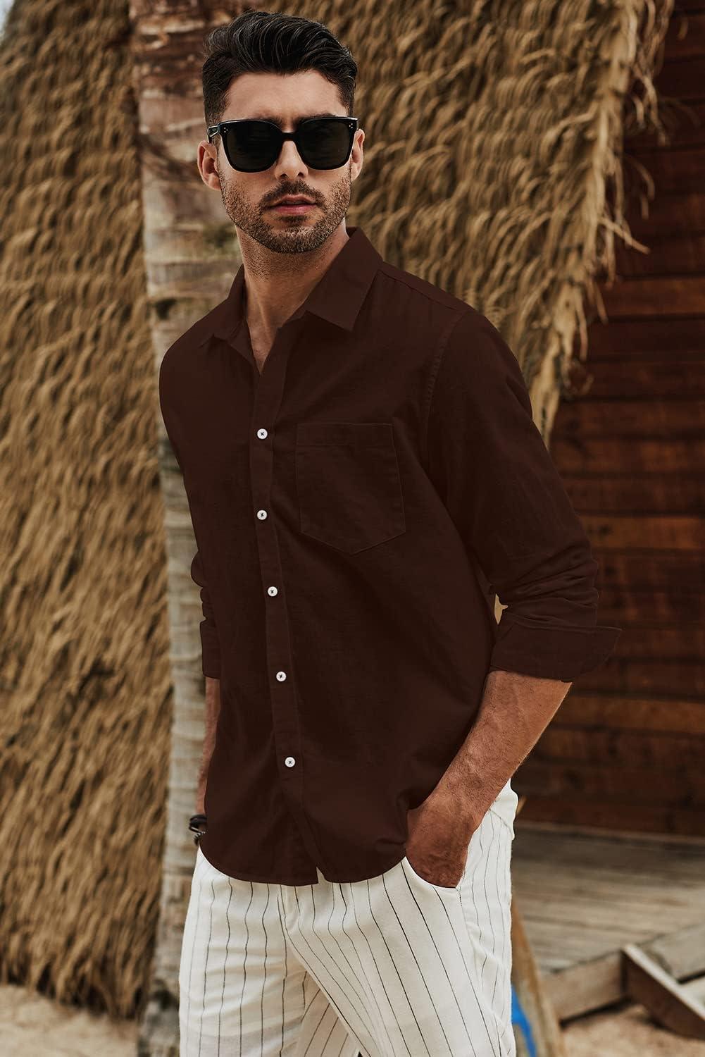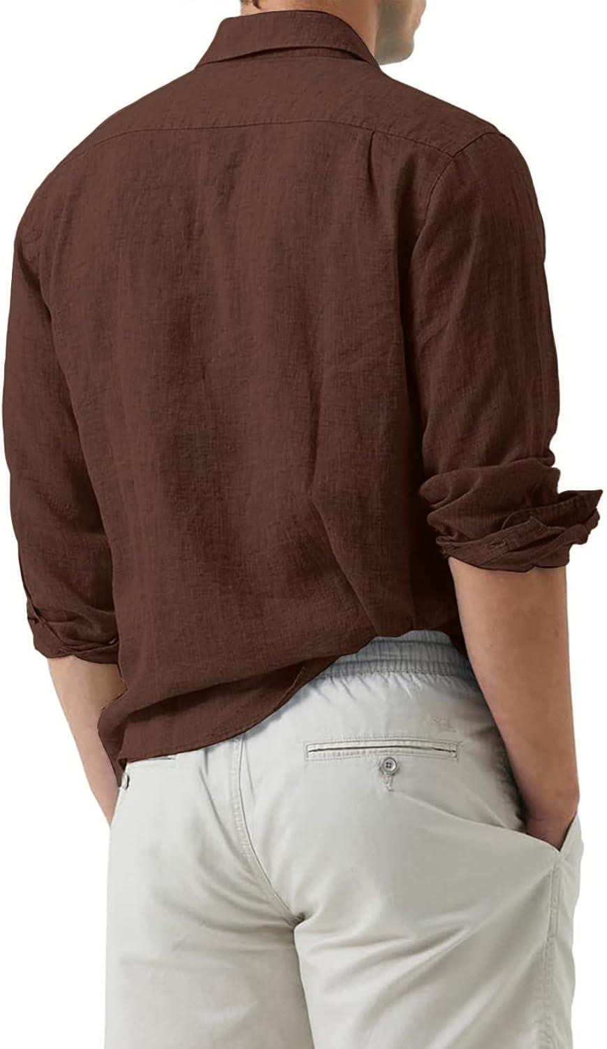 JMIERR Mens Cotton Linen Casual Stylish Button Down Shirt Long Sleeve Dress Shirts(B2 Brown)