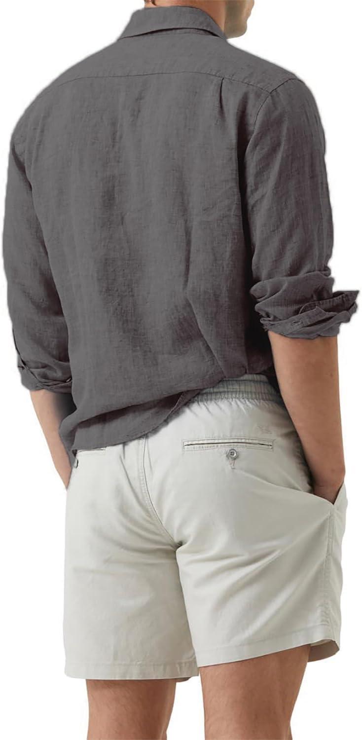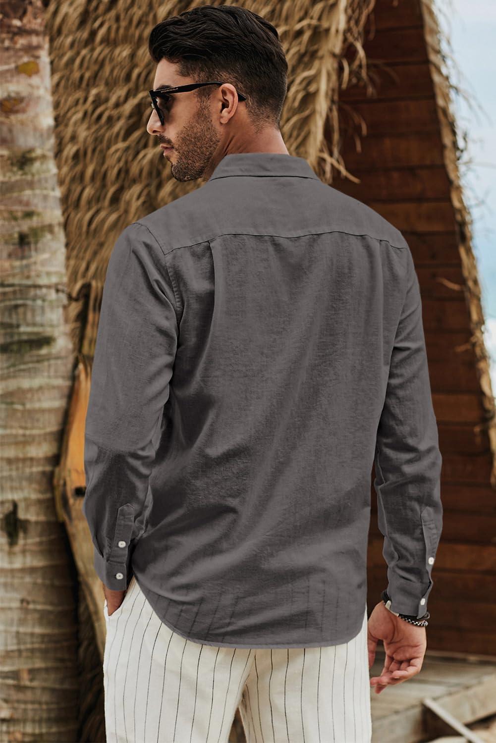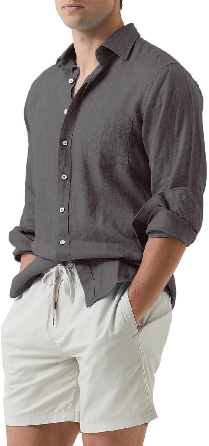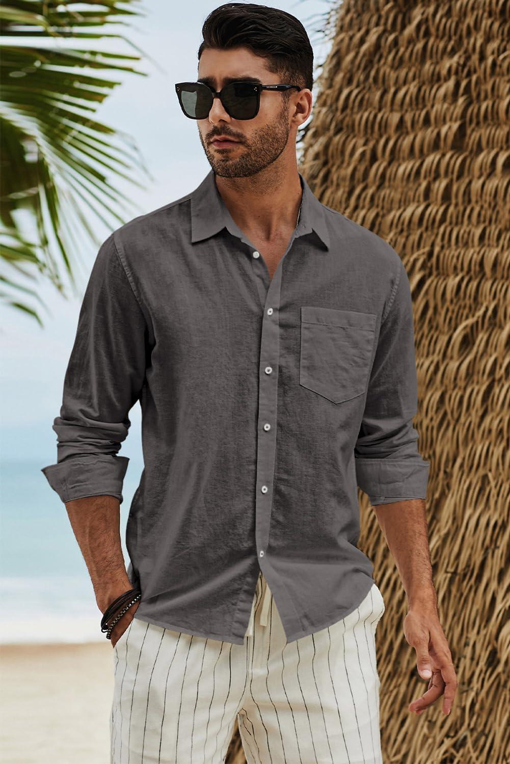 JMIERR Mens Cotton Linen Casual Stylish Button Down Shirt Long Sleeve Dress Shirts(B5 Grey)