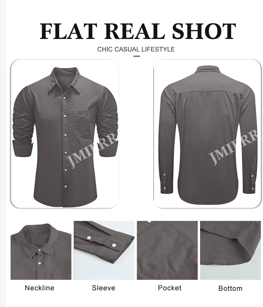 JMIERR Mens Dress Shirts Long Sleeve Cotton Linen Shirts Casual Button-Down Beach Shirts with Pocket