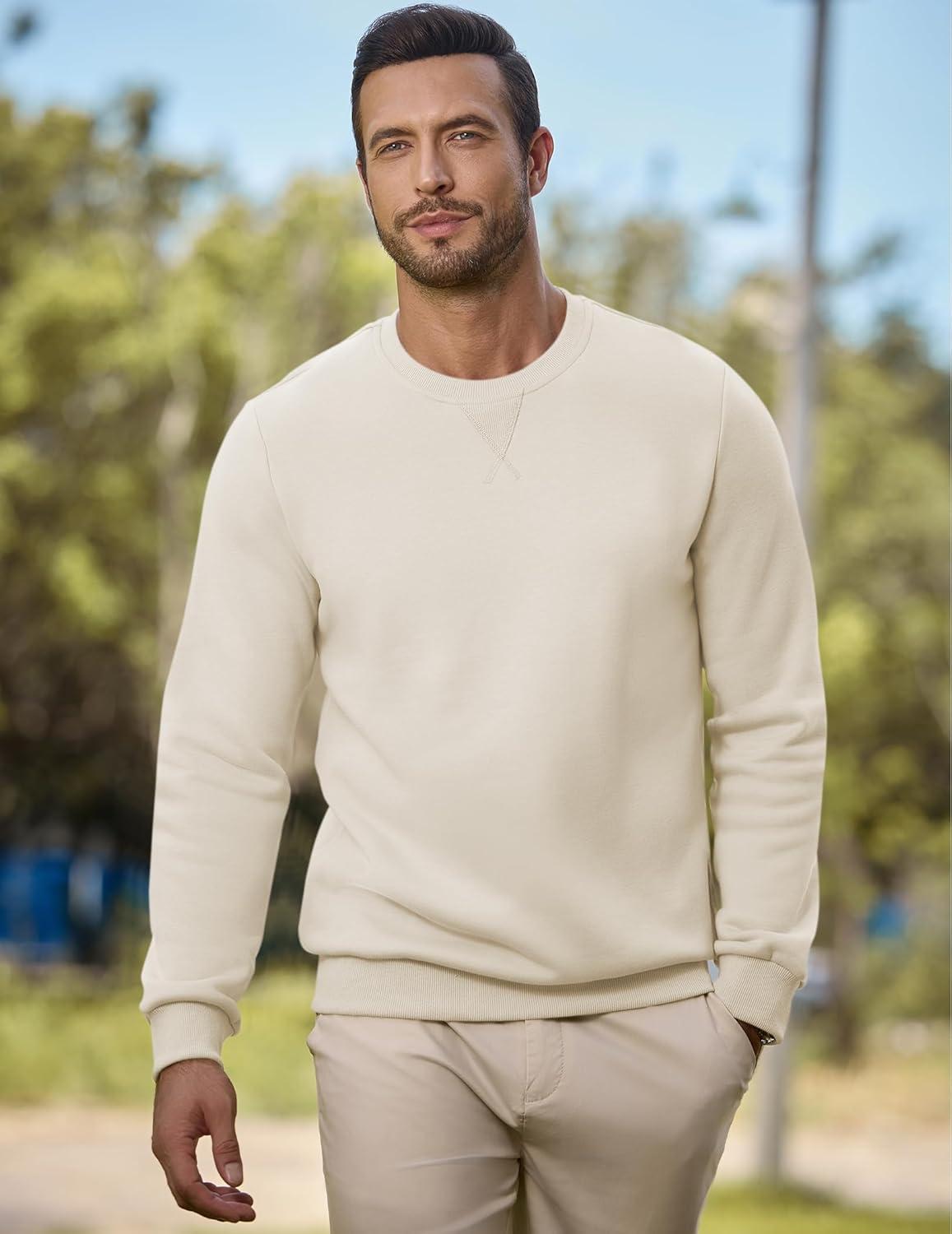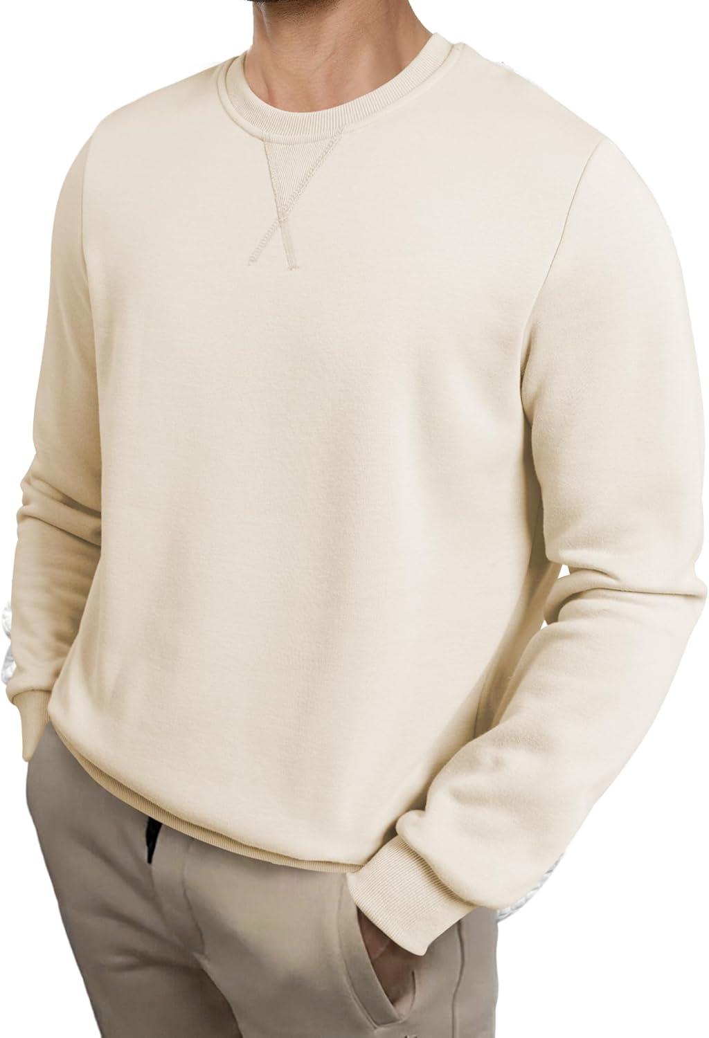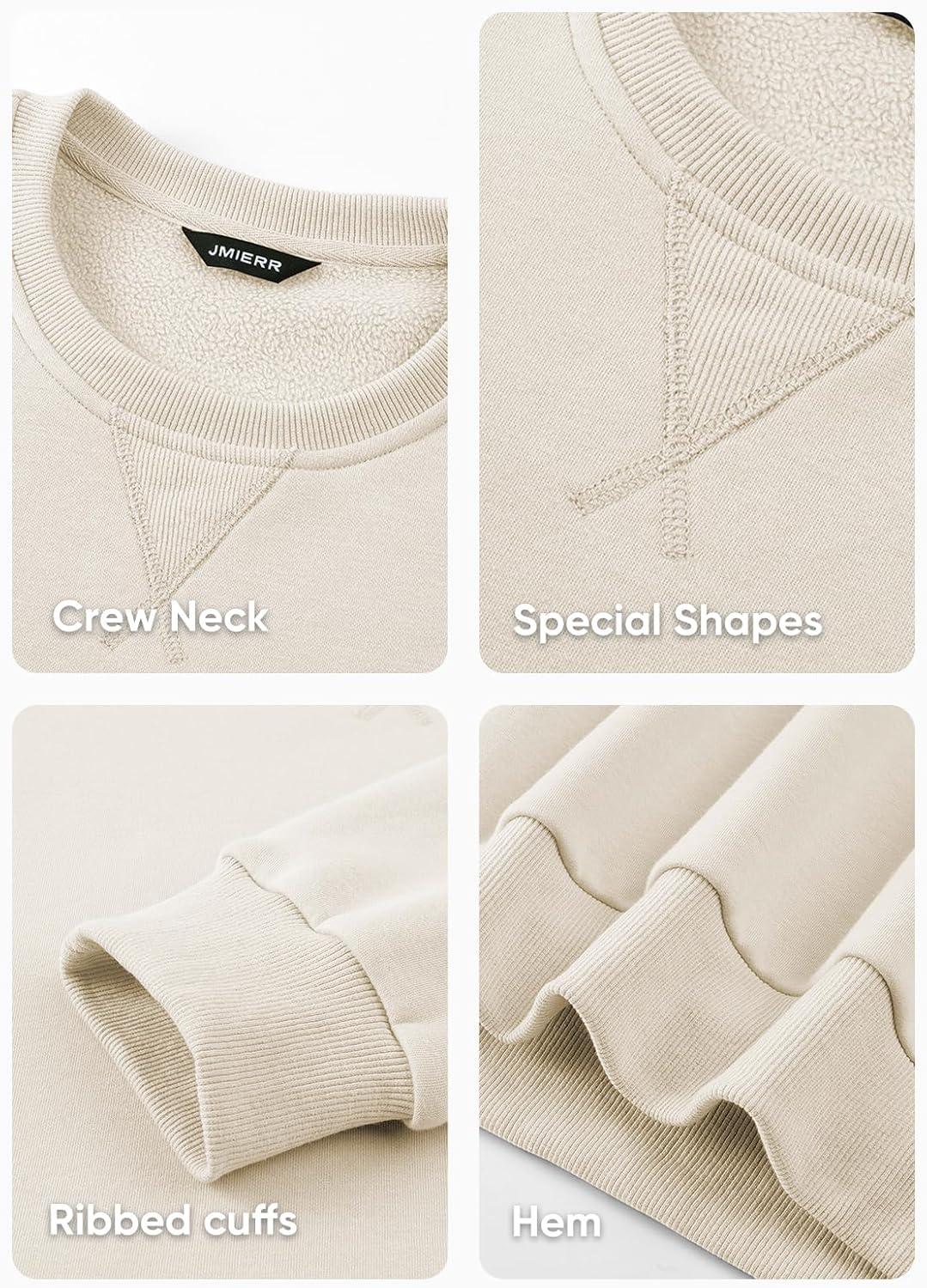 JMIERR Mens Cotton Sherpa Lined Sweatshirts Casual Fleece Long Sleeve Crewneck Fall Winter Pullover Shirts(Cream)