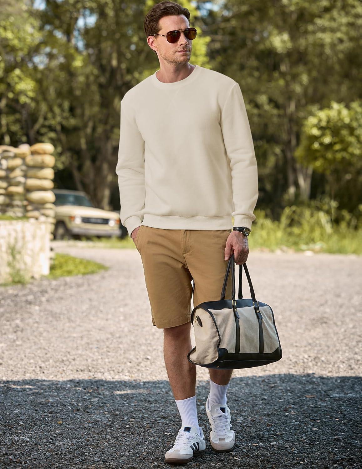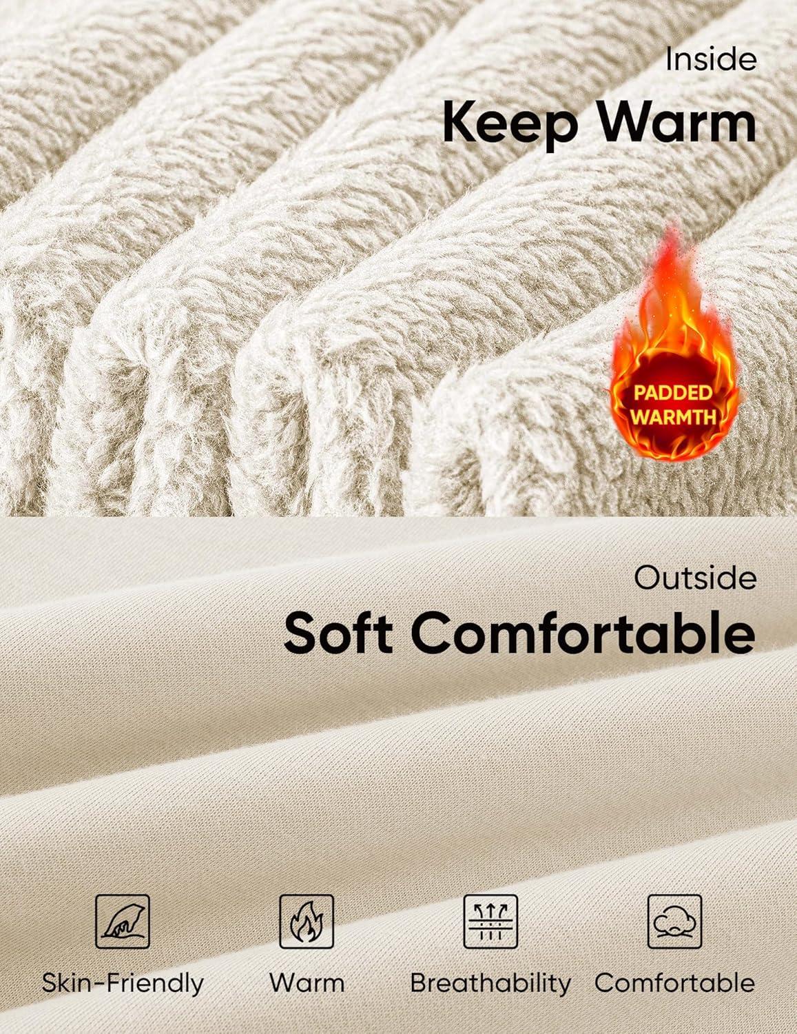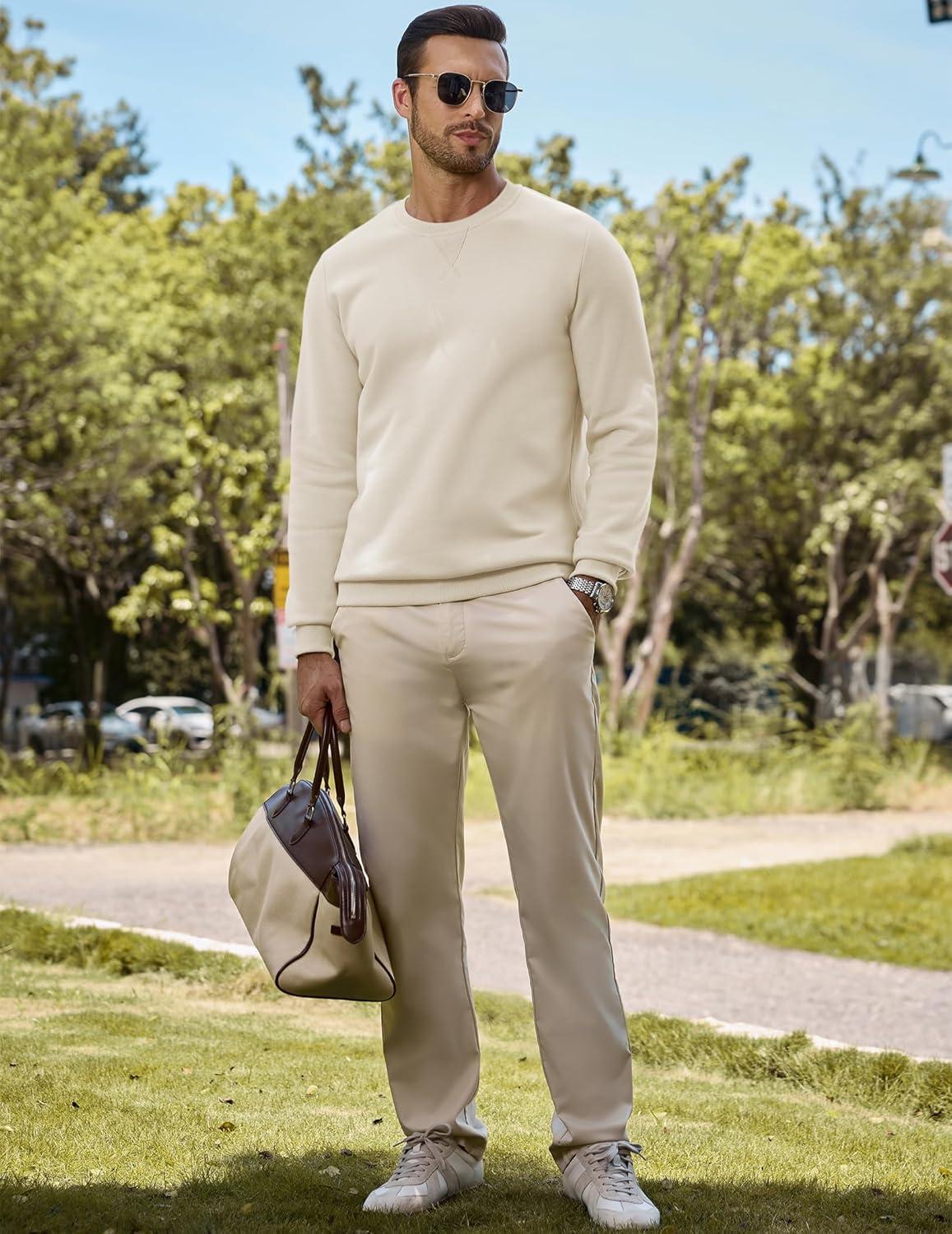 JMIERR Mens Cotton Sherpa Lined Sweatshirts Casual Fleece Long Sleeve Crewneck Fall Winter Pullover Shirts(Cream)