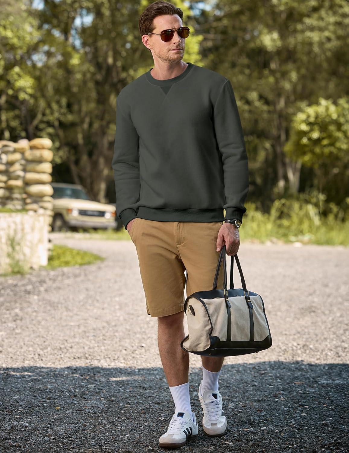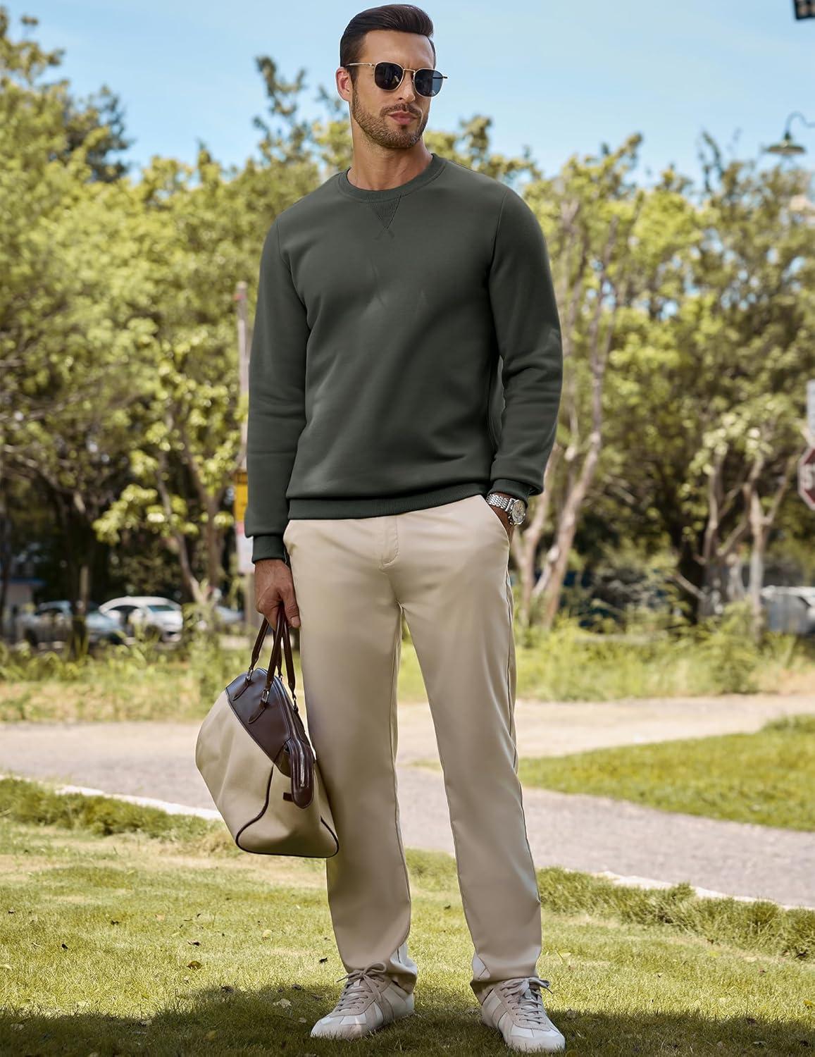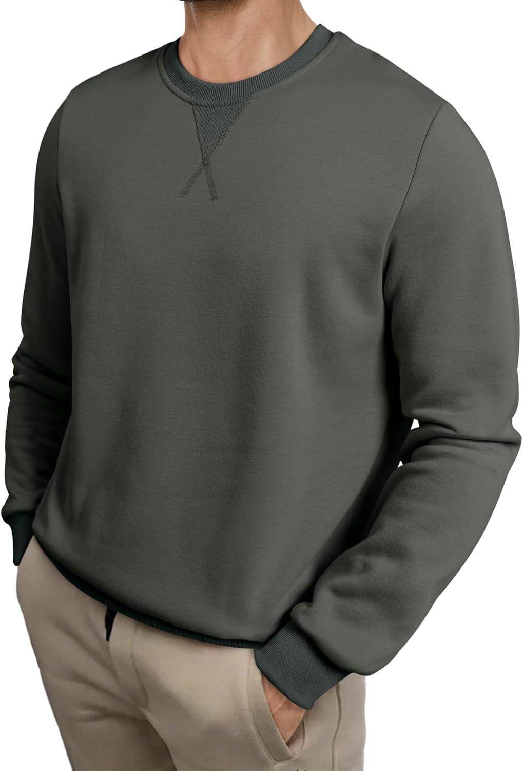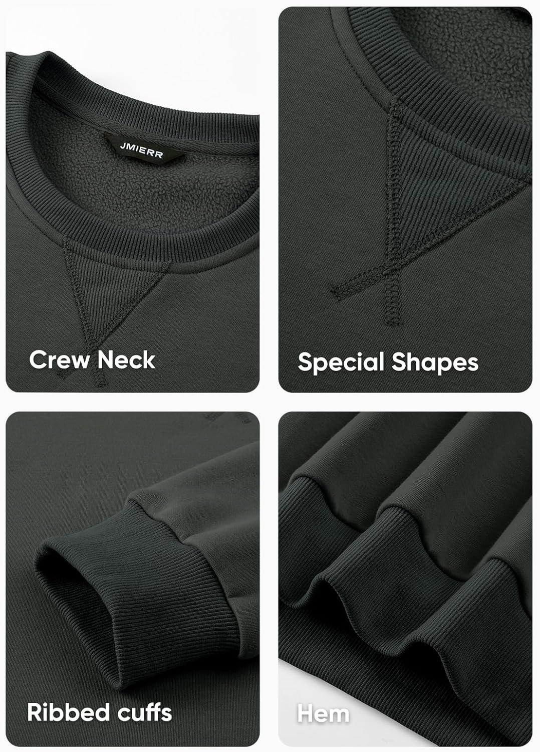 JMIERR Mens Cotton Sherpa Lined Sweatshirts Casual Fleece Long Sleeve Crewneck Fall Winter Pullover Shirts(Dark Grey)