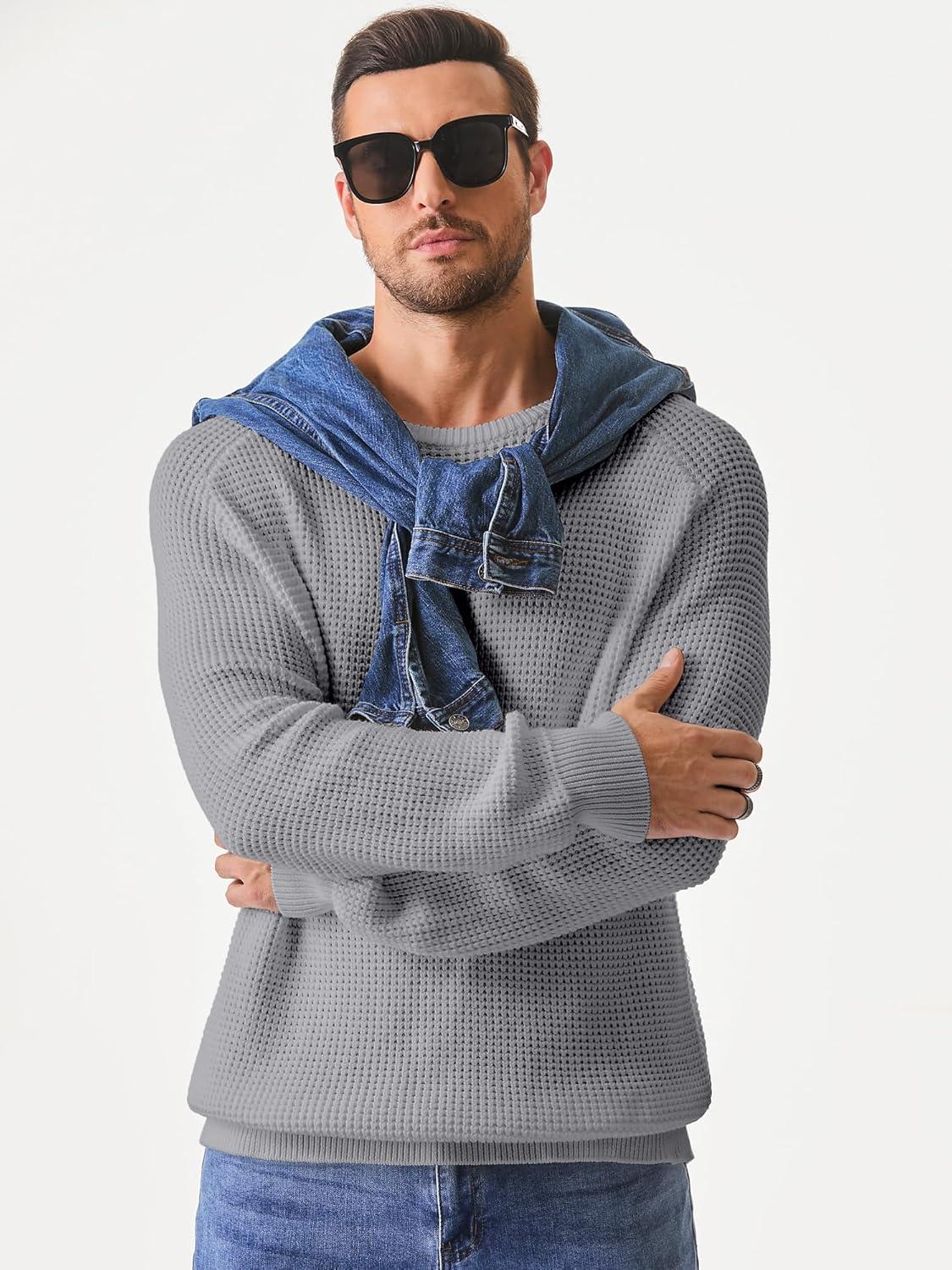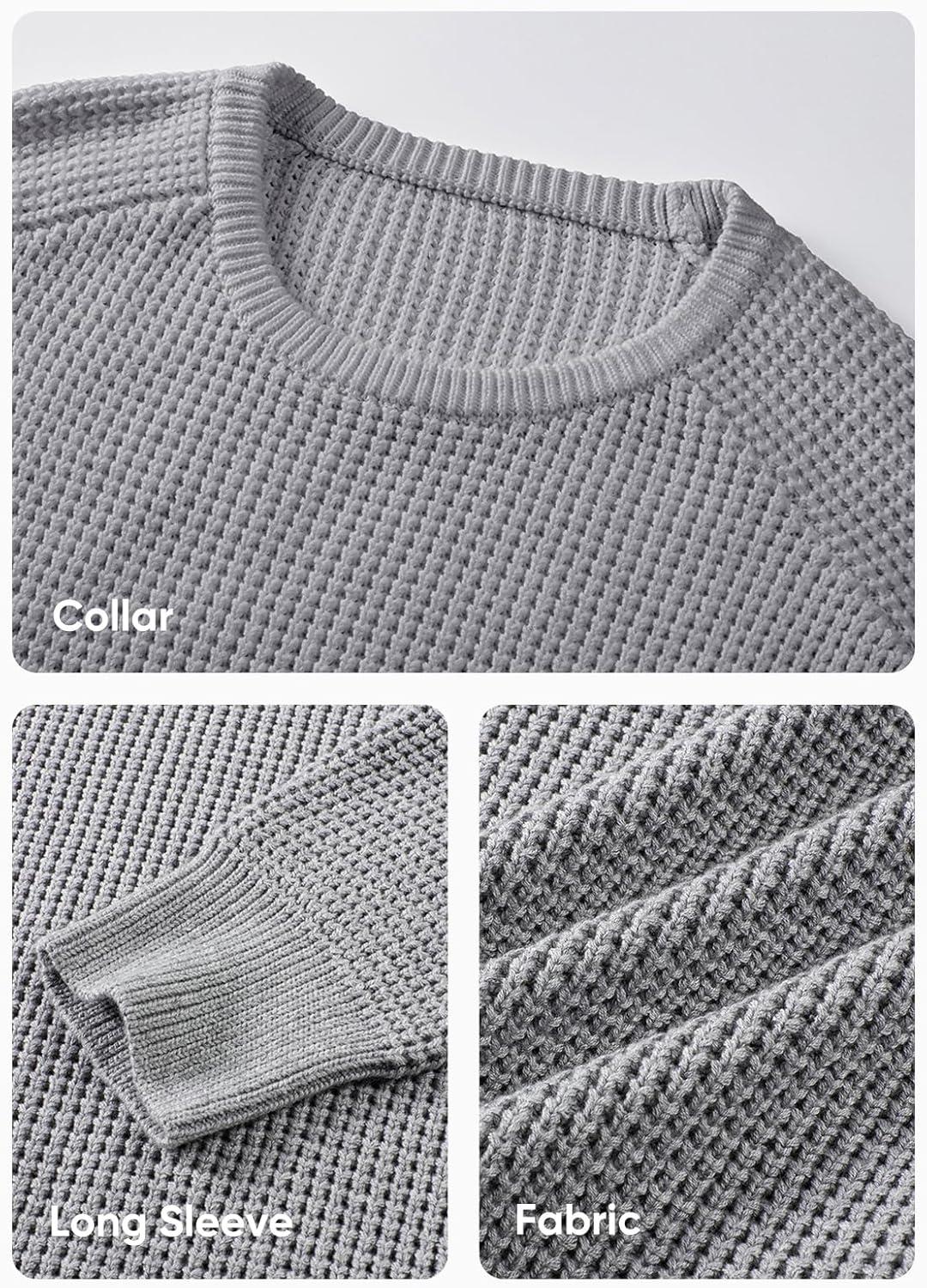 JMIERR Men’s Crewneck Pullover Sweater Waffle Textured Knitted Sweaters Casual Loose Fit Sweaters with Ribbing Edge(03 Light Grey)