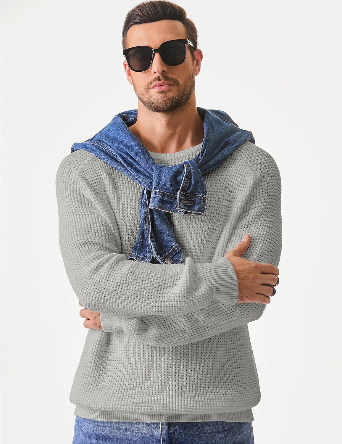 JMIERR Men’s Crewneck Pullover Sweater Waffle Textured Knitted Sweaters Casual Loose Fit Sweaters with Ribbing Edge(Gray)