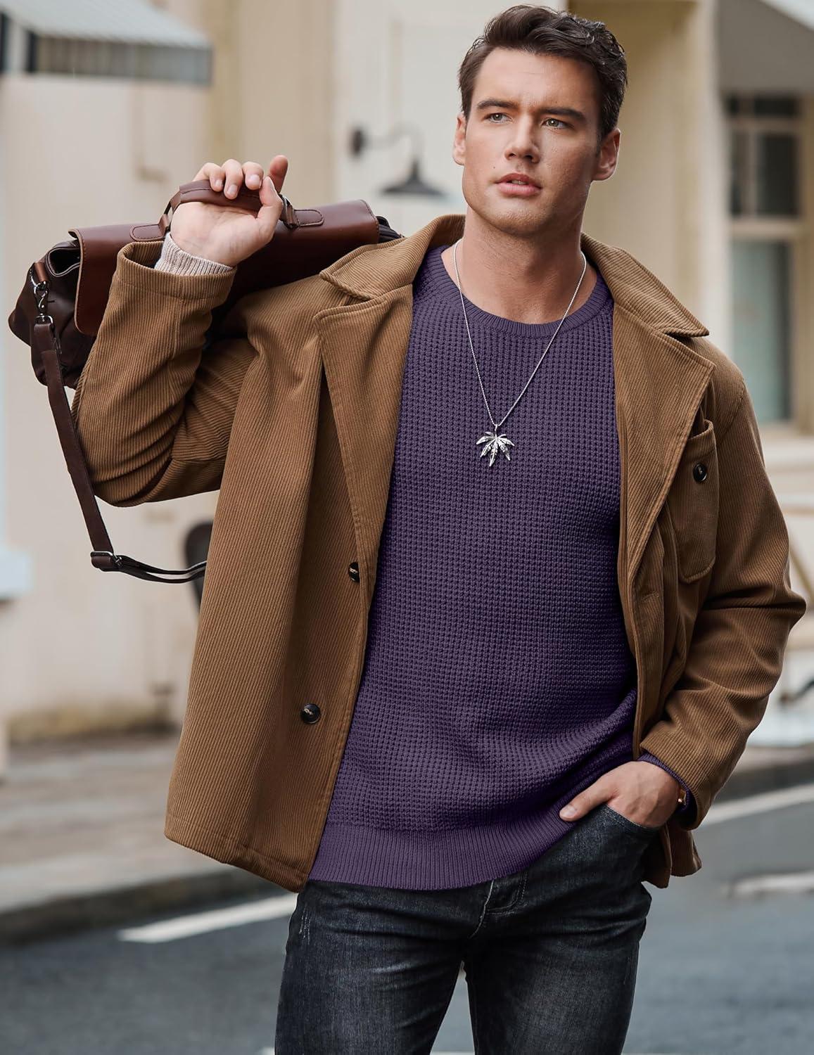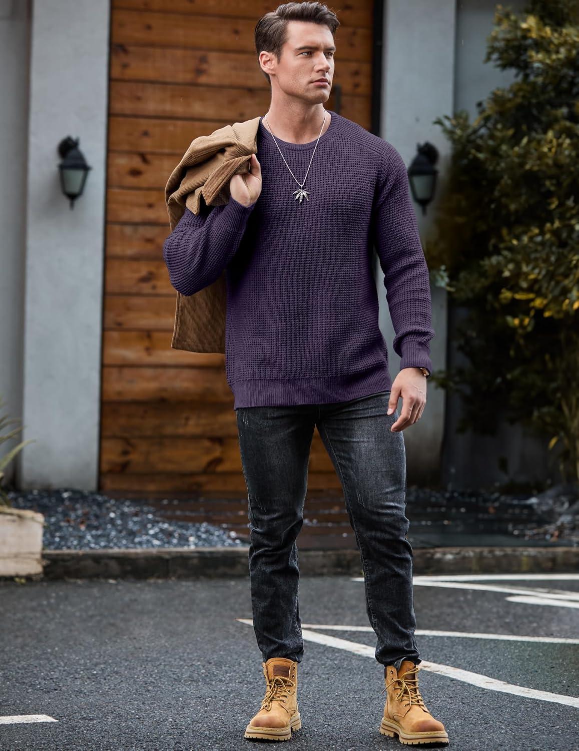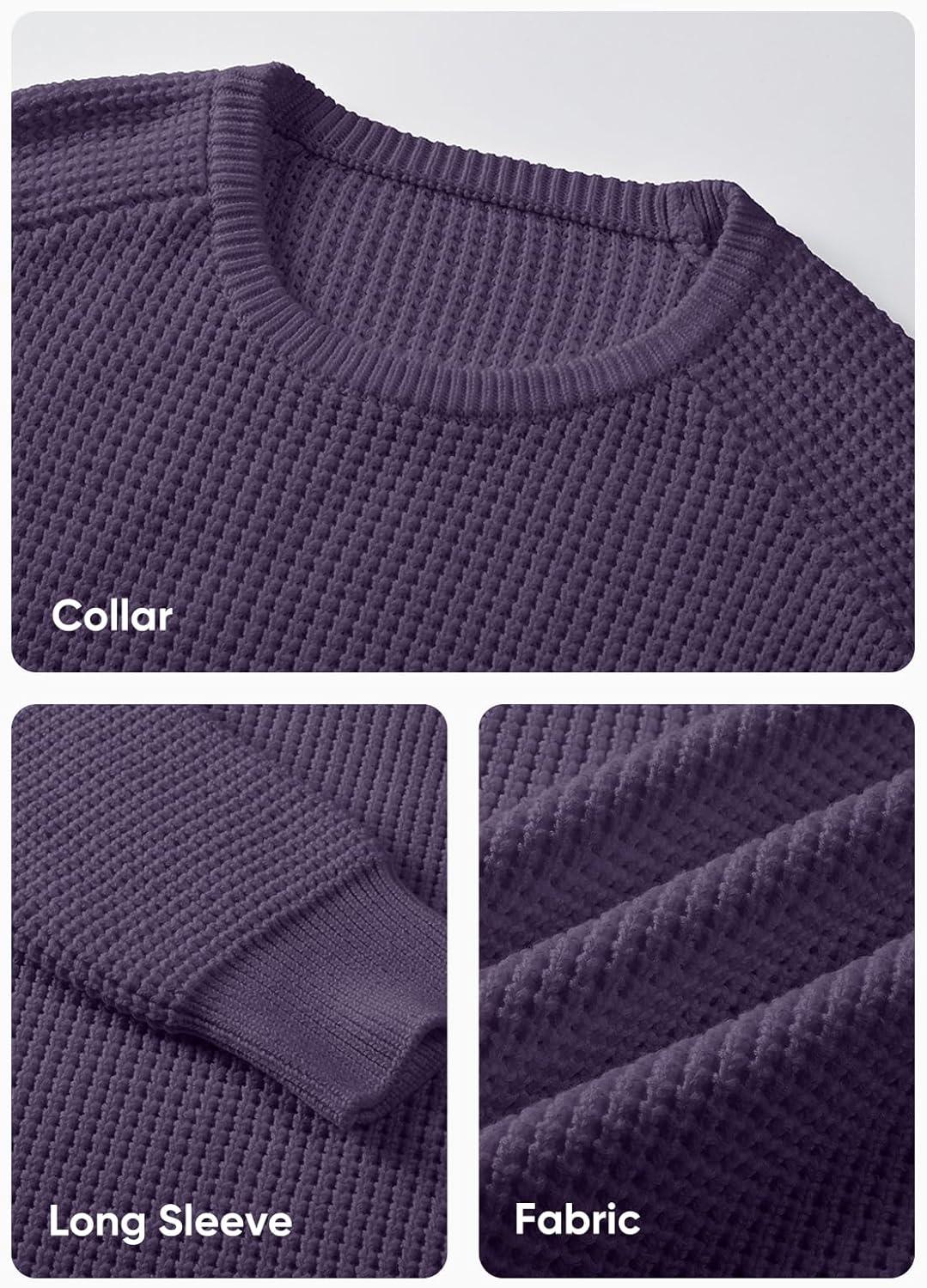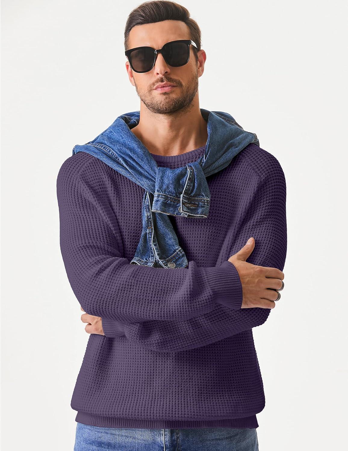 JMIERR Men’s Crewneck Pullover Sweater Waffle Textured Knitted Sweaters Casual Loose Fit Sweaters with Ribbing Edge(Violet)