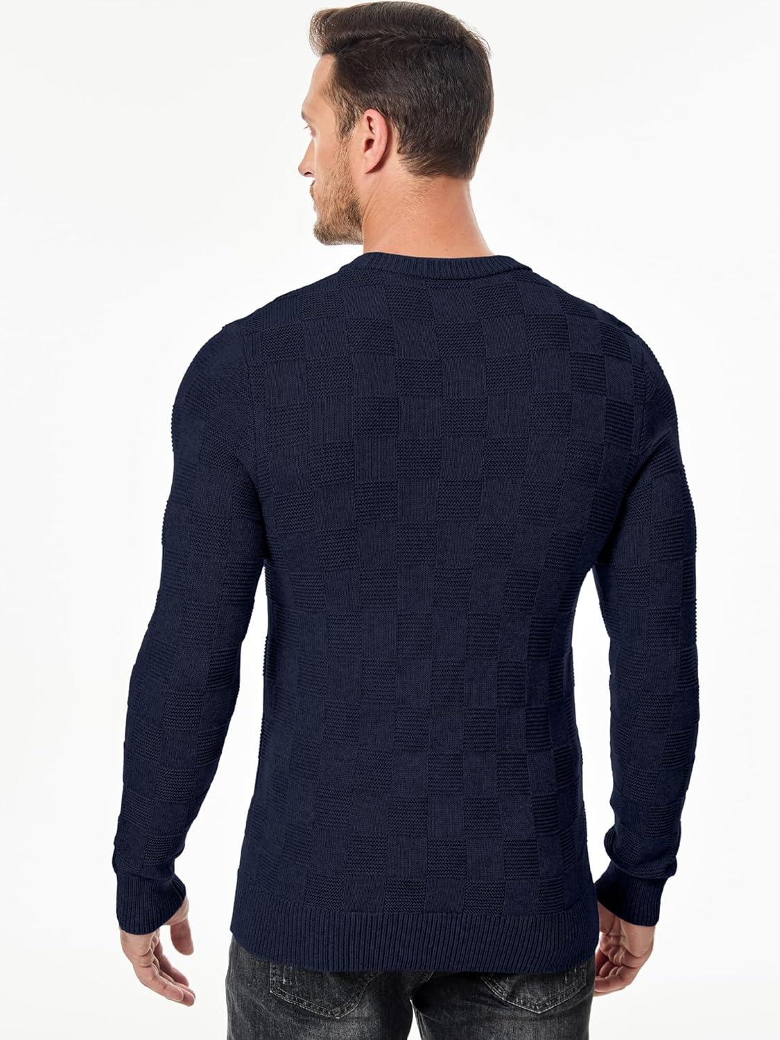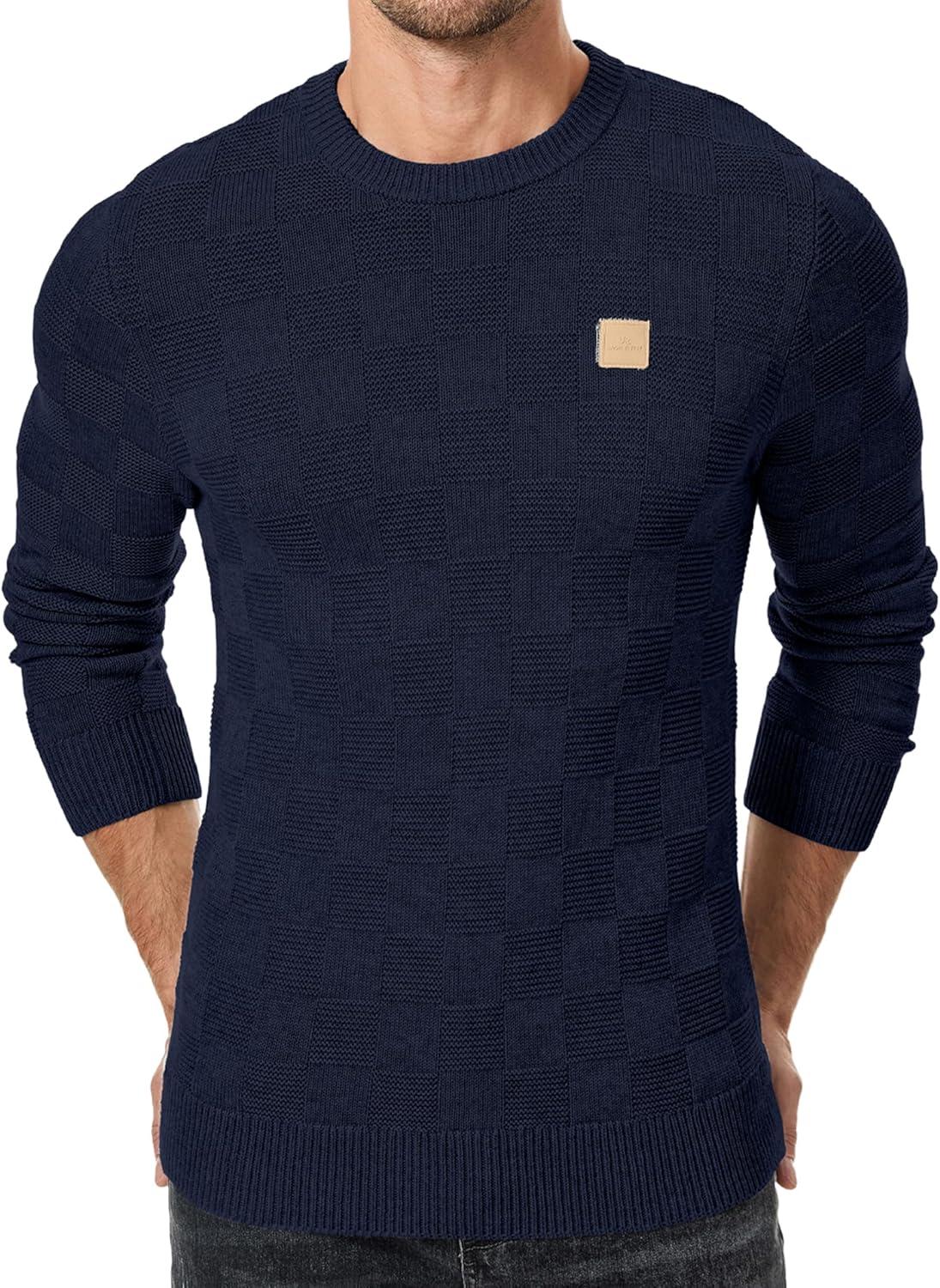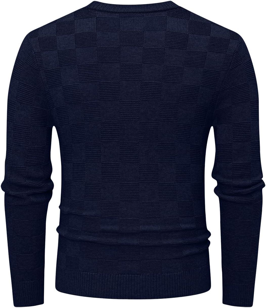 JMIERR Men’s Crewneck Sweater Casual Fall Checkered Long Sleeve Knit Pullover Sweaters(Navy Blue)