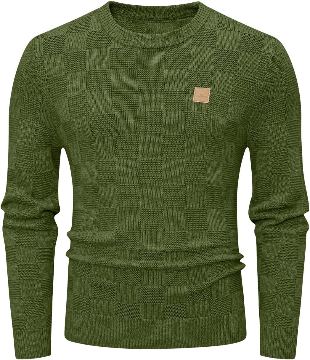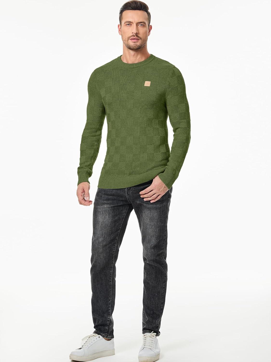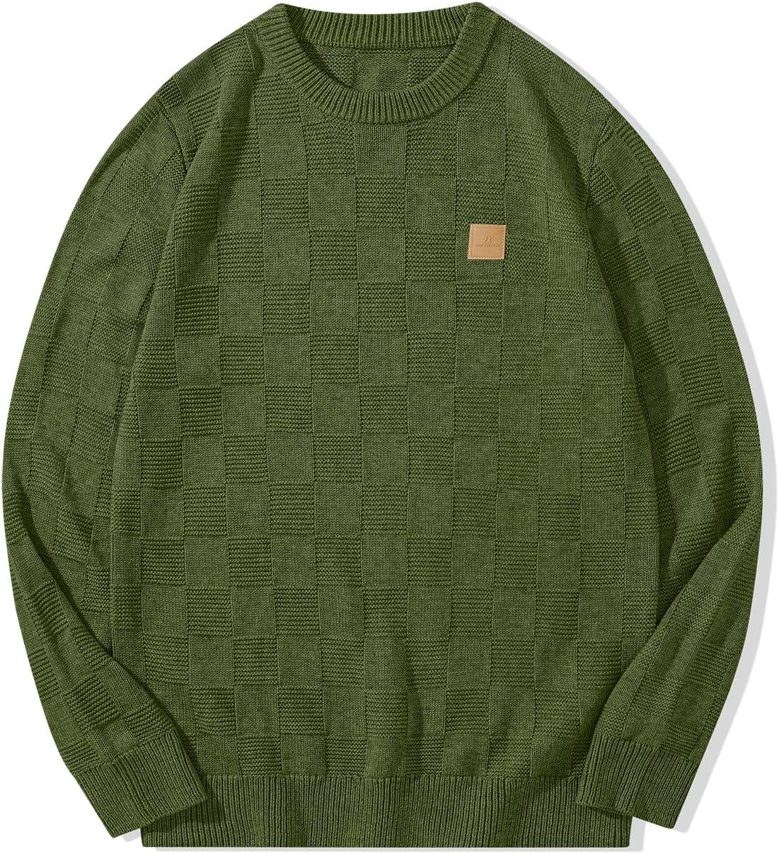 JMIERR Men’s Crewneck Sweater Casual Fall Checkered Long Sleeve Knit Pullover Sweaters(Olive Green)