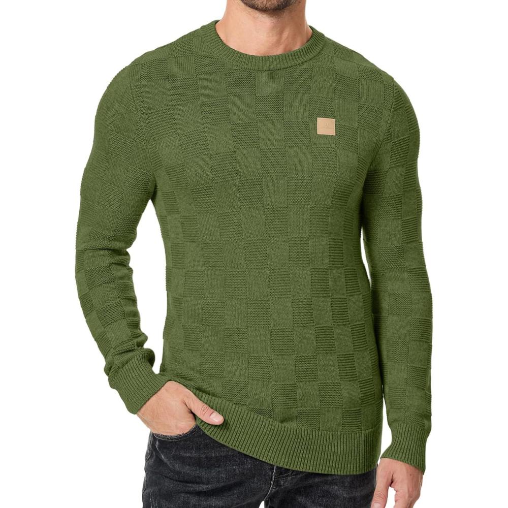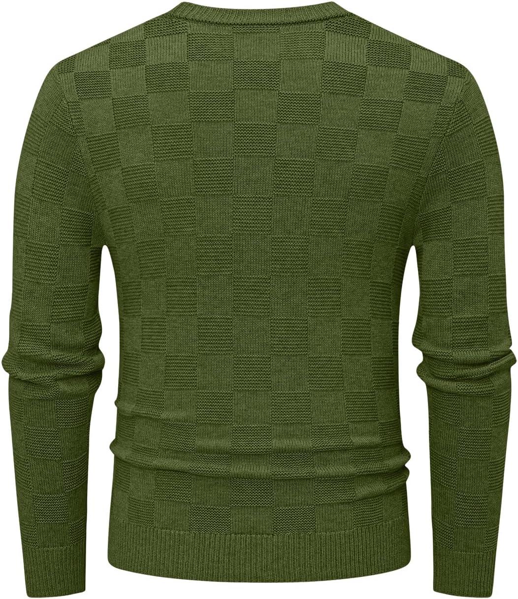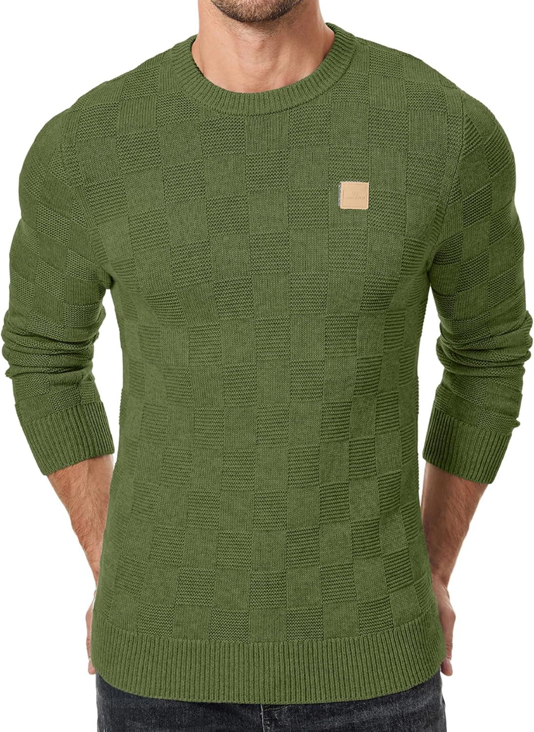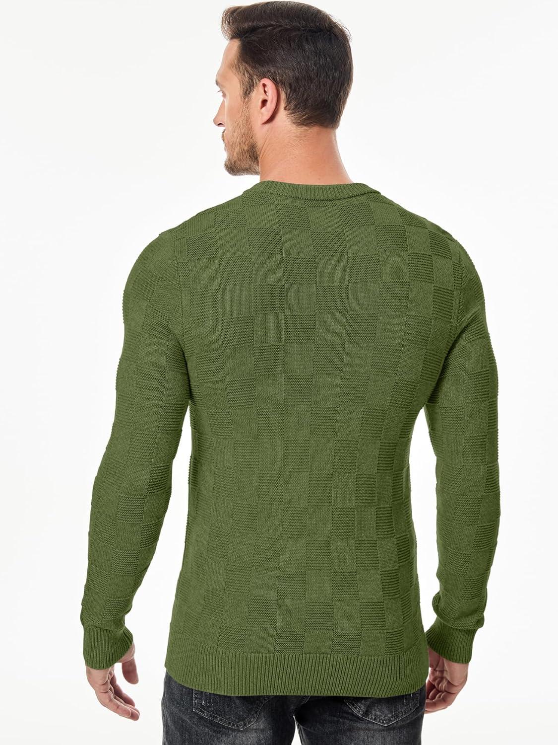 JMIERR Men’s Crewneck Sweater Casual Fall Checkered Long Sleeve Knit Pullover Sweaters(Olive Green)