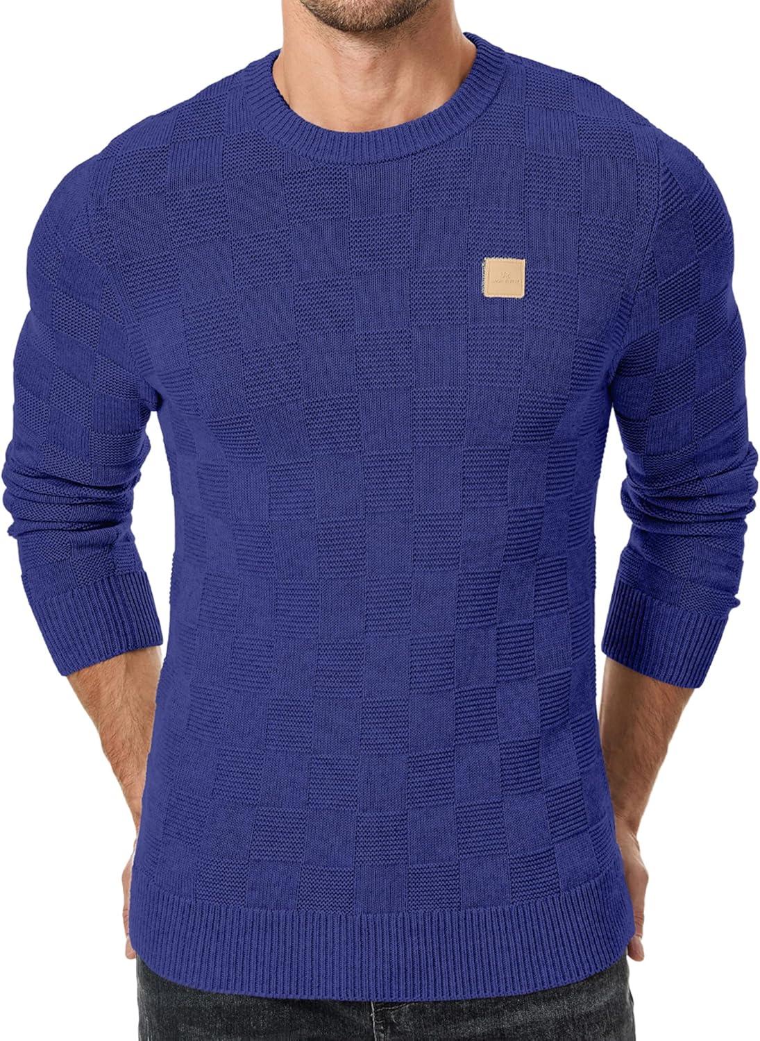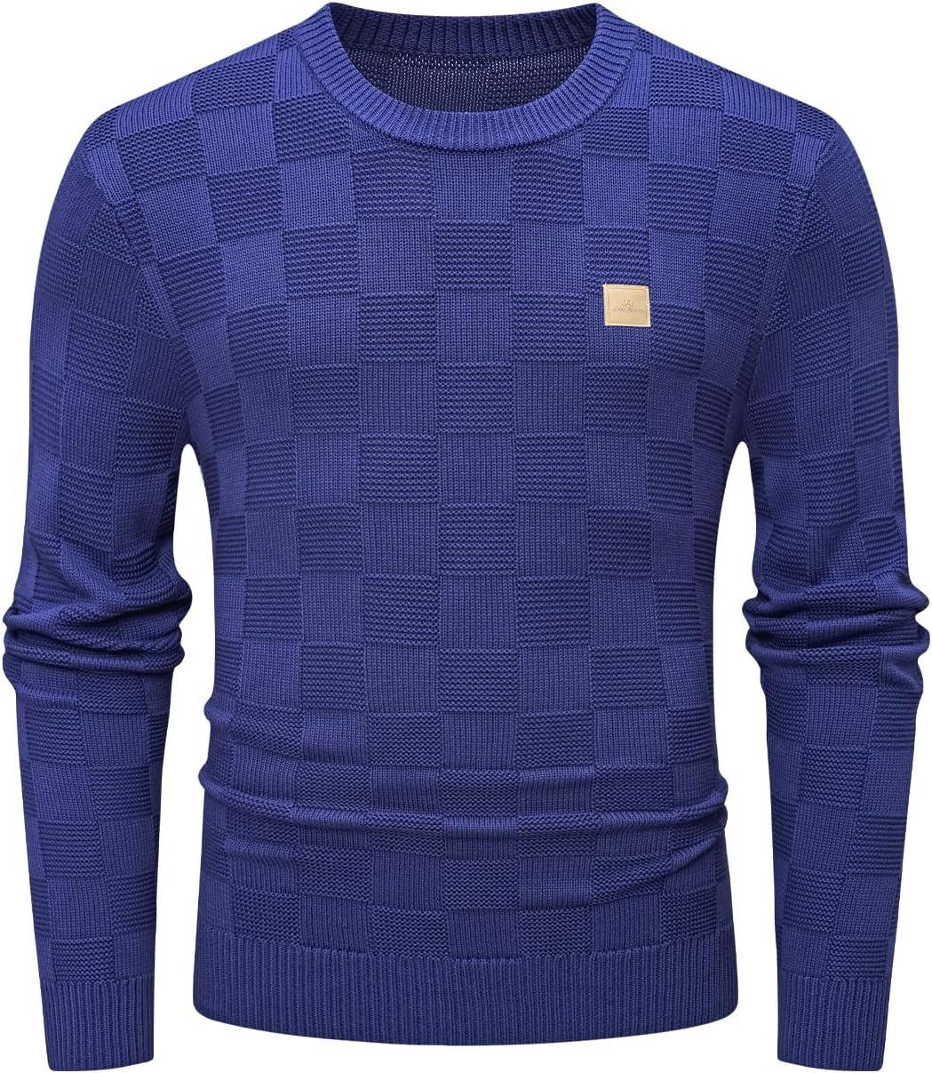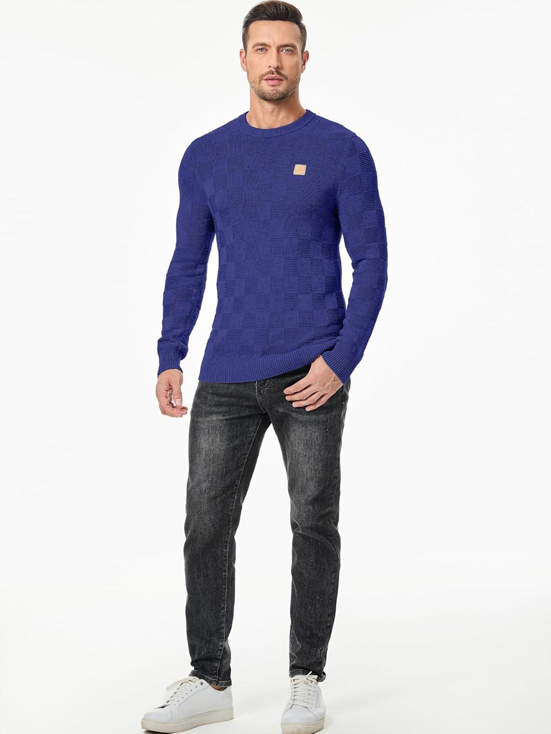 JMIERR Men’s Crewneck Sweater Casual Fall Checkered Long Sleeve Knit Pullover Sweaters(Royal Blue)