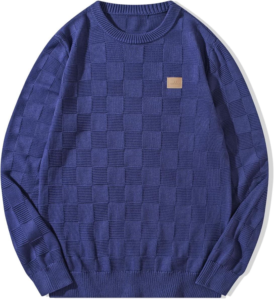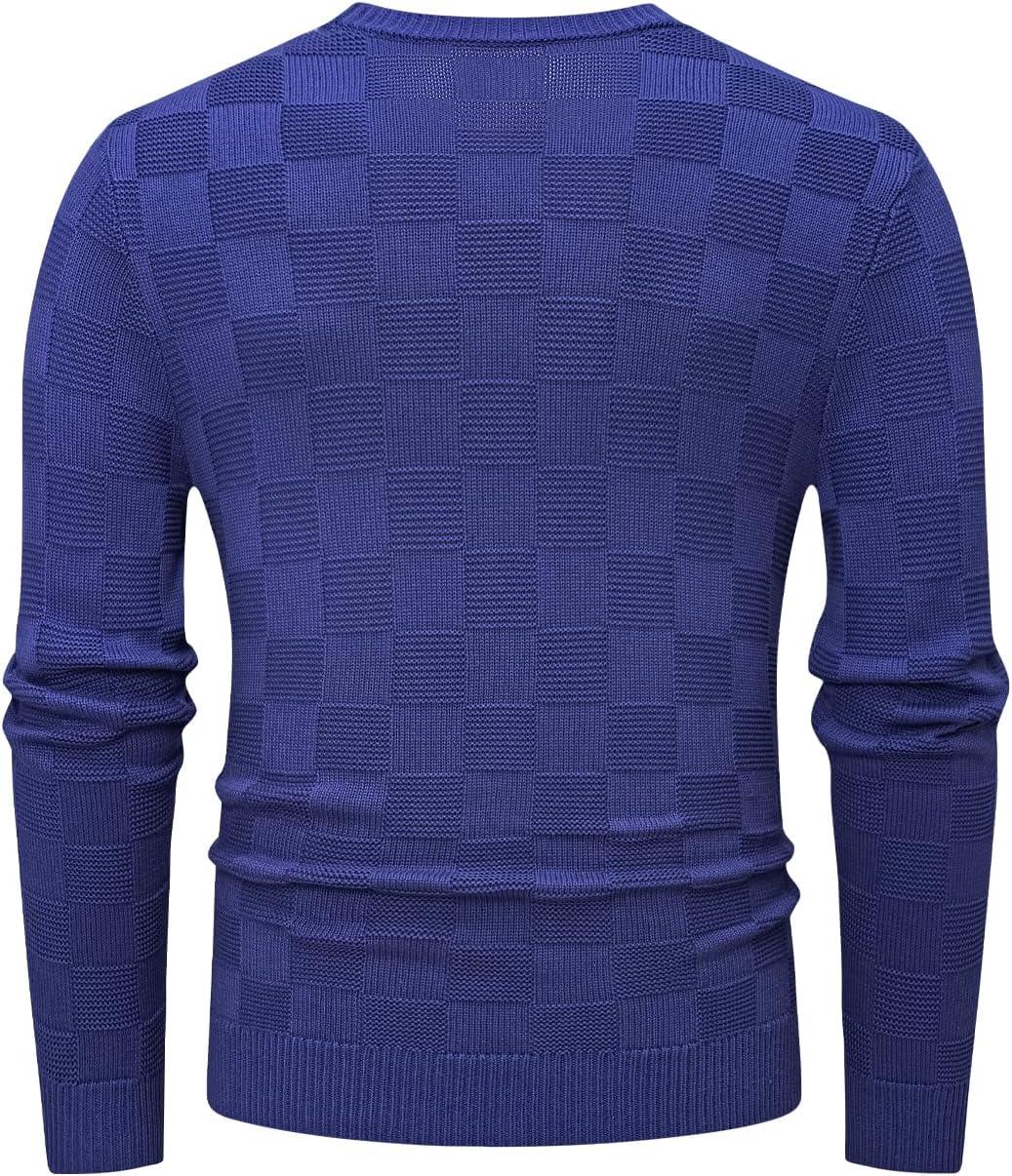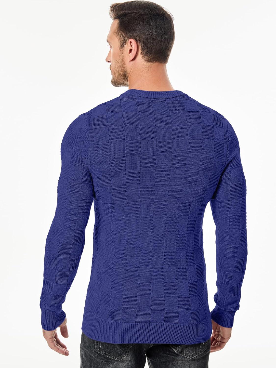 JMIERR Men’s Crewneck Sweater Casual Fall Checkered Long Sleeve Knit Pullover Sweaters(Royal Blue)