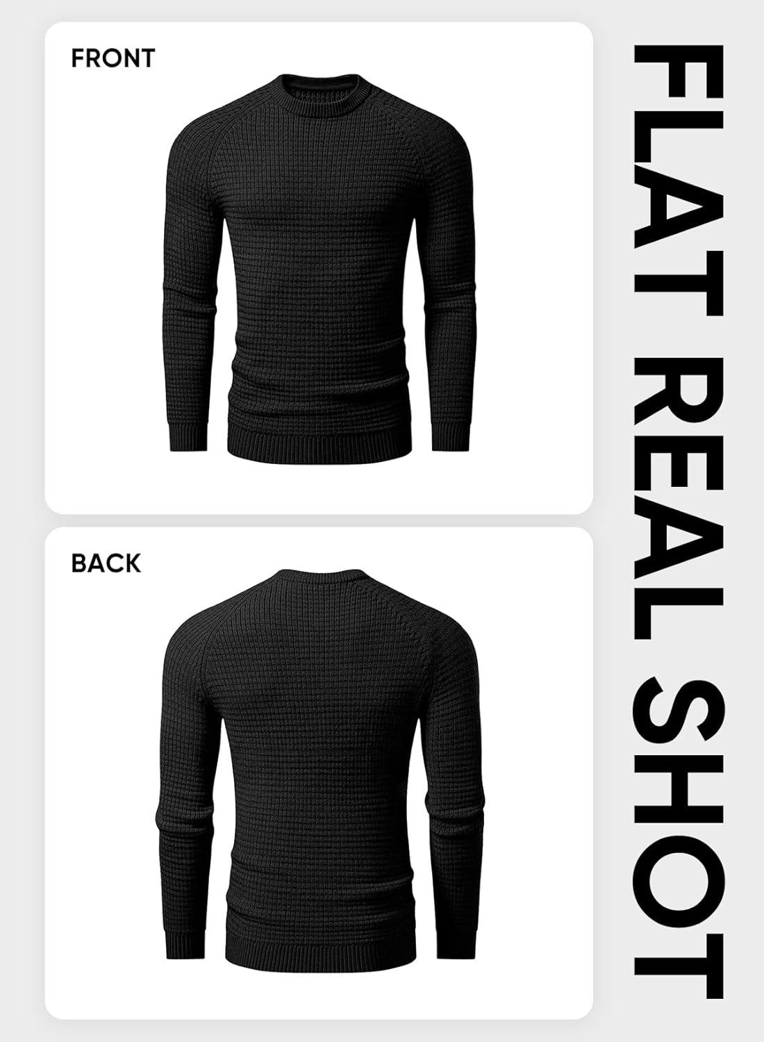 JMIERR Mens Crewneck Sweater Waffle Textured Knitted Solid Pullover Casual Daily Wear Soft 2025 Fashion Pullovers(Black)