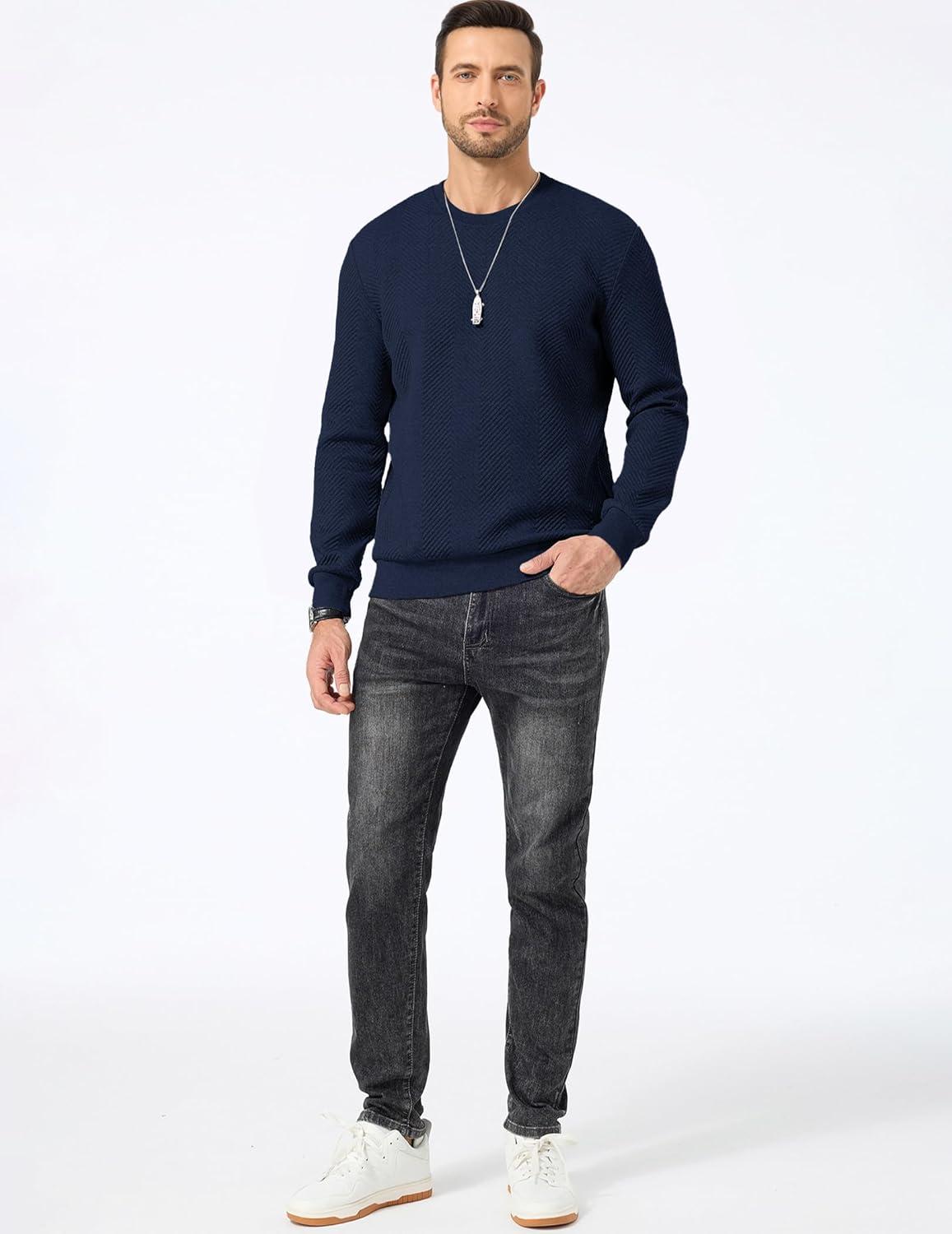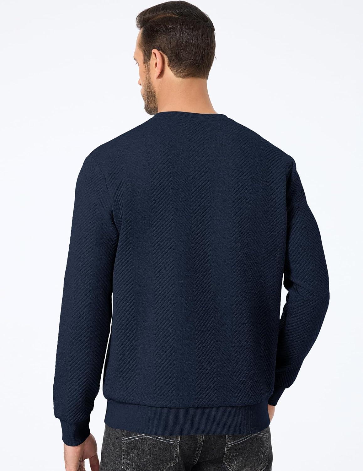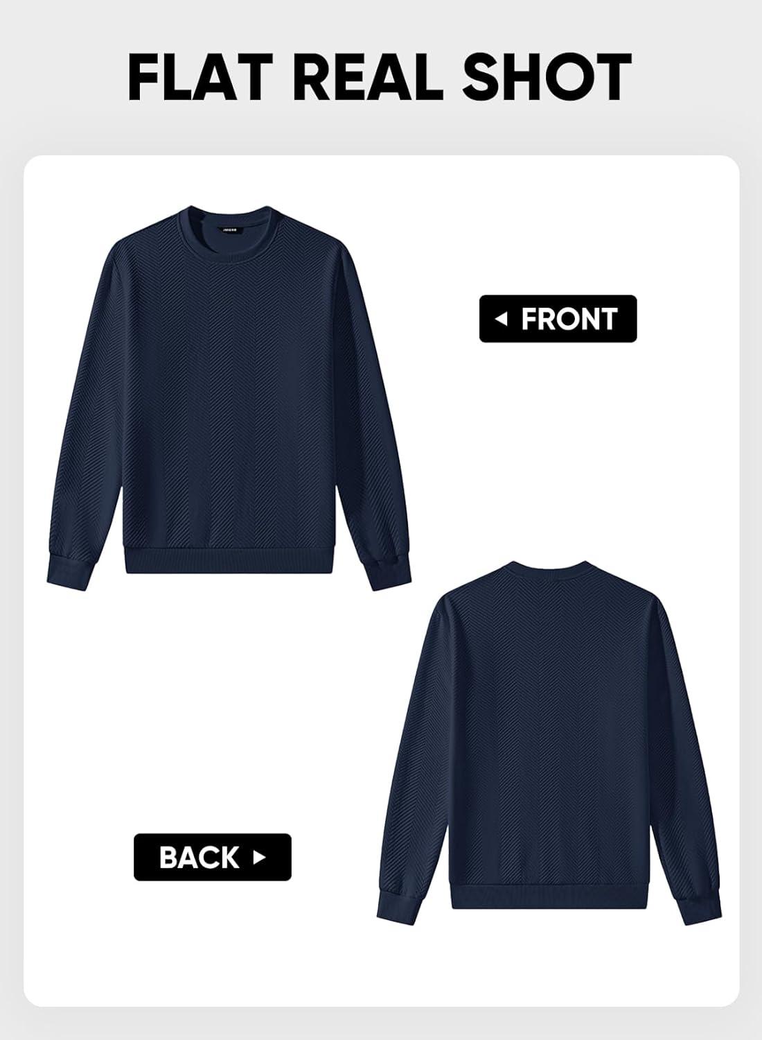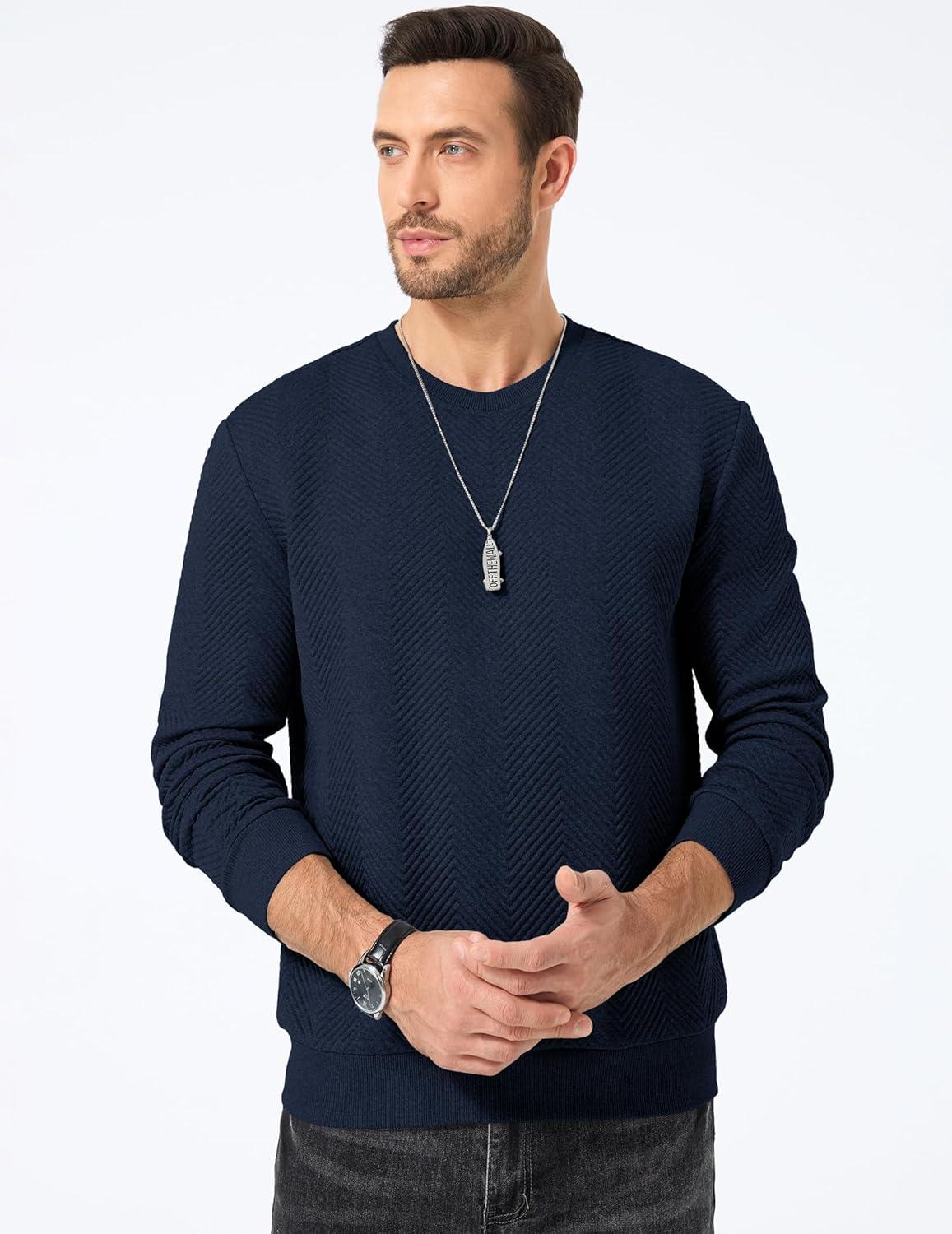 JMIERR Mens Crewneck Sweatshirt Casual Long Sleeve Texture Pullover Shirt for Men(Navy Blue)