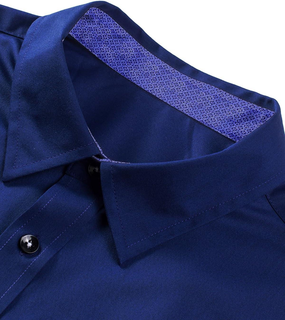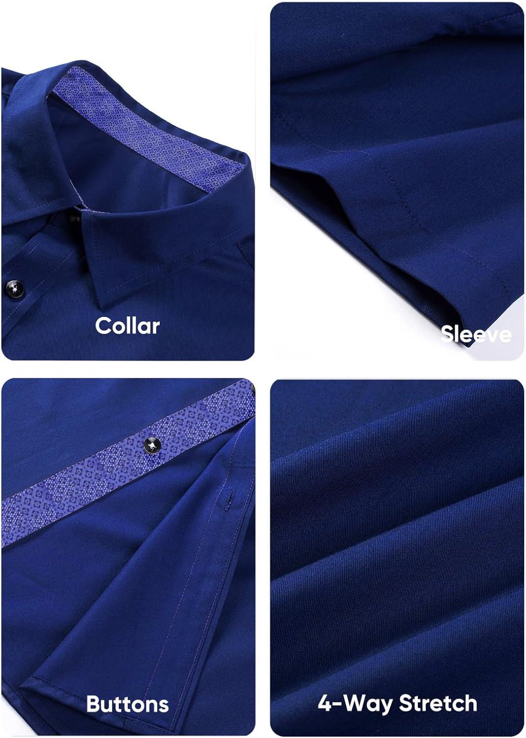 JMIERR Men’s Dress Shirts Regular Fit Wrinkle-Free Short Sleeve Casual Button Down Shirt, L, A Blue3