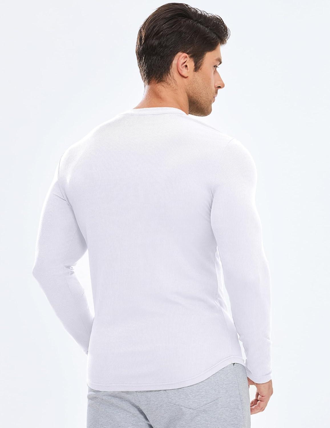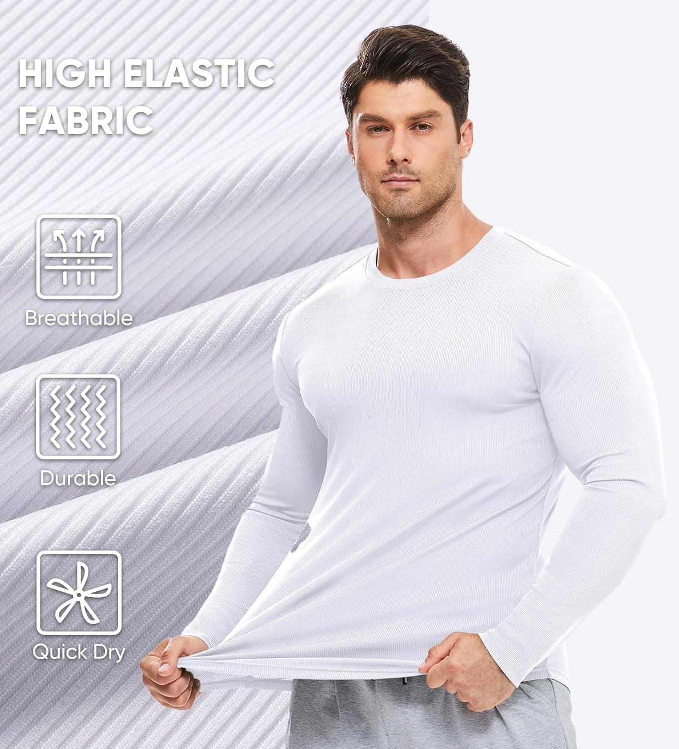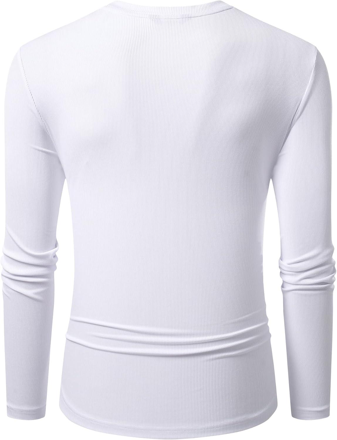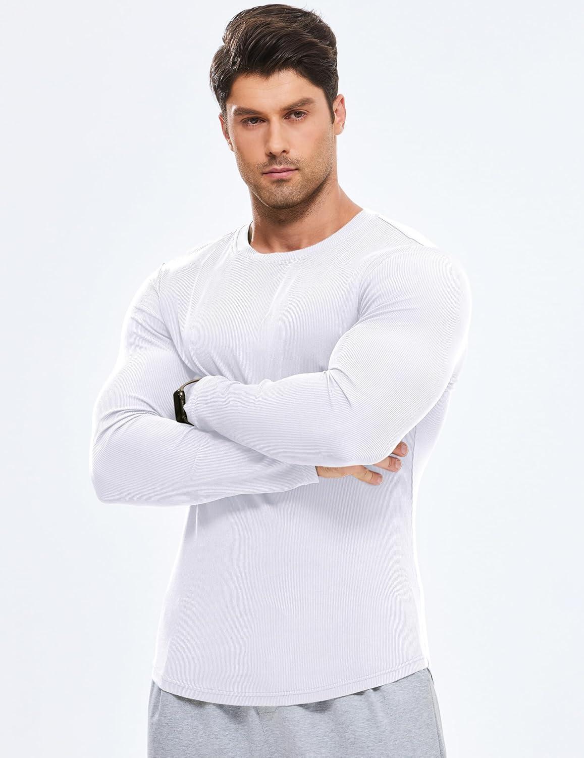 JMIERR Mens Fall Crewneck Shirt Long Sleeve Anti-Wrinkle Casual Muscle T Shirts Longline Ribbed Shirts(01 White)