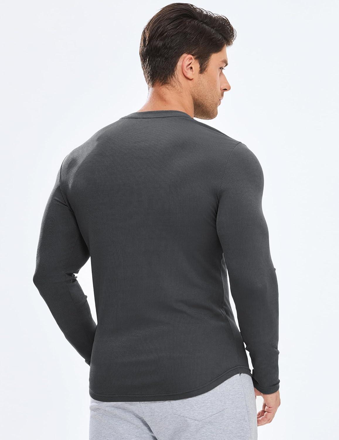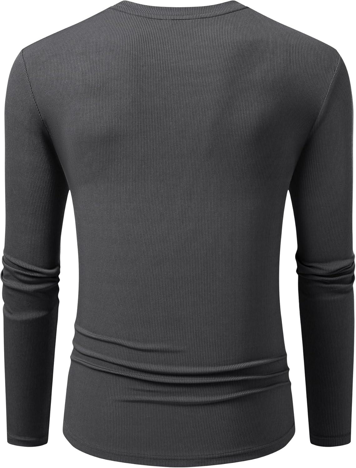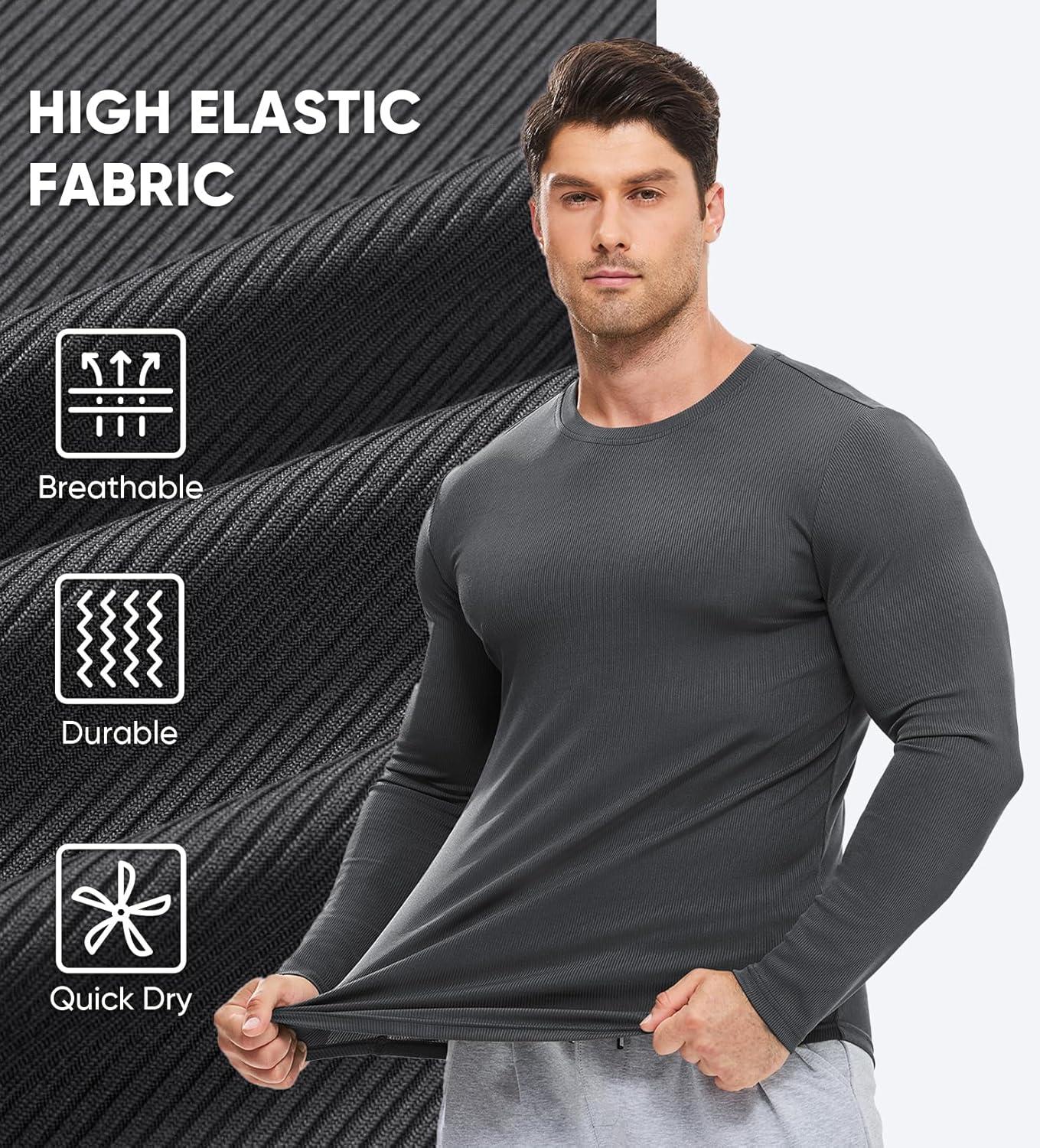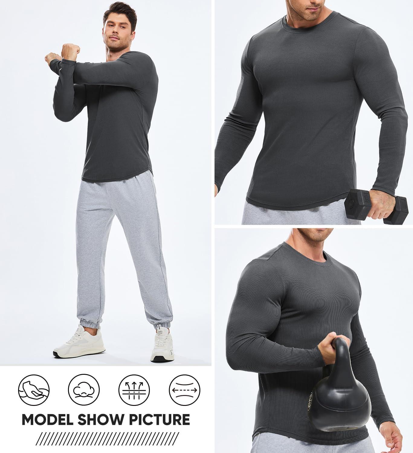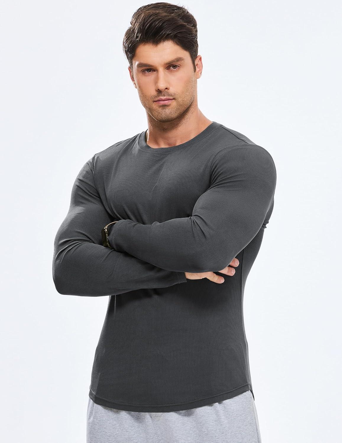 JMIERR Mens Fall Crewneck Shirt Long Sleeve Anti-Wrinkle Casual Muscle T Shirts Longline Ribbed Shirts(02 Dark Grey)