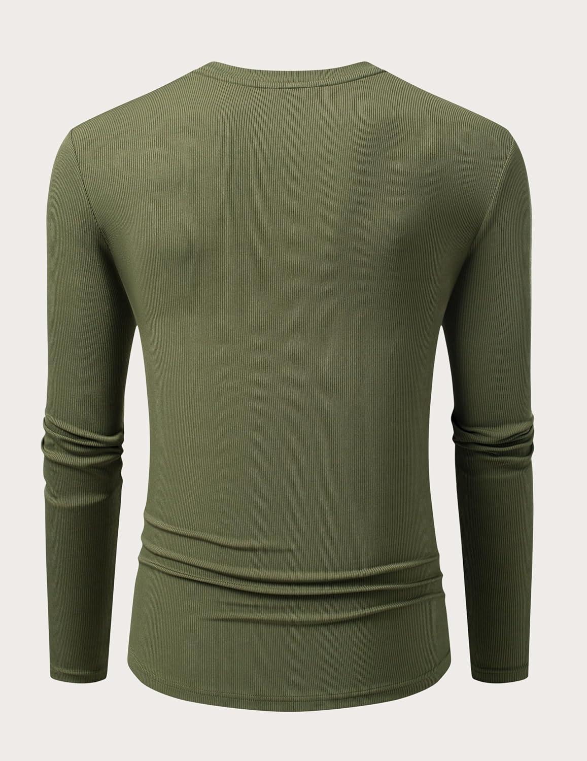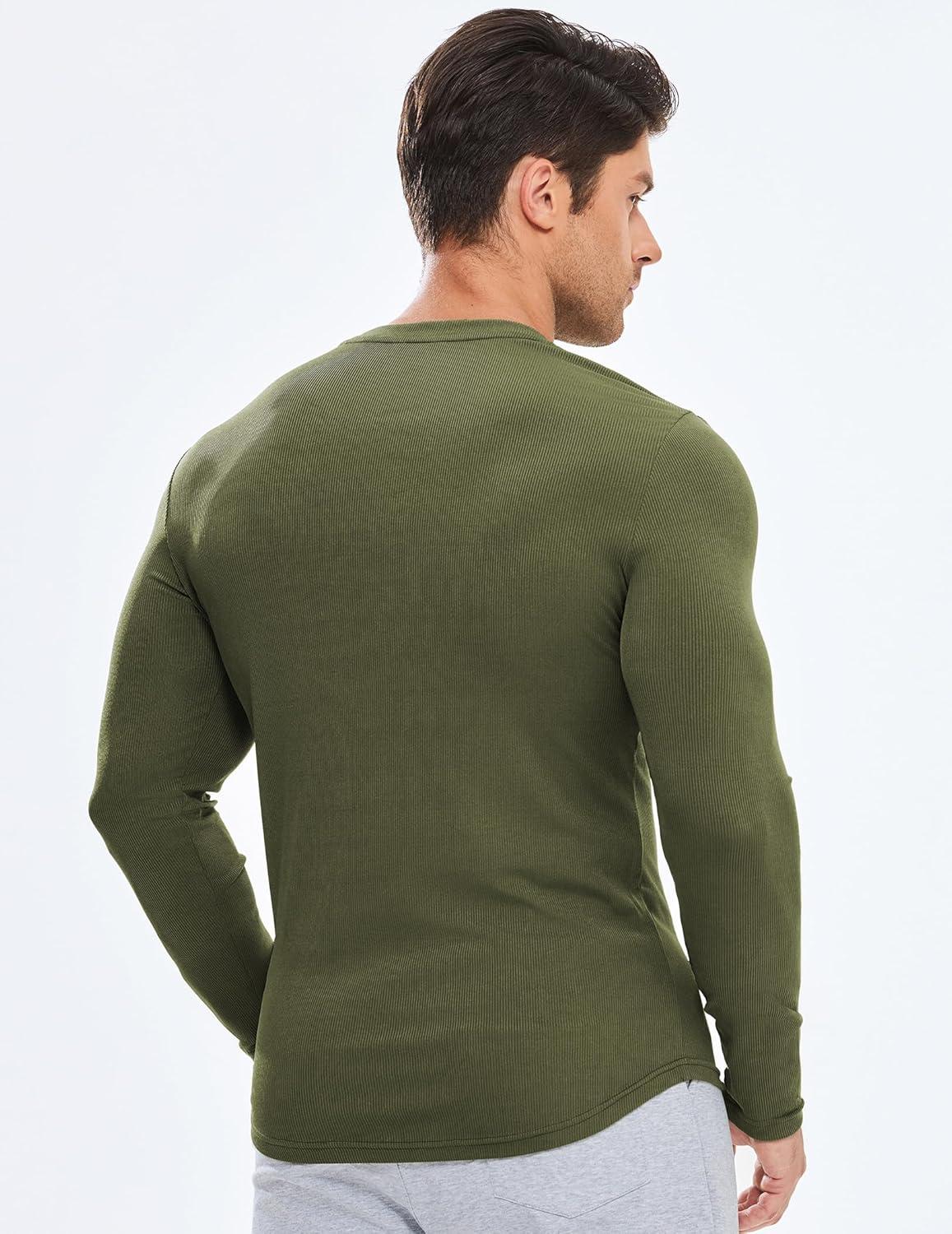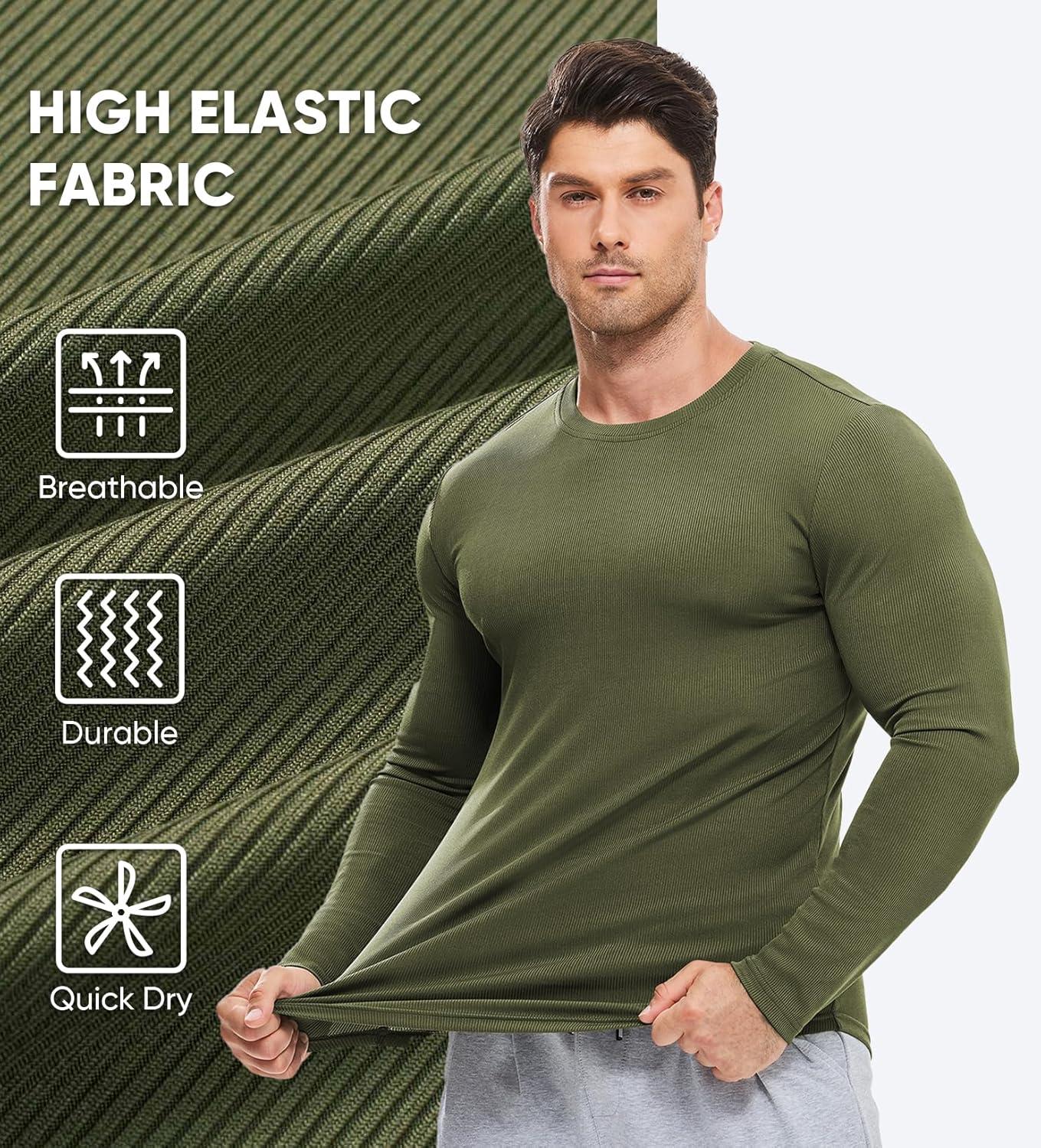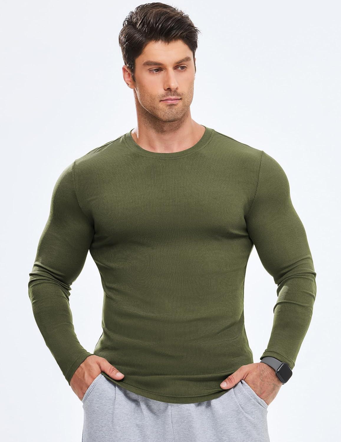 JMIERR Mens Fall Crewneck Shirt Long Sleeve Anti-Wrinkle Casual Muscle T Shirts Longline Ribbed Shirts(03 Army Green)