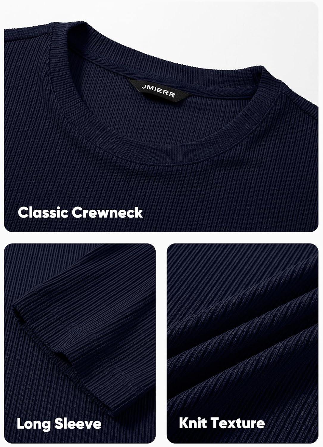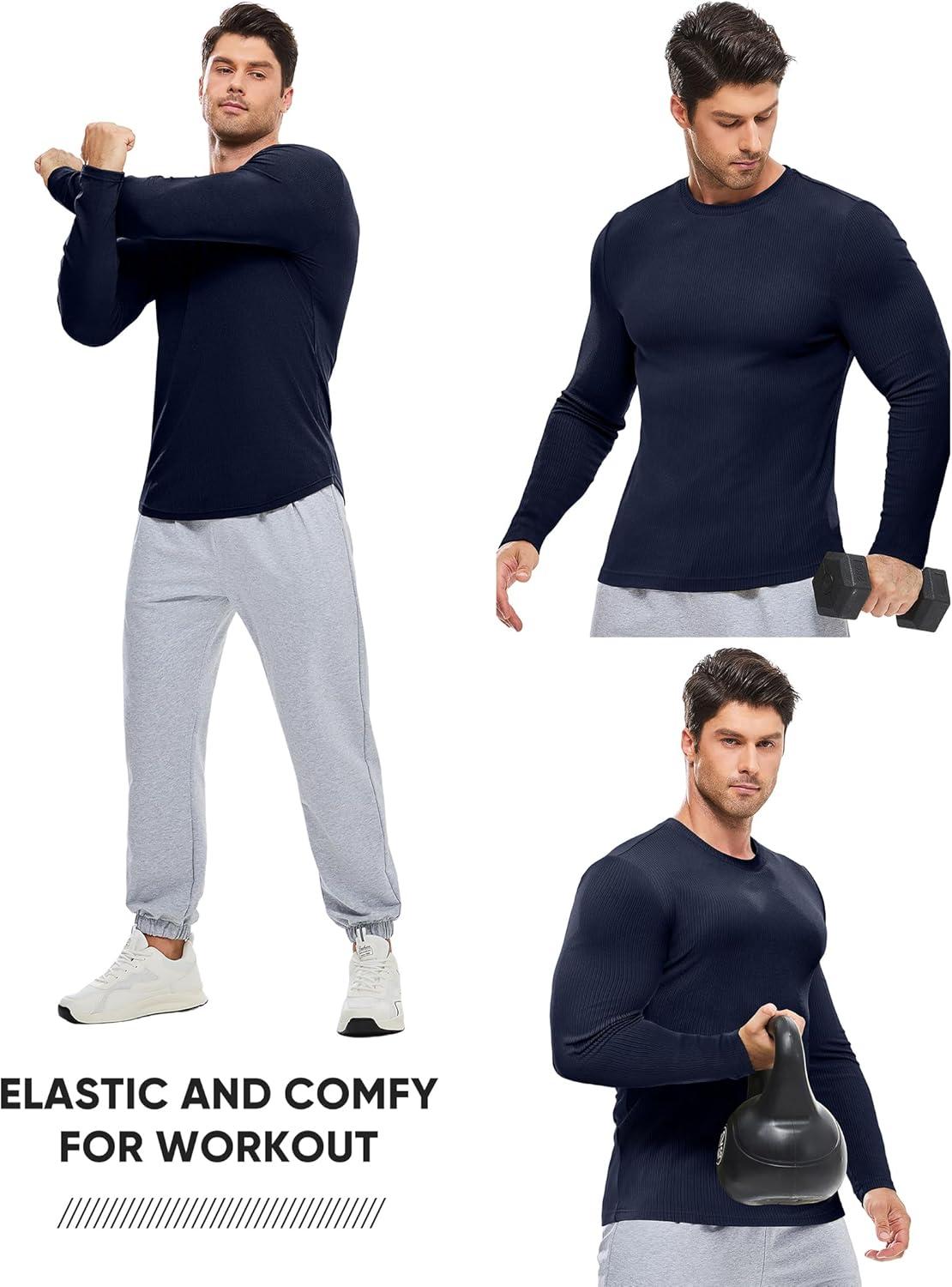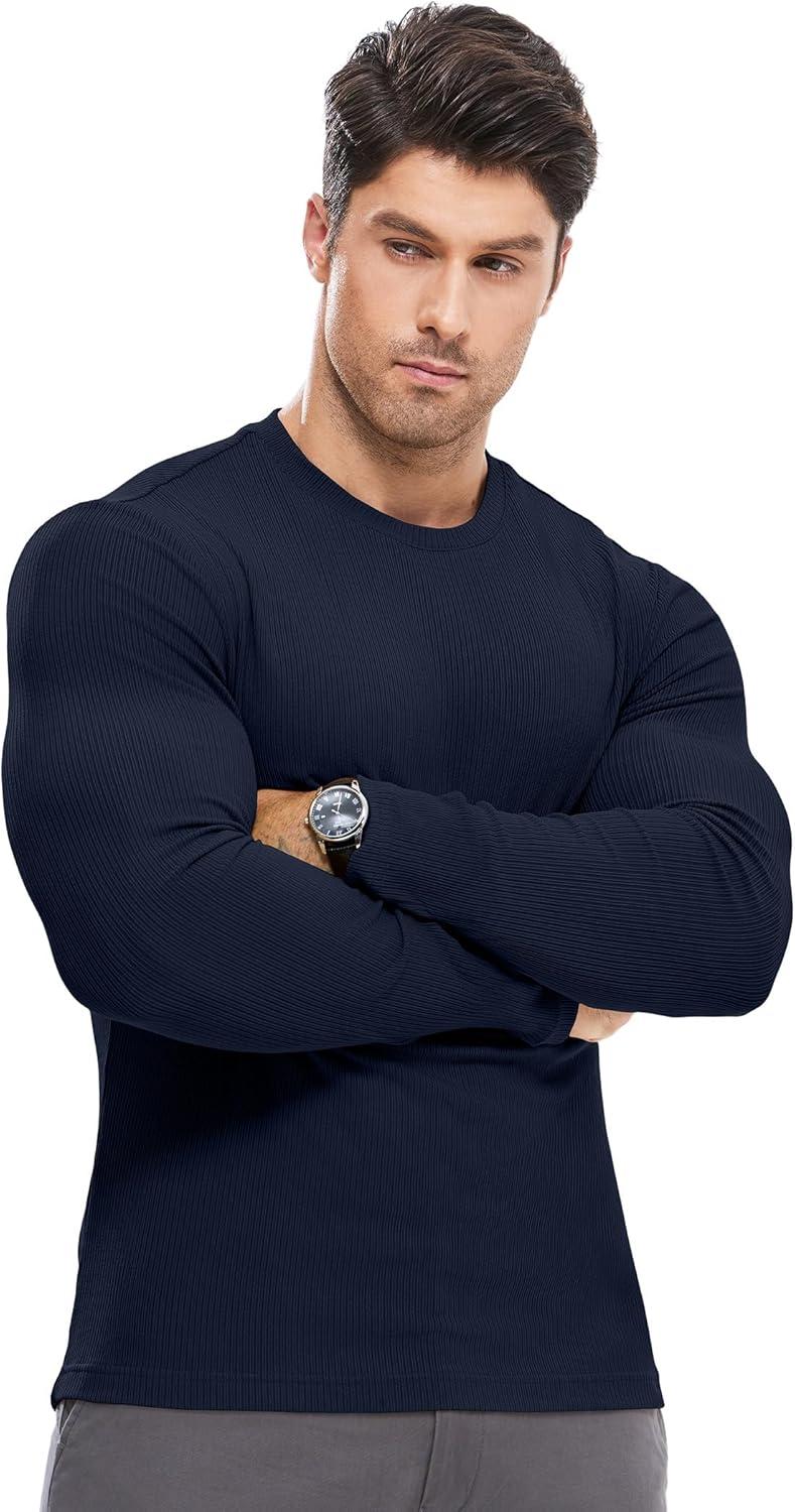JMIERR Mens Fall Crewneck Shirt Long Sleeve Anti-Wrinkle Casual Muscle T Shirts Workout Slim Fitted(B Blue)