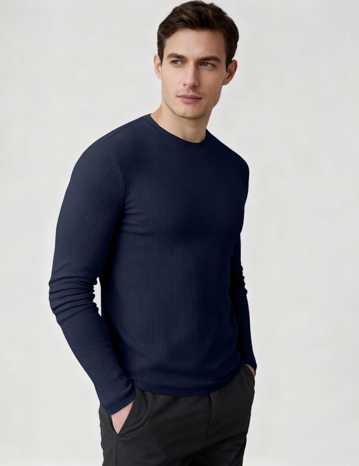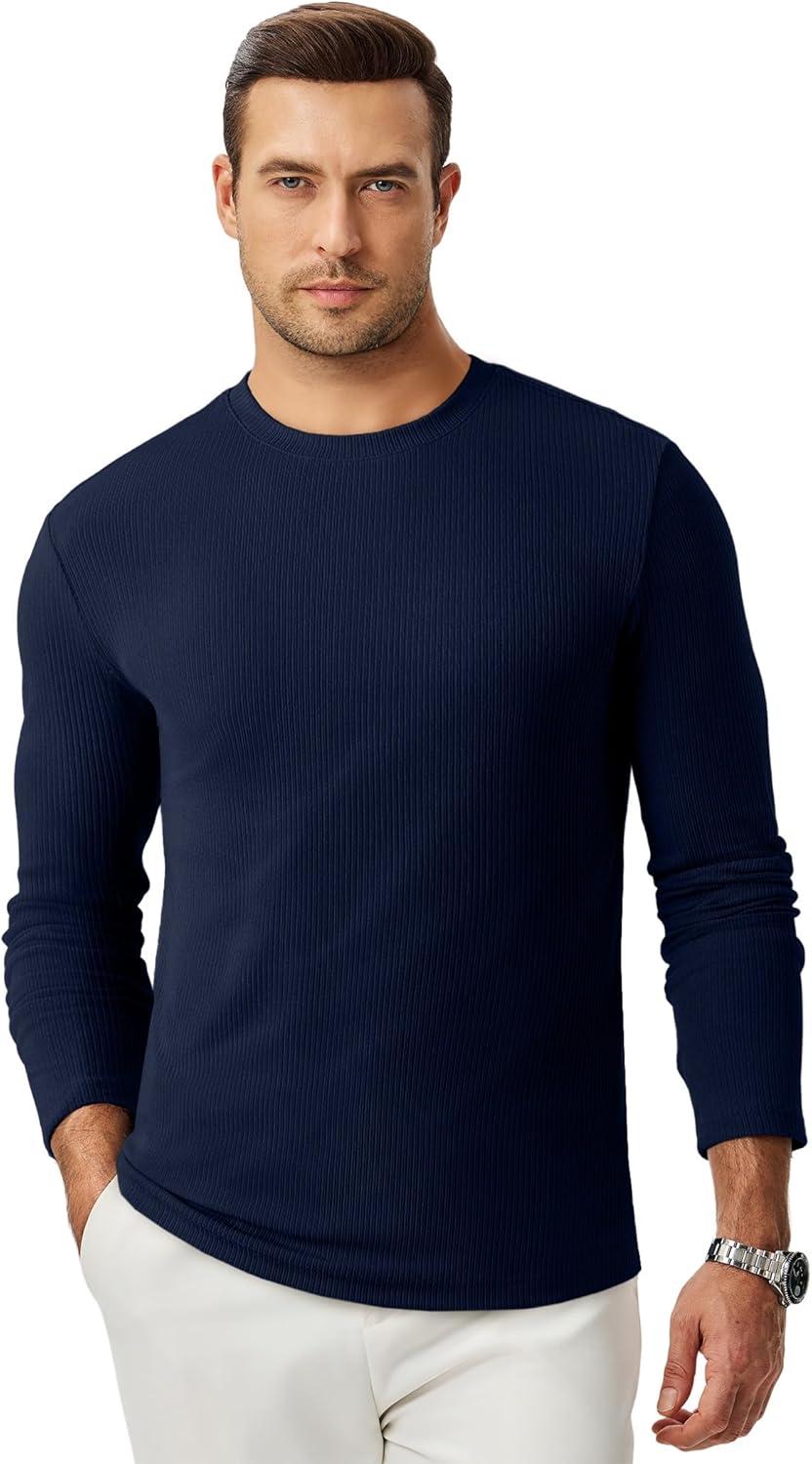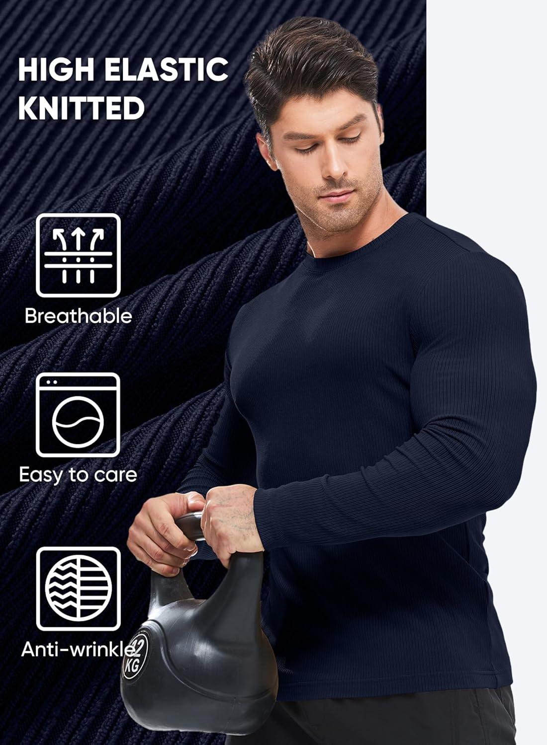 JMIERR Mens Fall Crewneck Shirt Long Sleeve Anti-Wrinkle Casual Muscle T Shirts Workout Slim Fitted(B Blue)