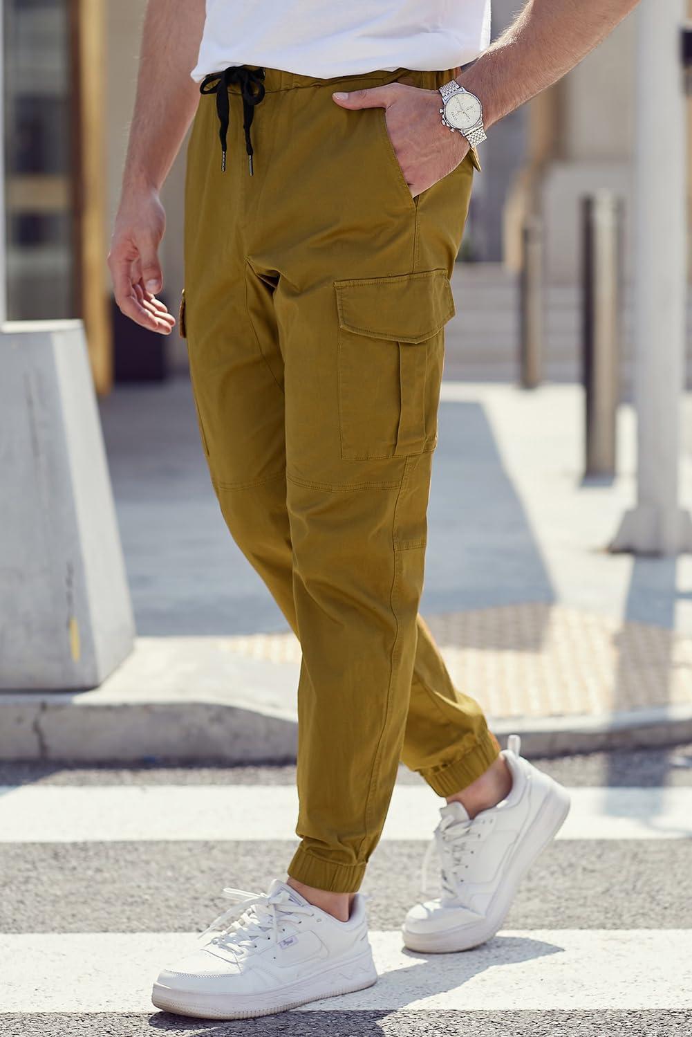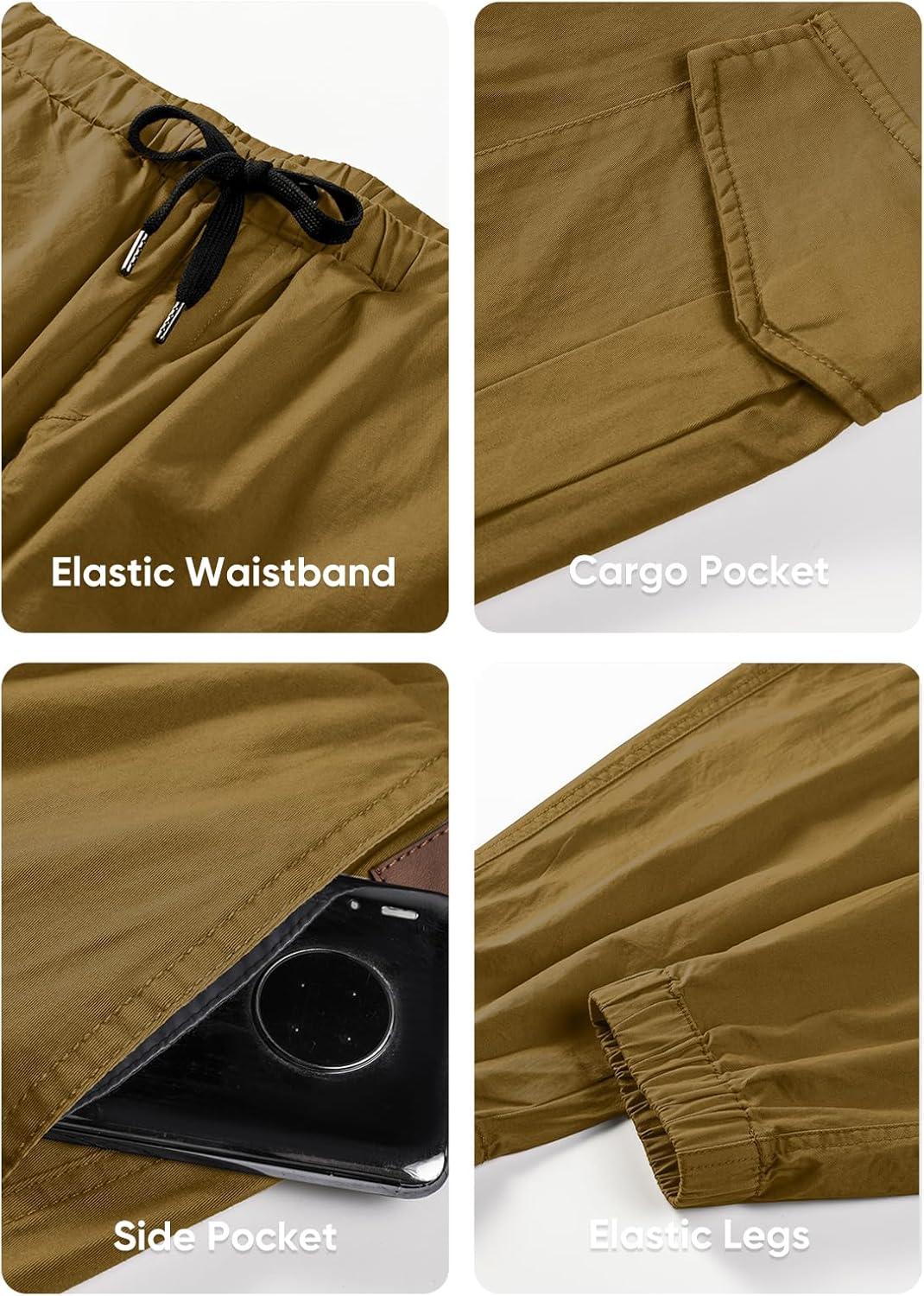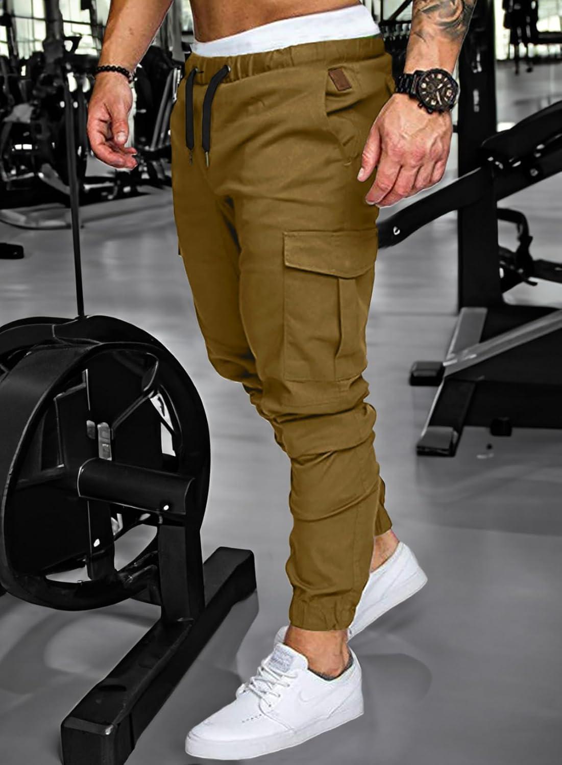 JMIERR Mens Fashion Cargo Pants – Casual Cotton Tapered Stretch Twill Drawstring Athletic Joggers Sweatpants with 6 Pockets(A Brown)