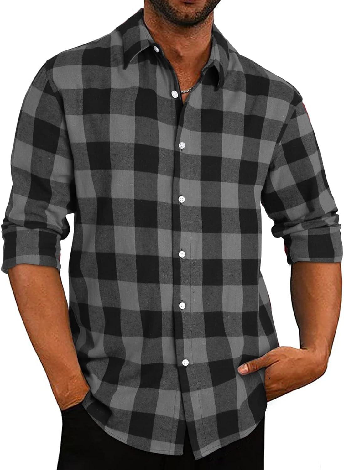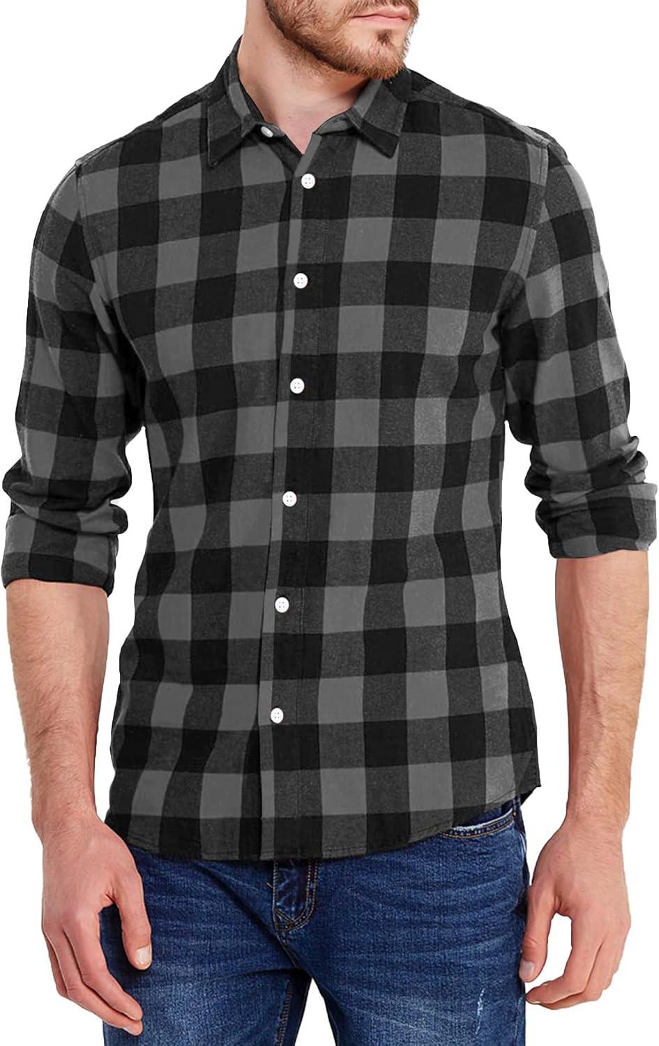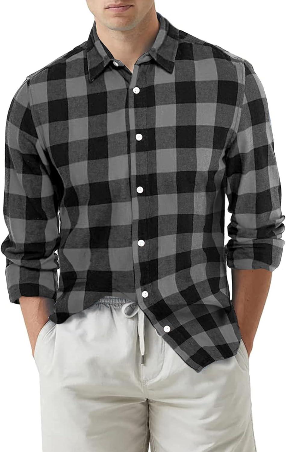 Wardrobe Essential: JMIERR Men's Long Sleeve Button-Down Plaid Shirts are a must-have in any men's wardrobe. With their timeless style and versatility, these shirts can be easily paired with jeans or dress pants for a trendy and fashionable outfit.
