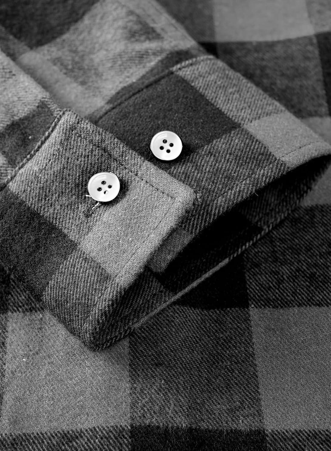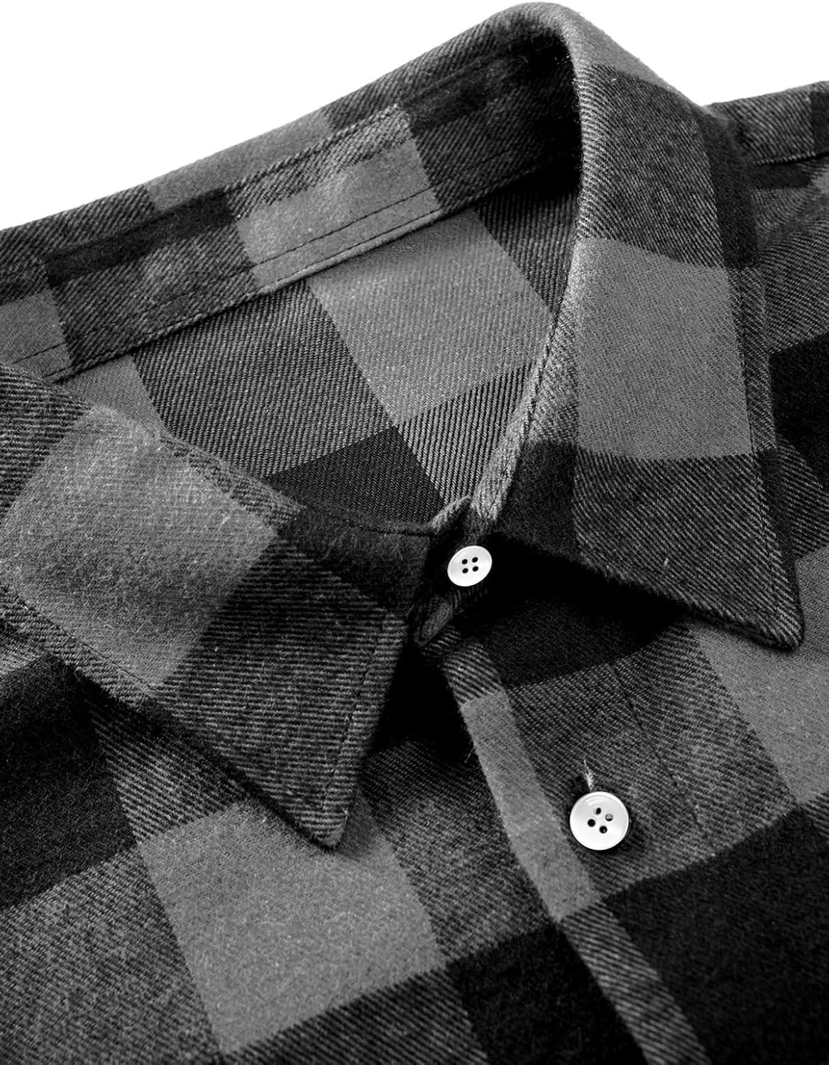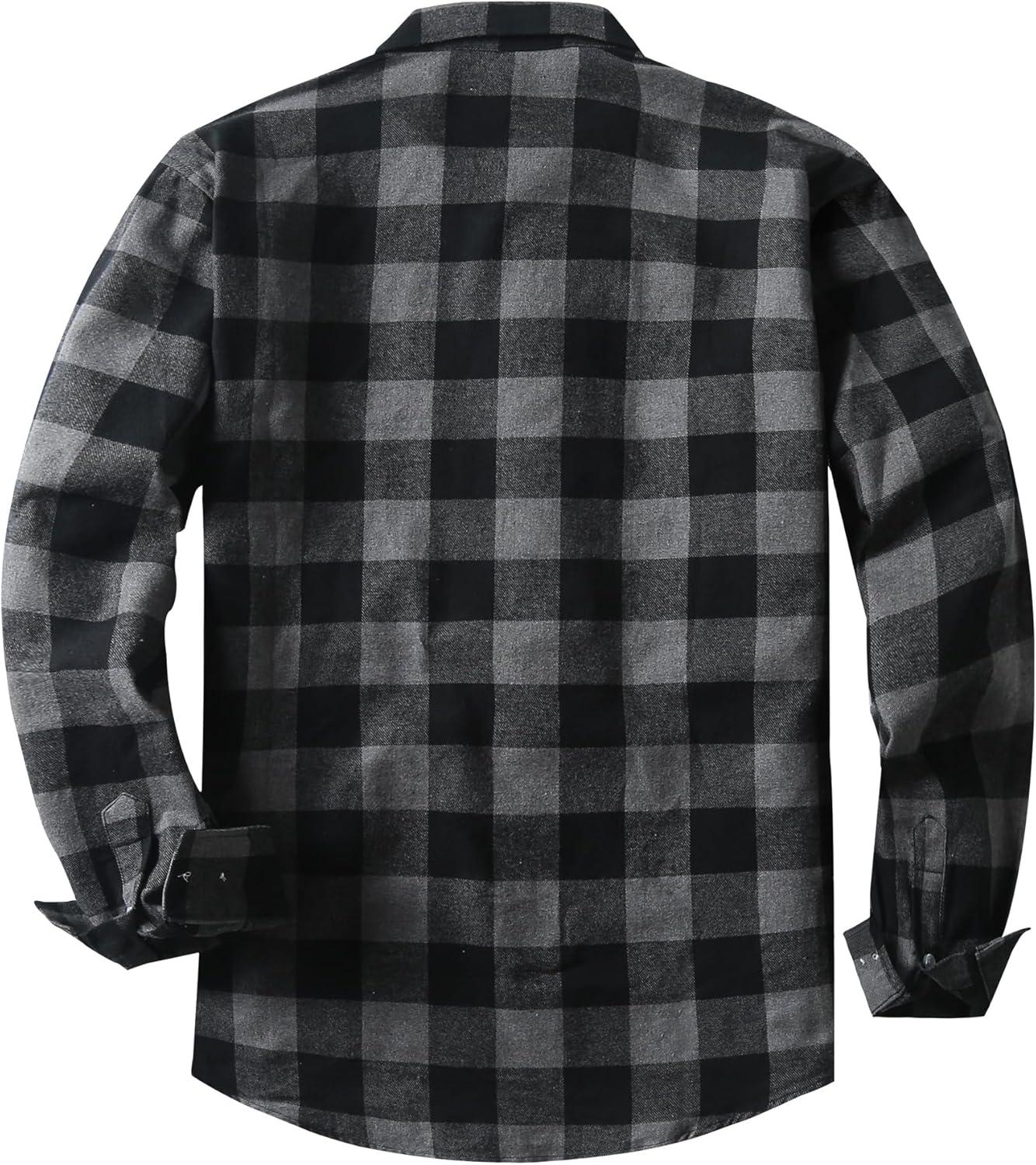 JMIERR Men’s Flannel Shirts Casual Long Sleeve Button-Down Plaid Brushed Cotton Shirt(B Black)