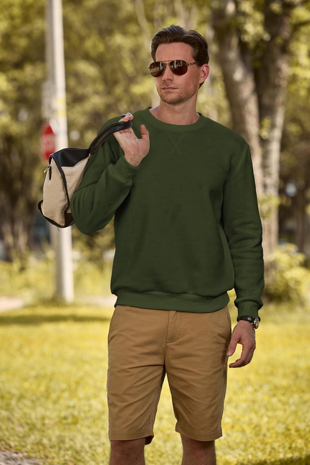 JMIERR Men’s Fleece Crewneck Sweatshirt Casual Long Sleeves Cotton Warm Basic Pullover Fashion Shirts(Yellowish Green)