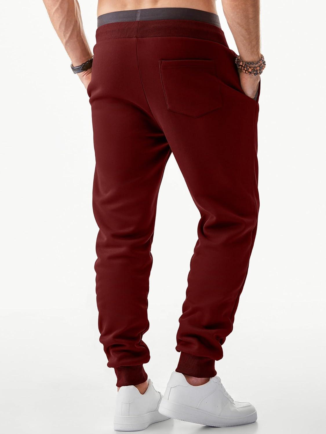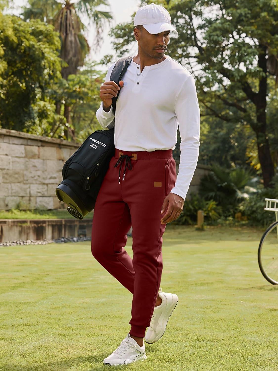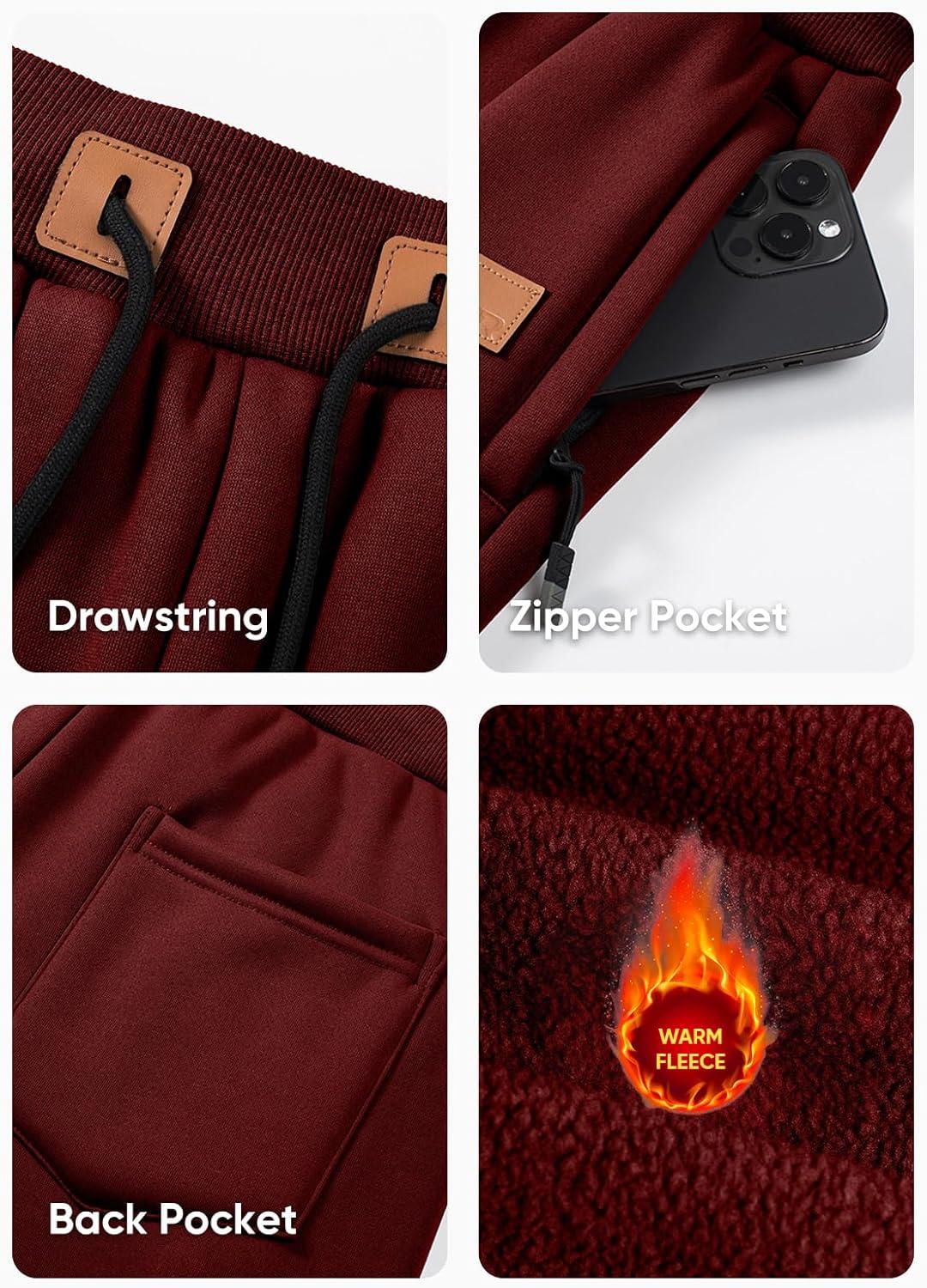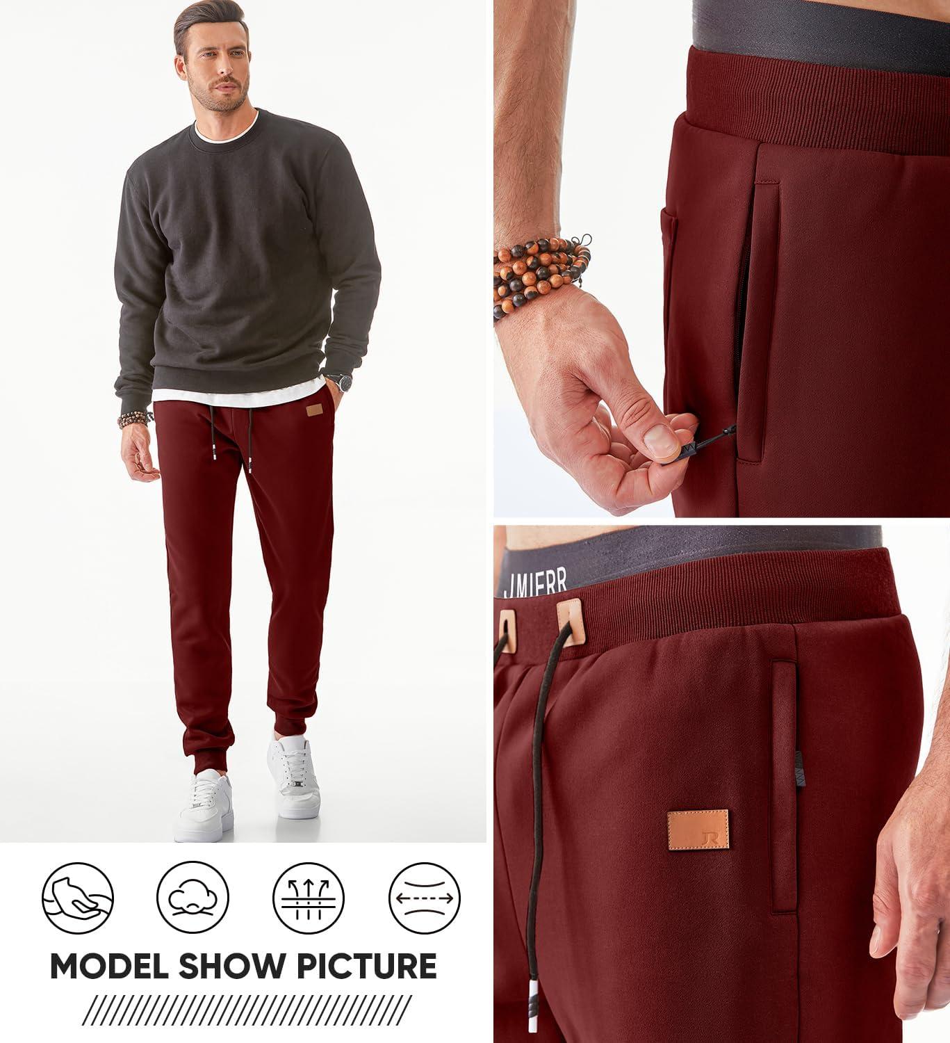 JMIERR Men’s Fleece & Regular Sweatpants with Zipper Pockets Tapered Joggers Drawstring Waist Athletic Workout Track Pants(Fleece Burgundy)