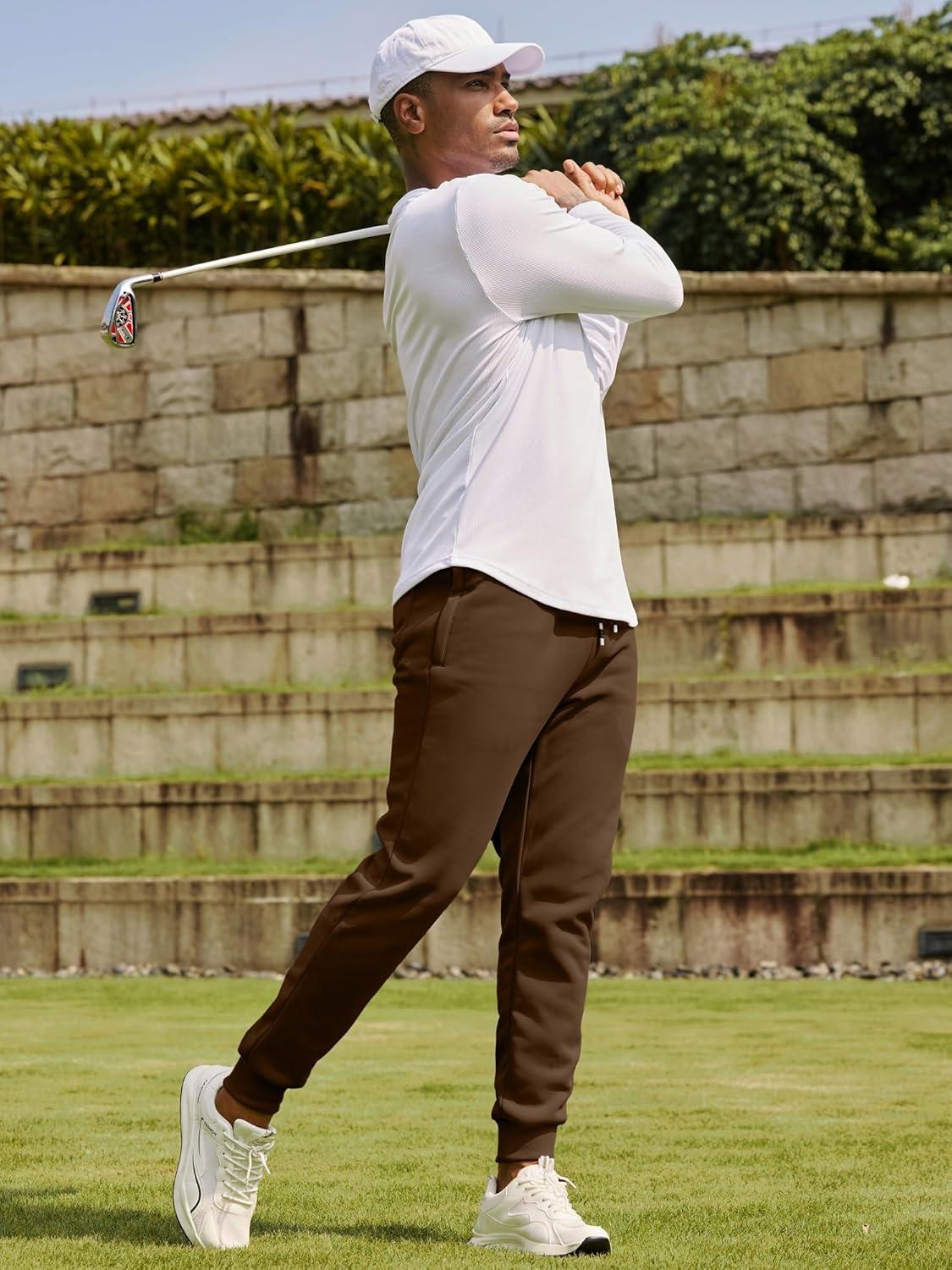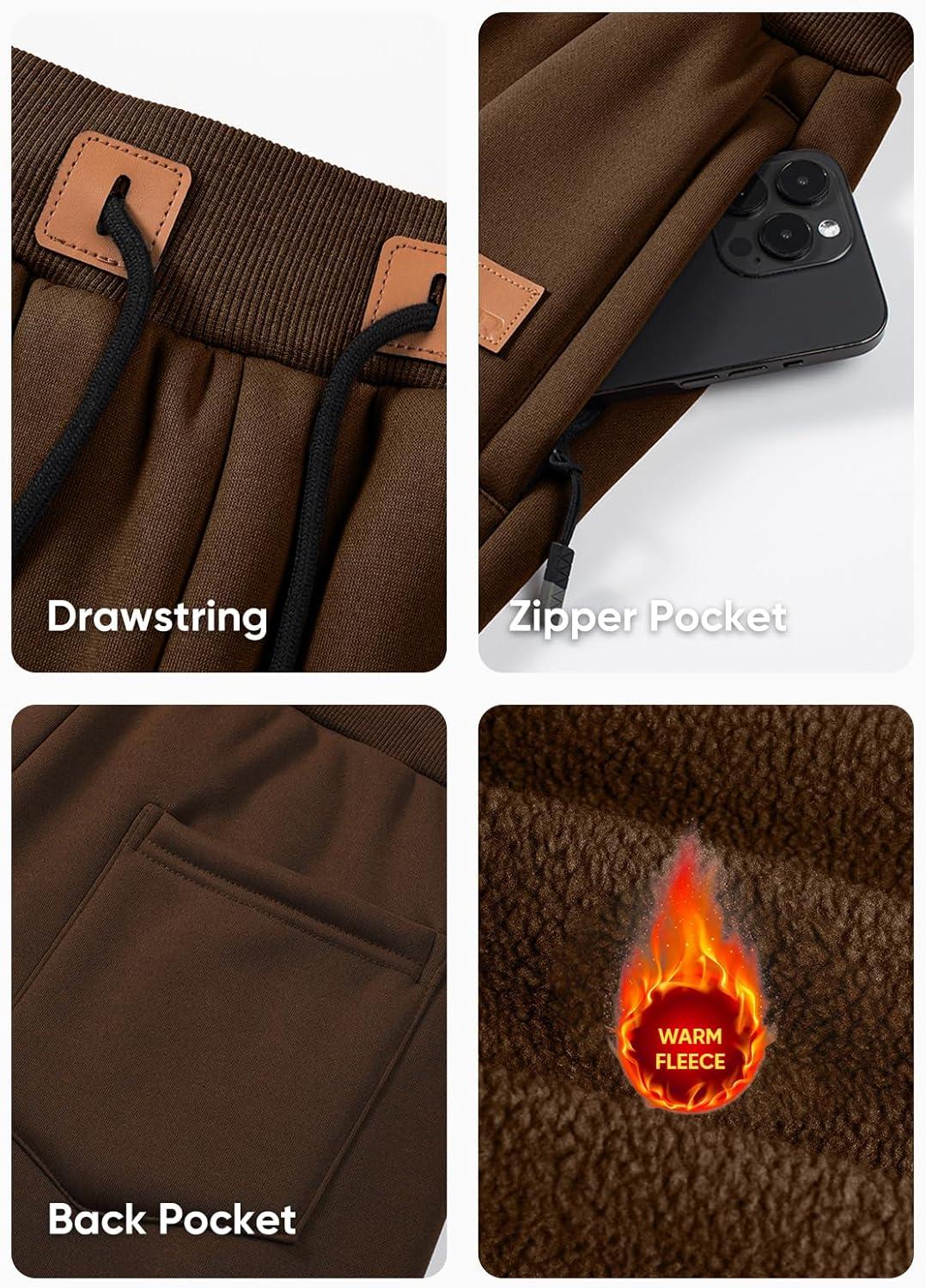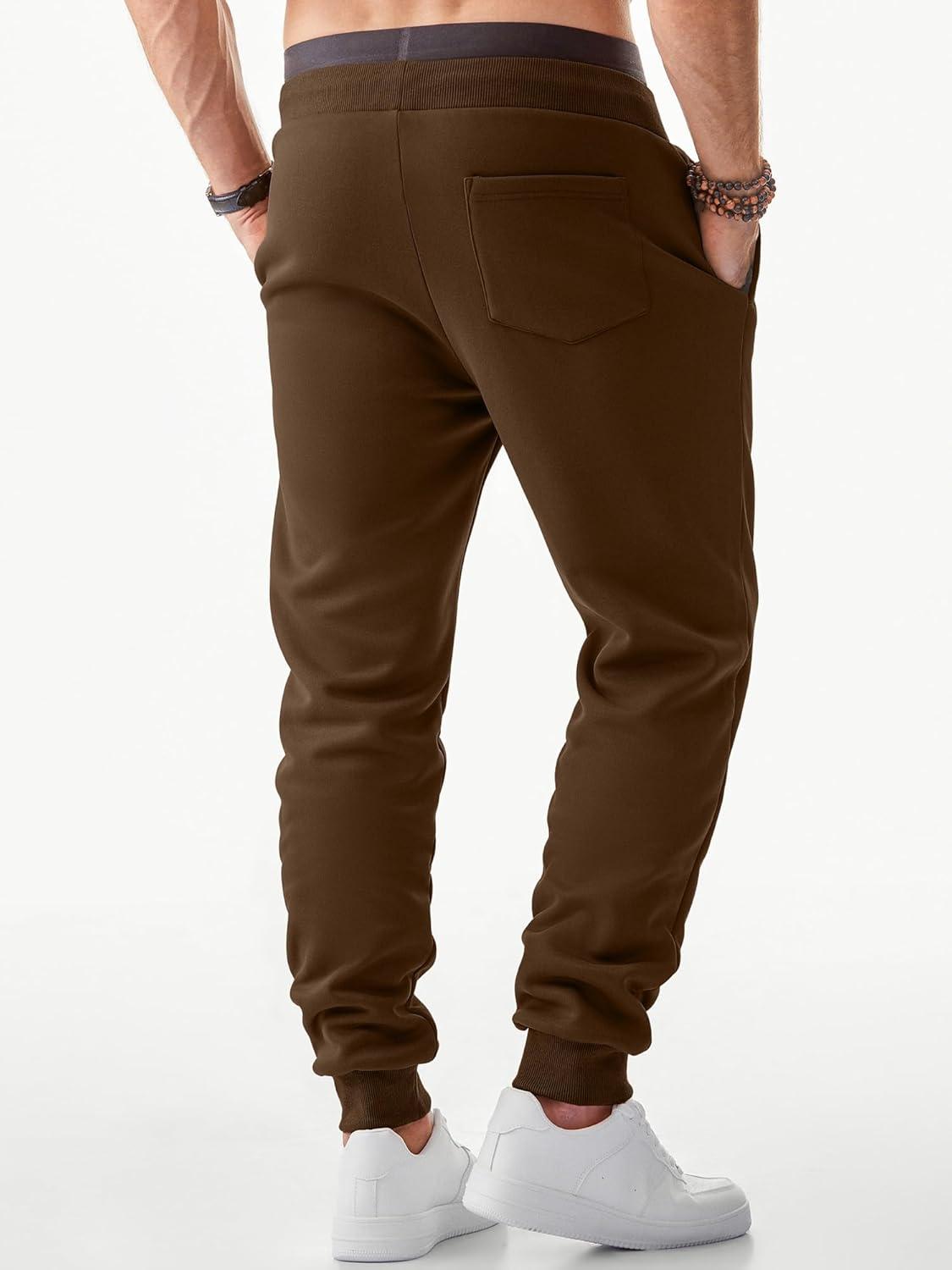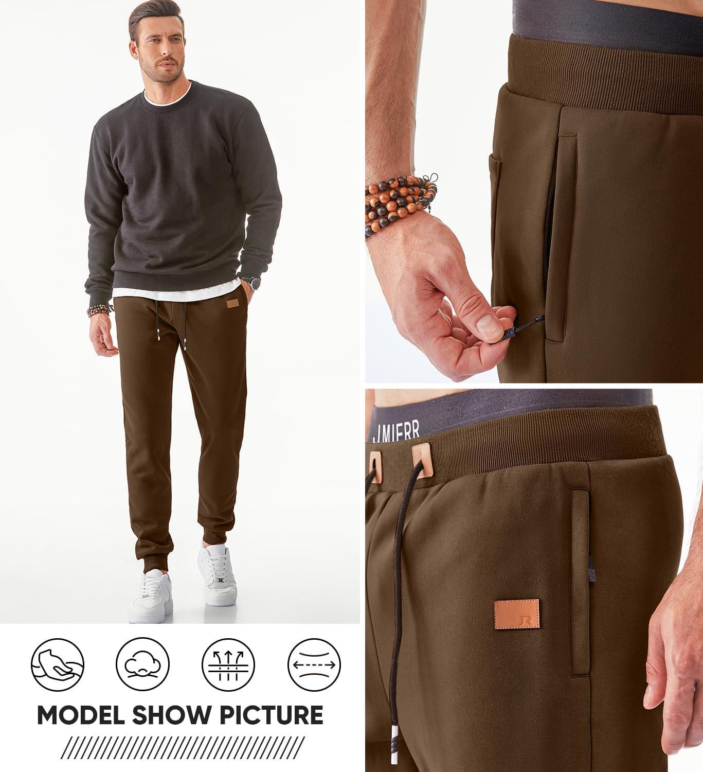 JMIERR Men’s Fleece & Regular Sweatpants with Zipper Pockets Tapered Joggers Drawstring Waist Athletic Workout Track Pants(Fleece Chestnut)