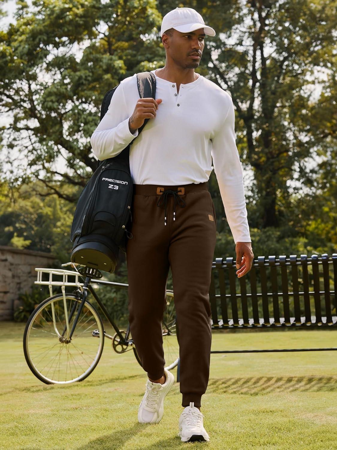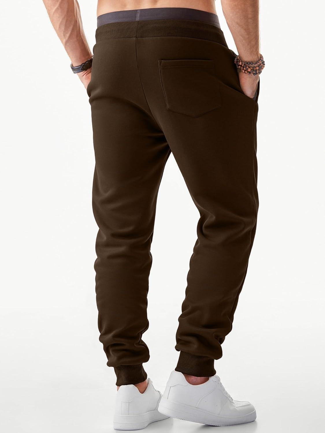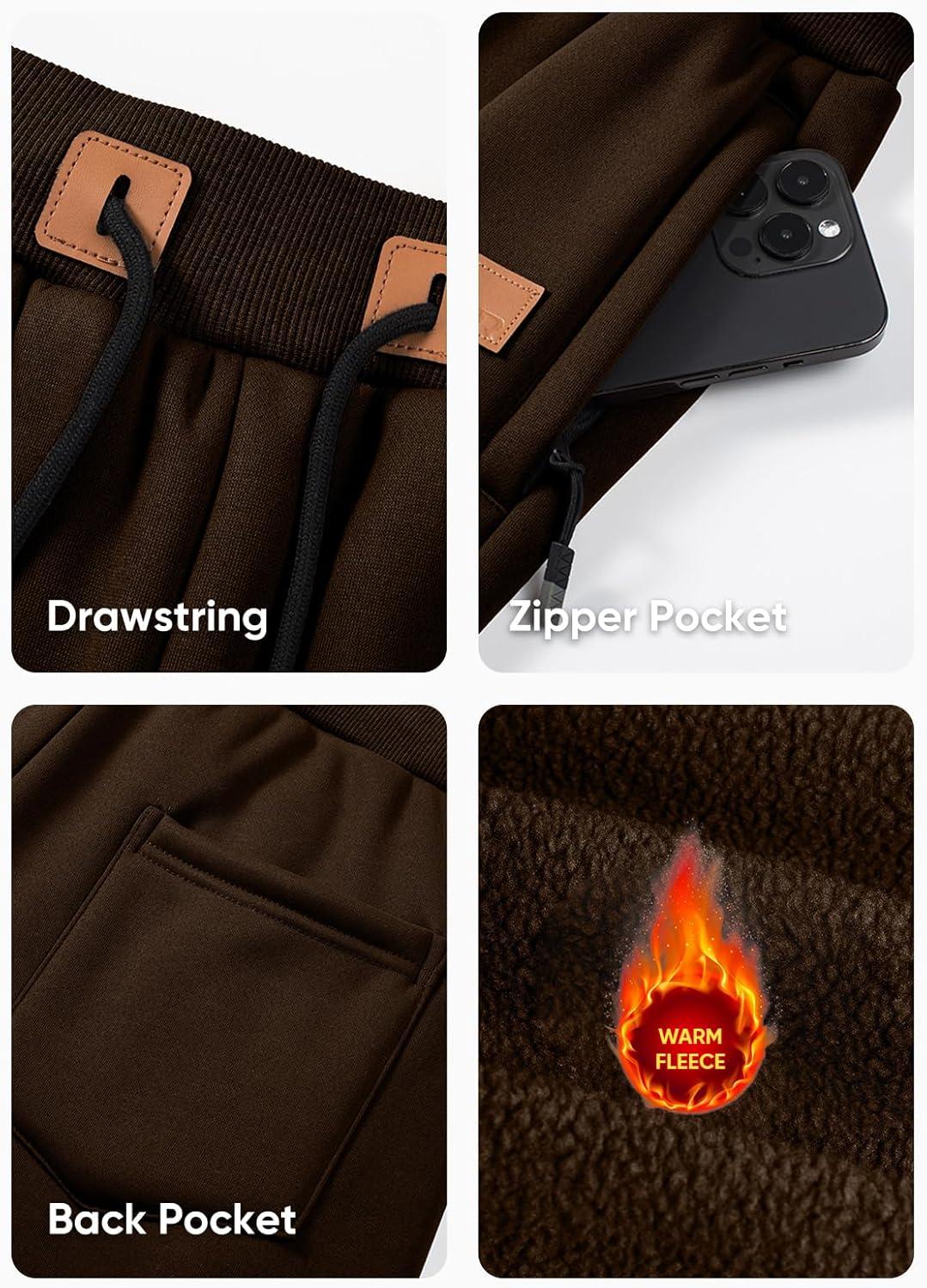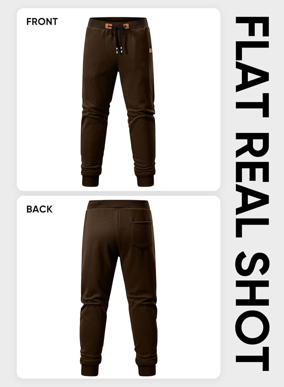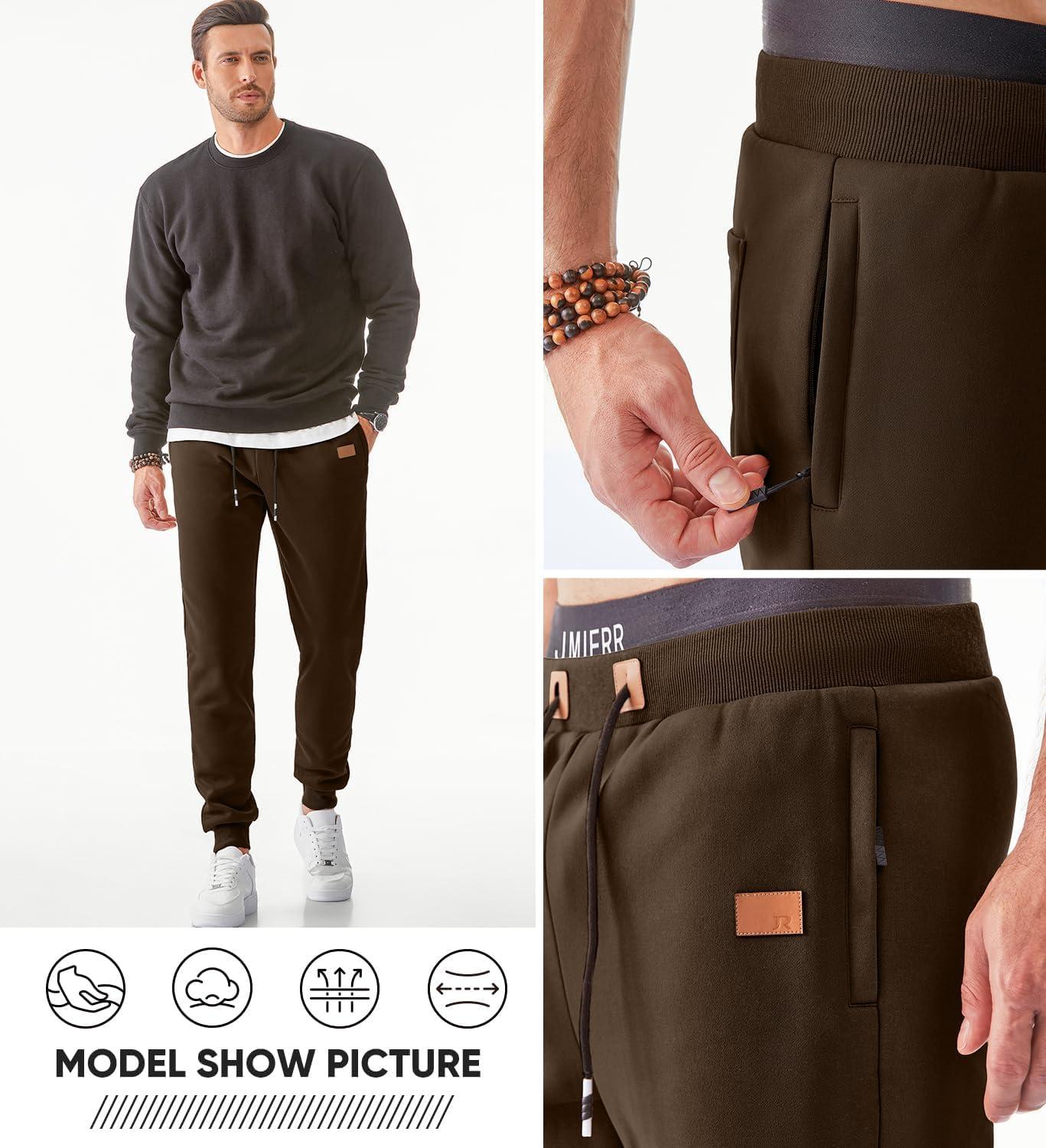 JMIERR Men’s Fleece & Regular Sweatpants with Zipper Pockets Tapered Joggers Drawstring Waist Athletic Workout Track Pants(Fleece Coffee)
