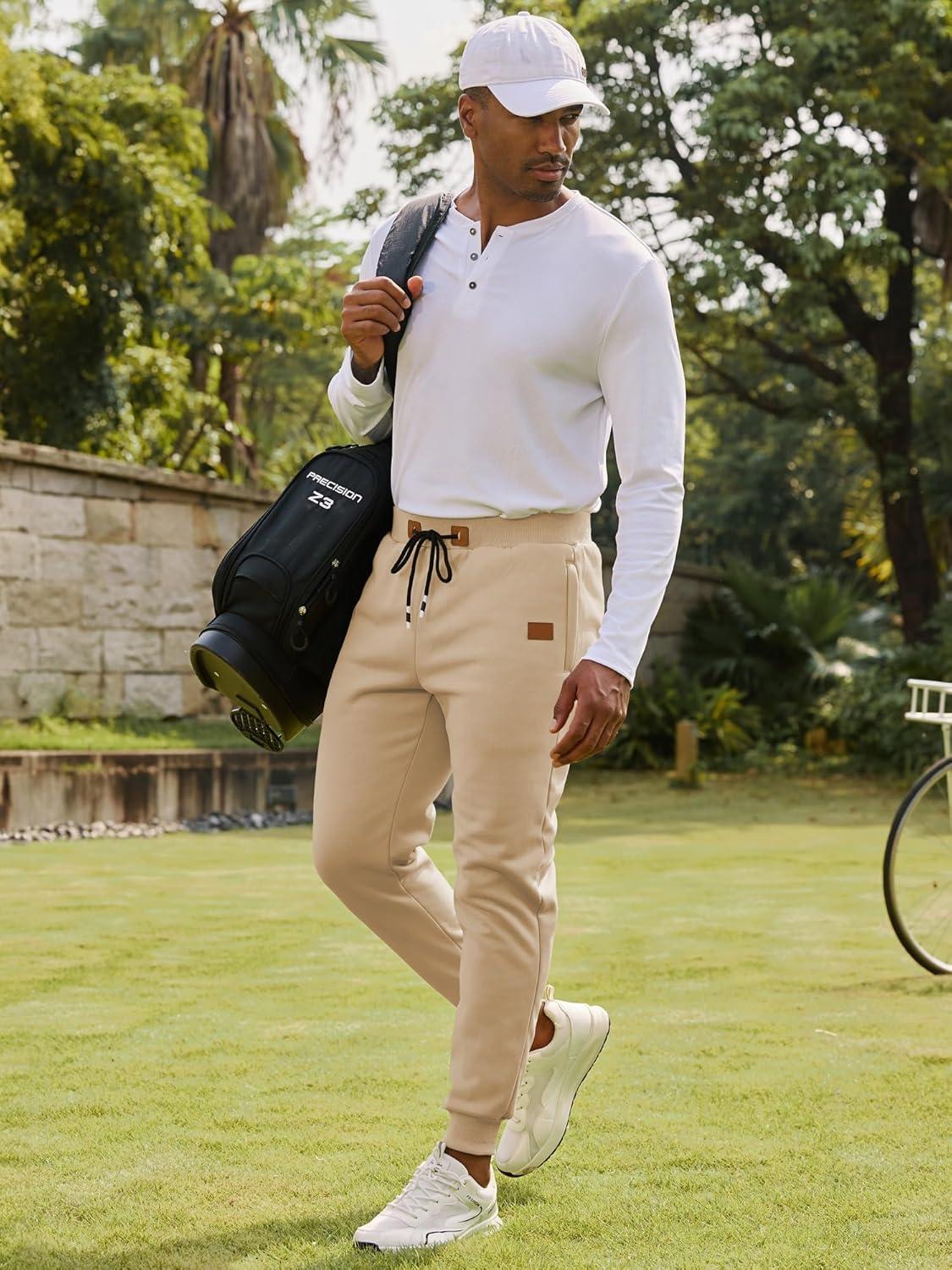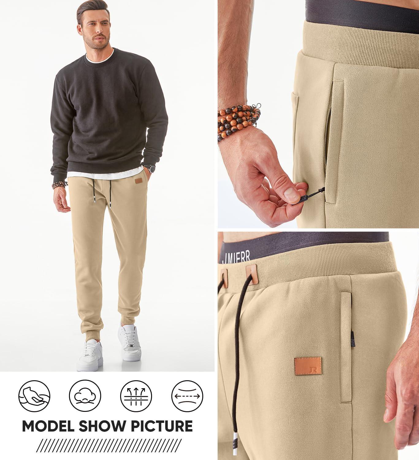 JMIERR Men’s Fleece & Regular Sweatpants with Zipper Pockets Tapered Joggers Drawstring Waist Athletic Workout Track Pants(Fleece Parchment)
