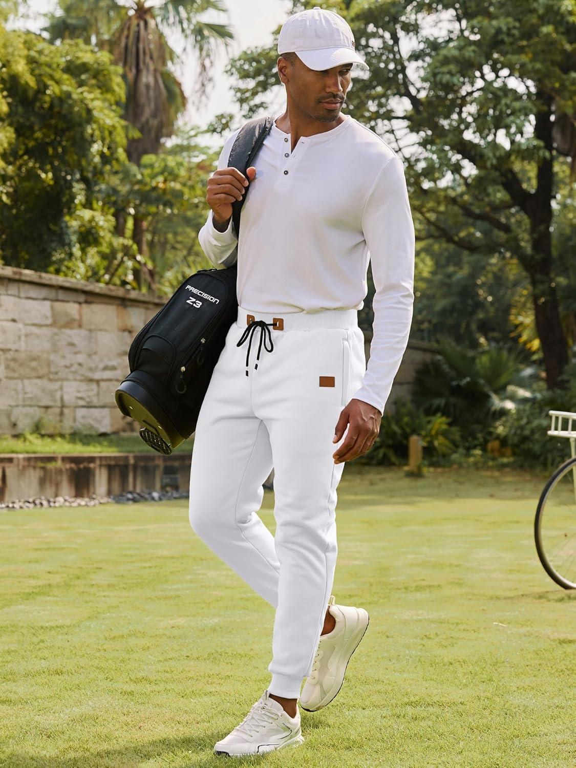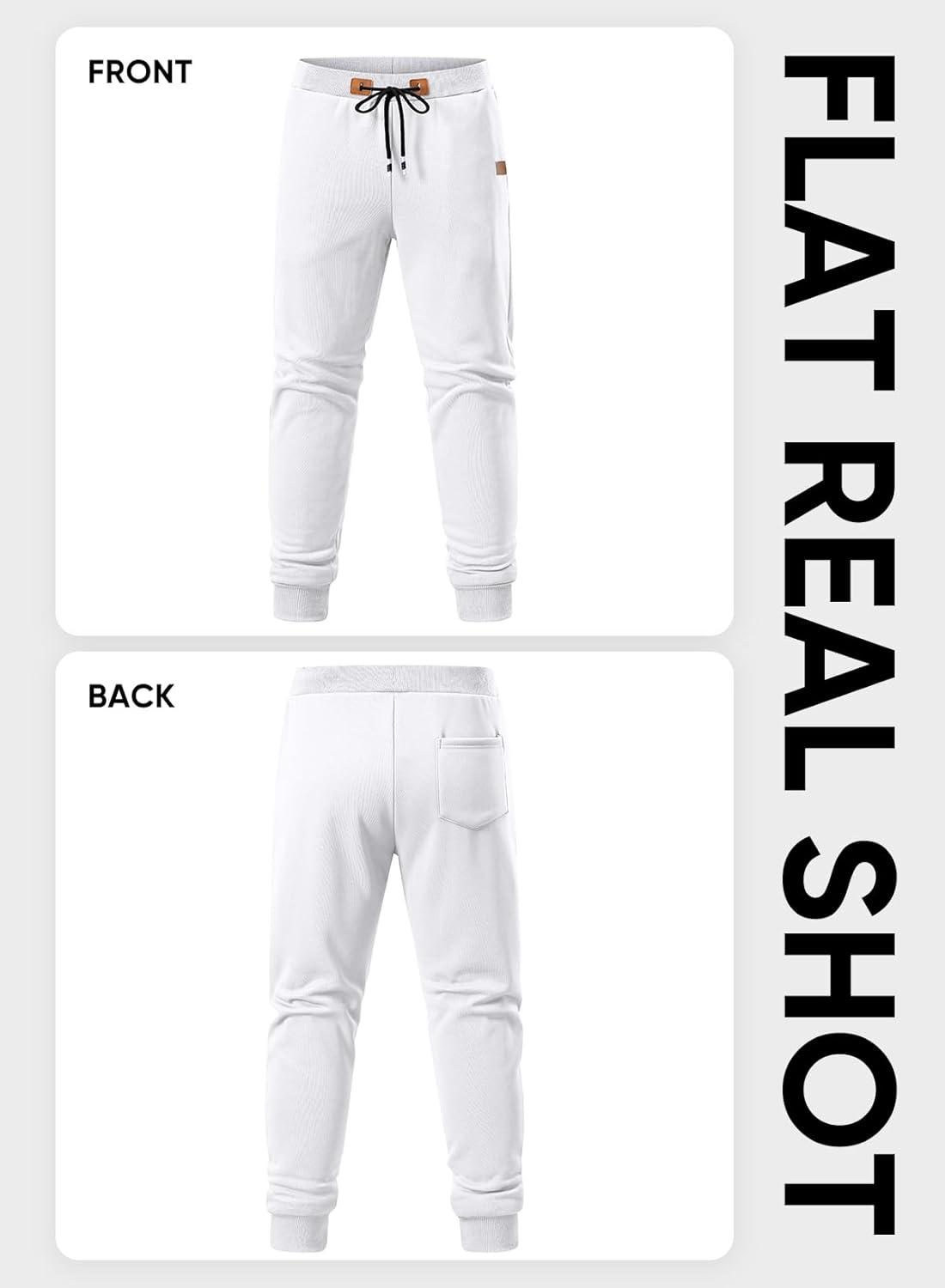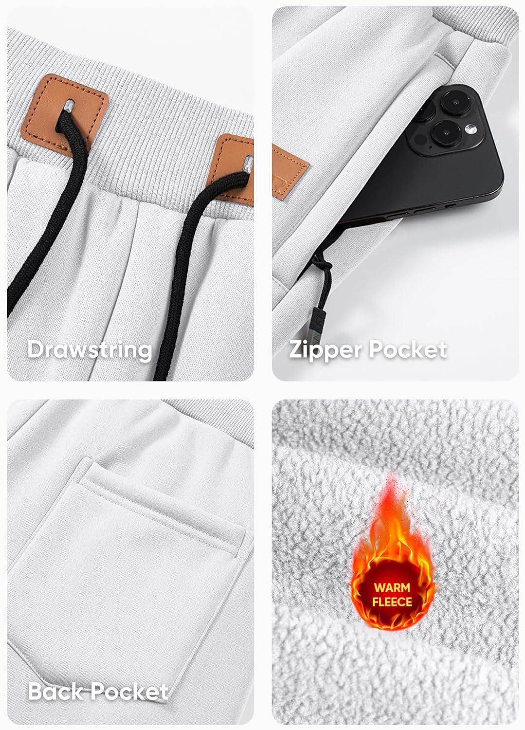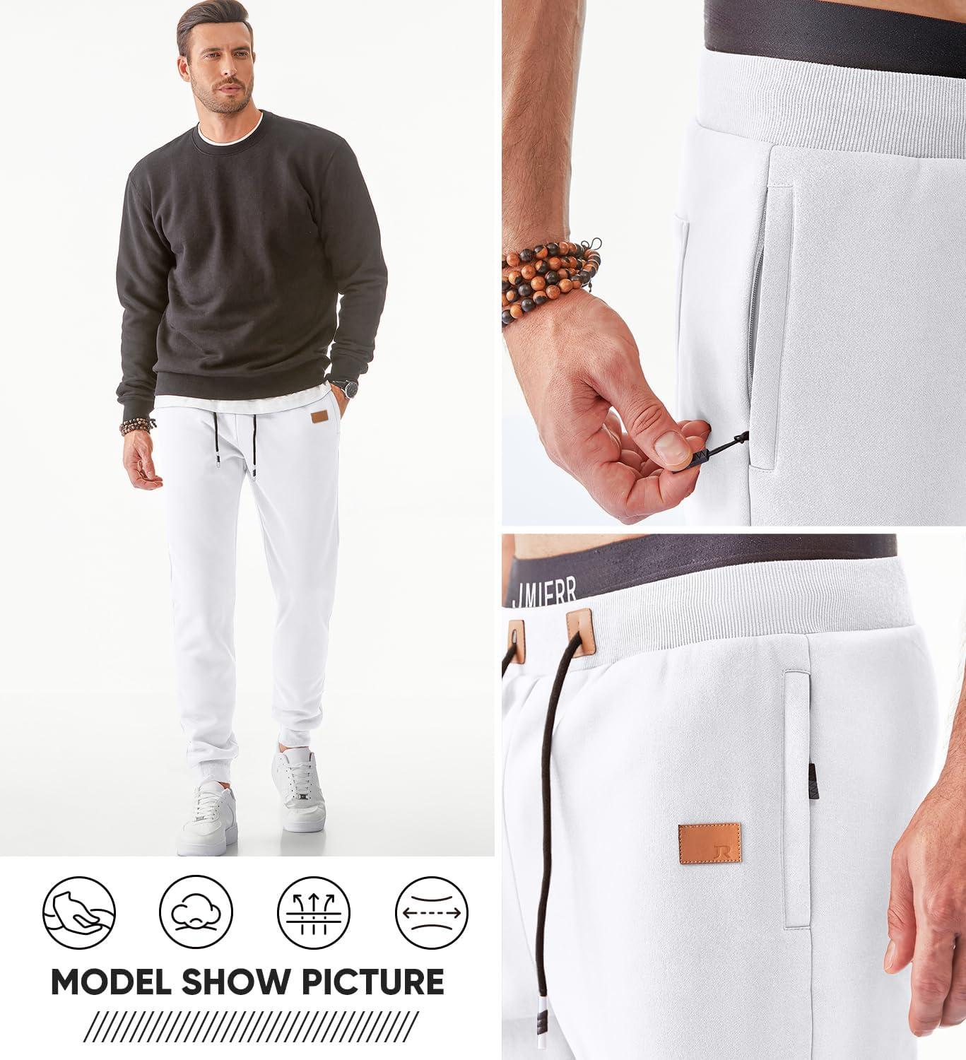 JMIERR Men’s Fleece & Regular Sweatpants with Zipper Pockets Tapered Joggers Drawstring Waist Athletic Workout Track Pants(Fleece White)