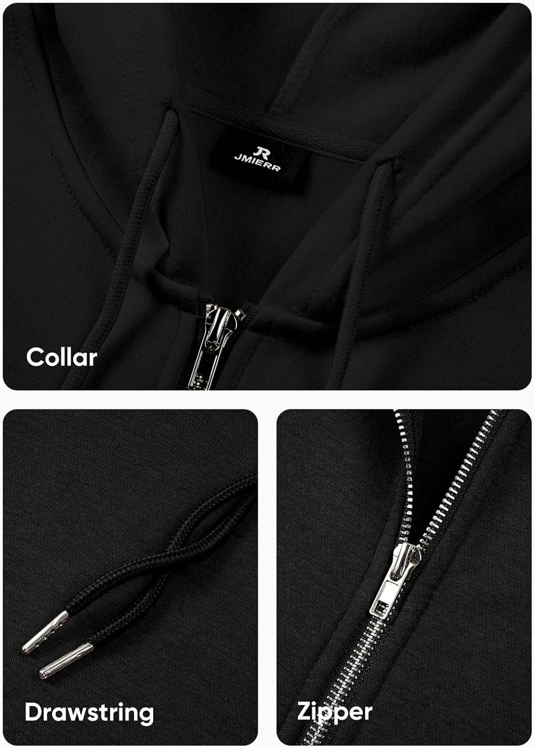 JMIERR Mens Full Zip Casual Cotton Hooded Fleece Drawstring Hoodies Pullover Sweatshirts Casual Long Sleeve Shirts(Black)