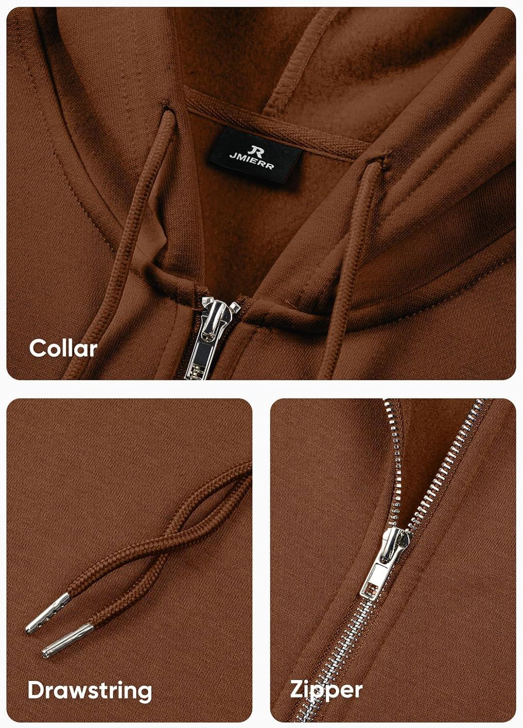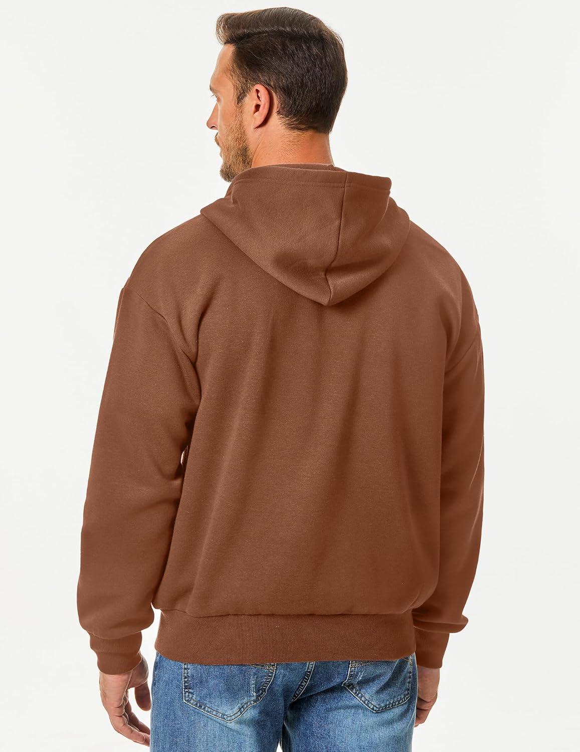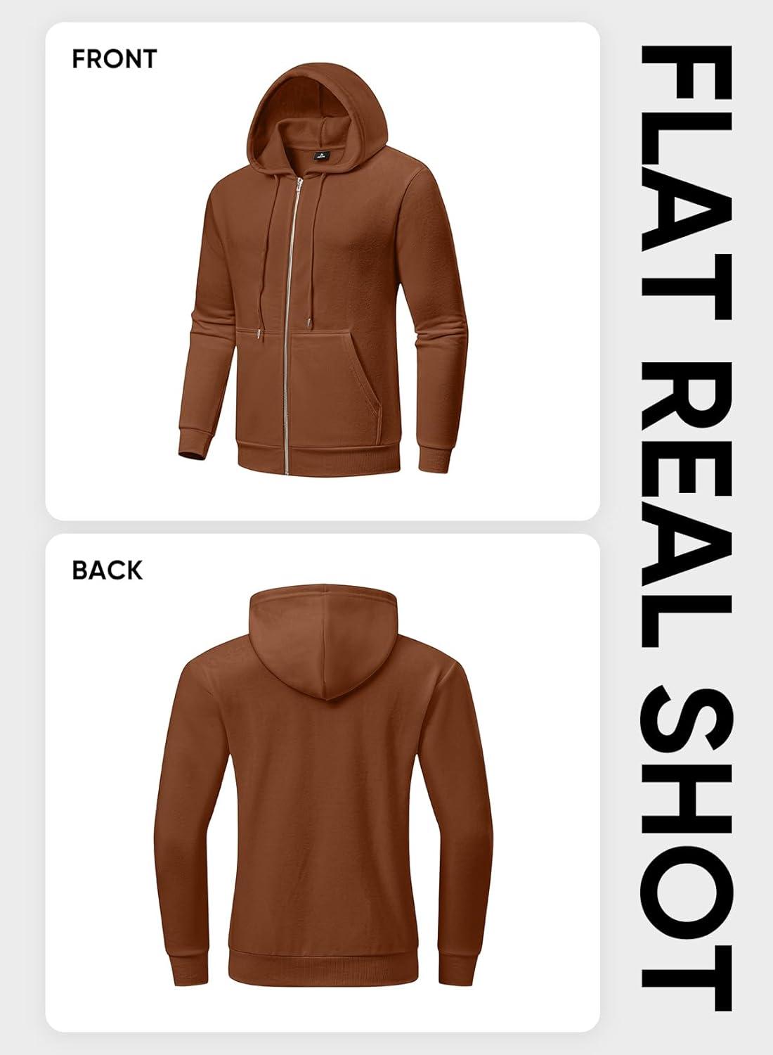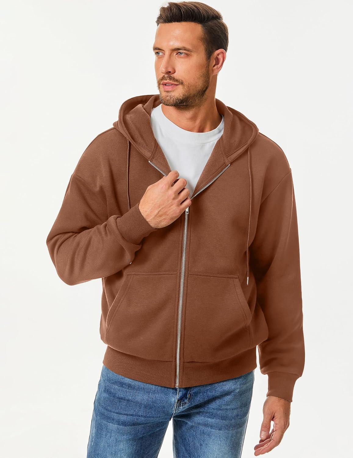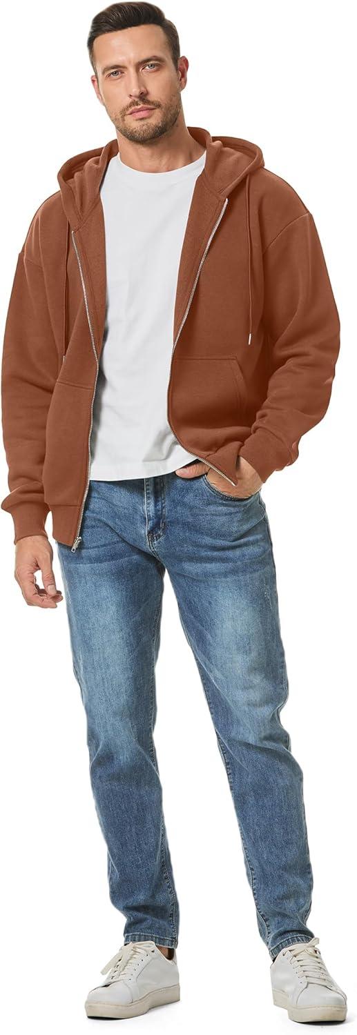 JMIERR Mens Full Zip Casual Cotton Hooded Fleece Drawstring Hoodies Pullover Sweatshirts Casual Long Sleeve Shirts(Cinnamon)