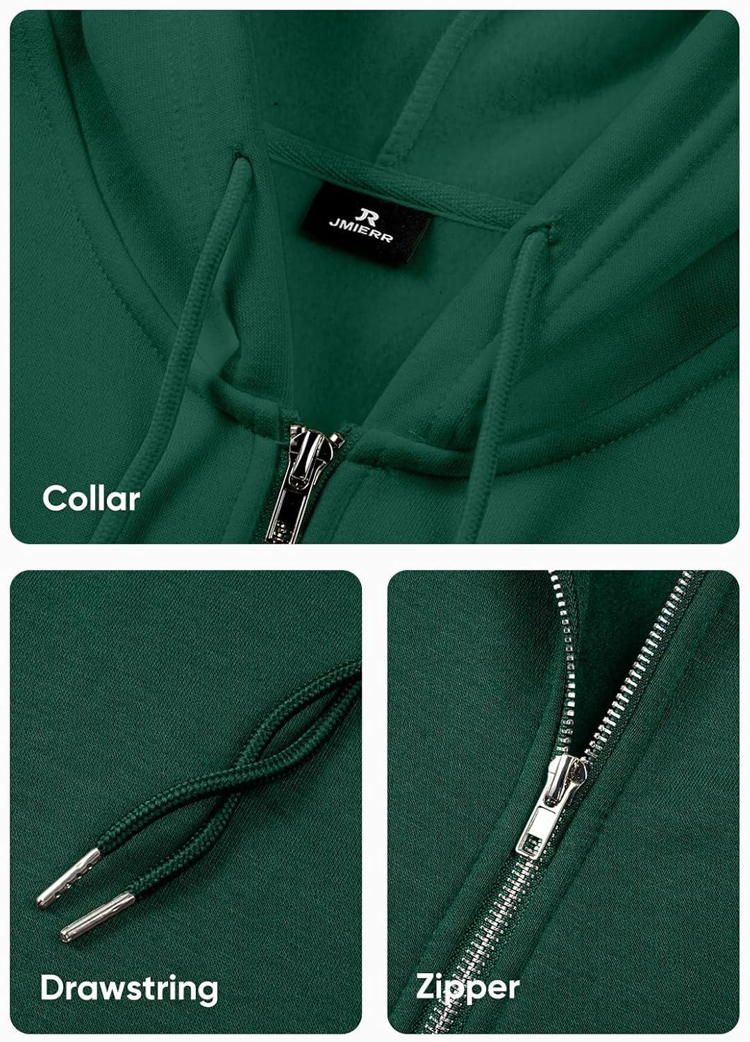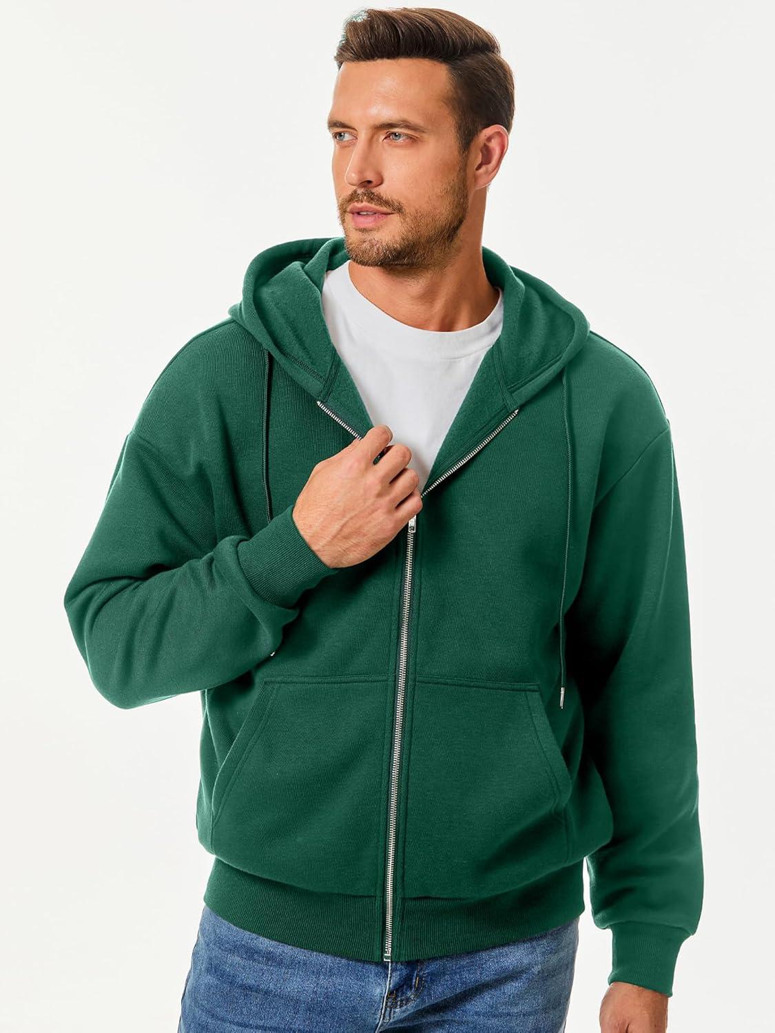 JMIERR Mens Full Zip Casual Cotton Hooded Fleece Drawstring Hoodies Pullover Sweatshirts Casual Long Sleeve Shirts(Green)