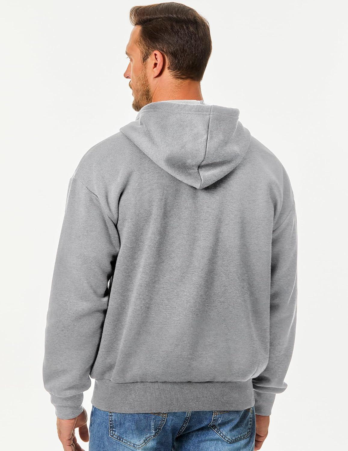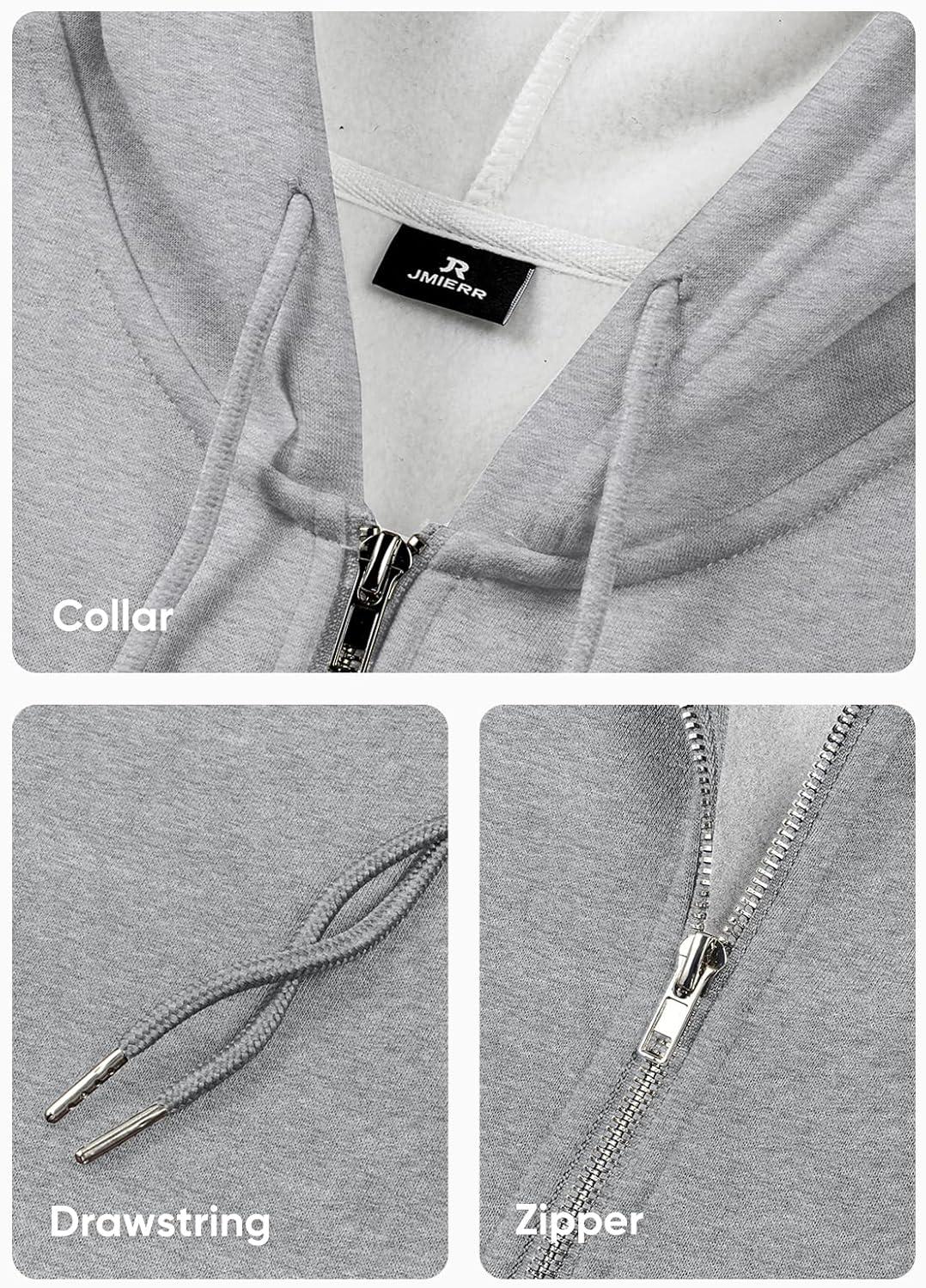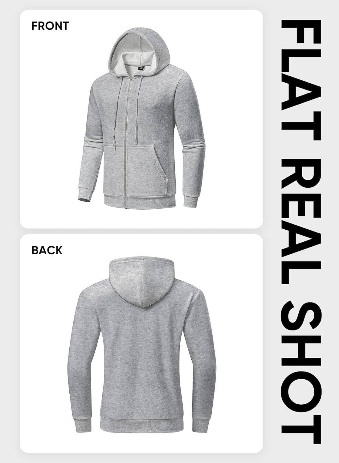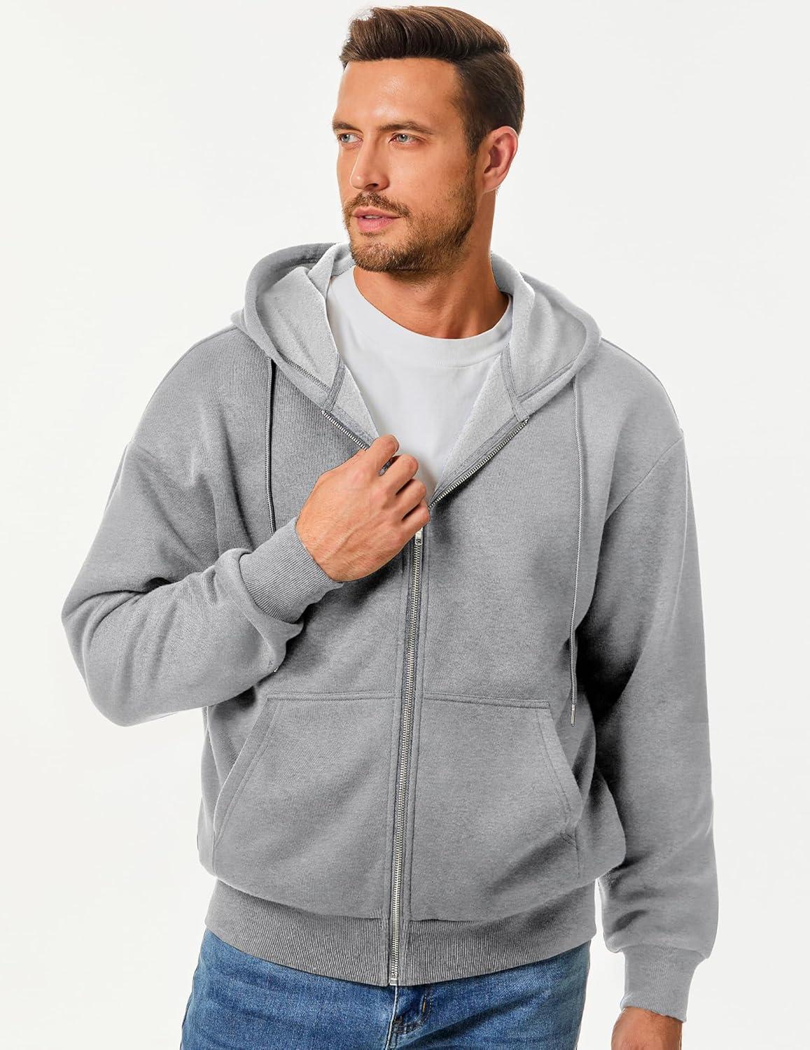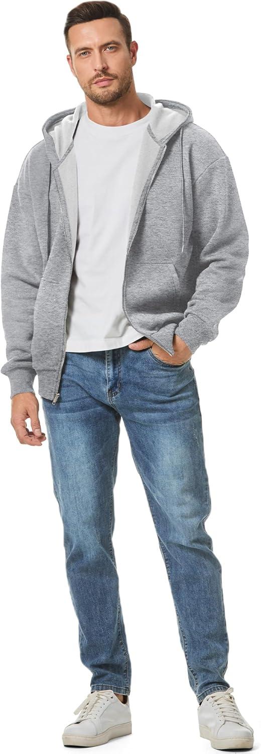 JMIERR Mens Full Zip Casual Cotton Hooded Fleece Drawstring Hoodies Pullover Sweatshirts Casual Long Sleeve Shirts(Light Grey)