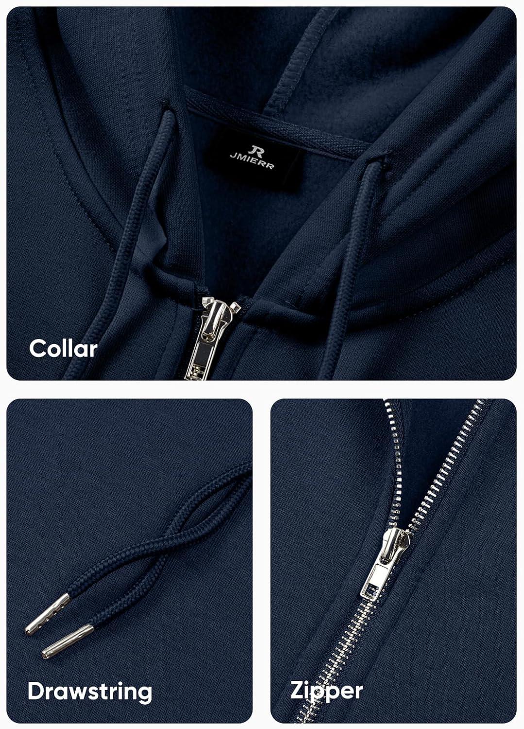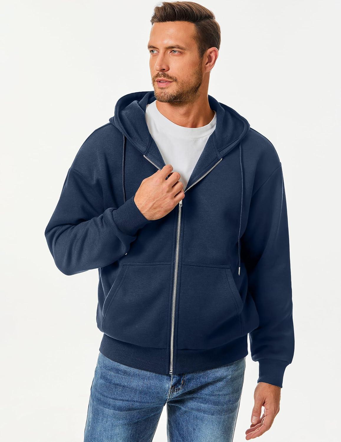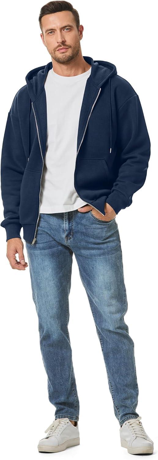 JMIERR Mens Full Zip Casual Cotton Hooded Fleece Drawstring Hoodies Pullover Sweatshirts Casual Long Sleeve Shirts(Sail Blue)