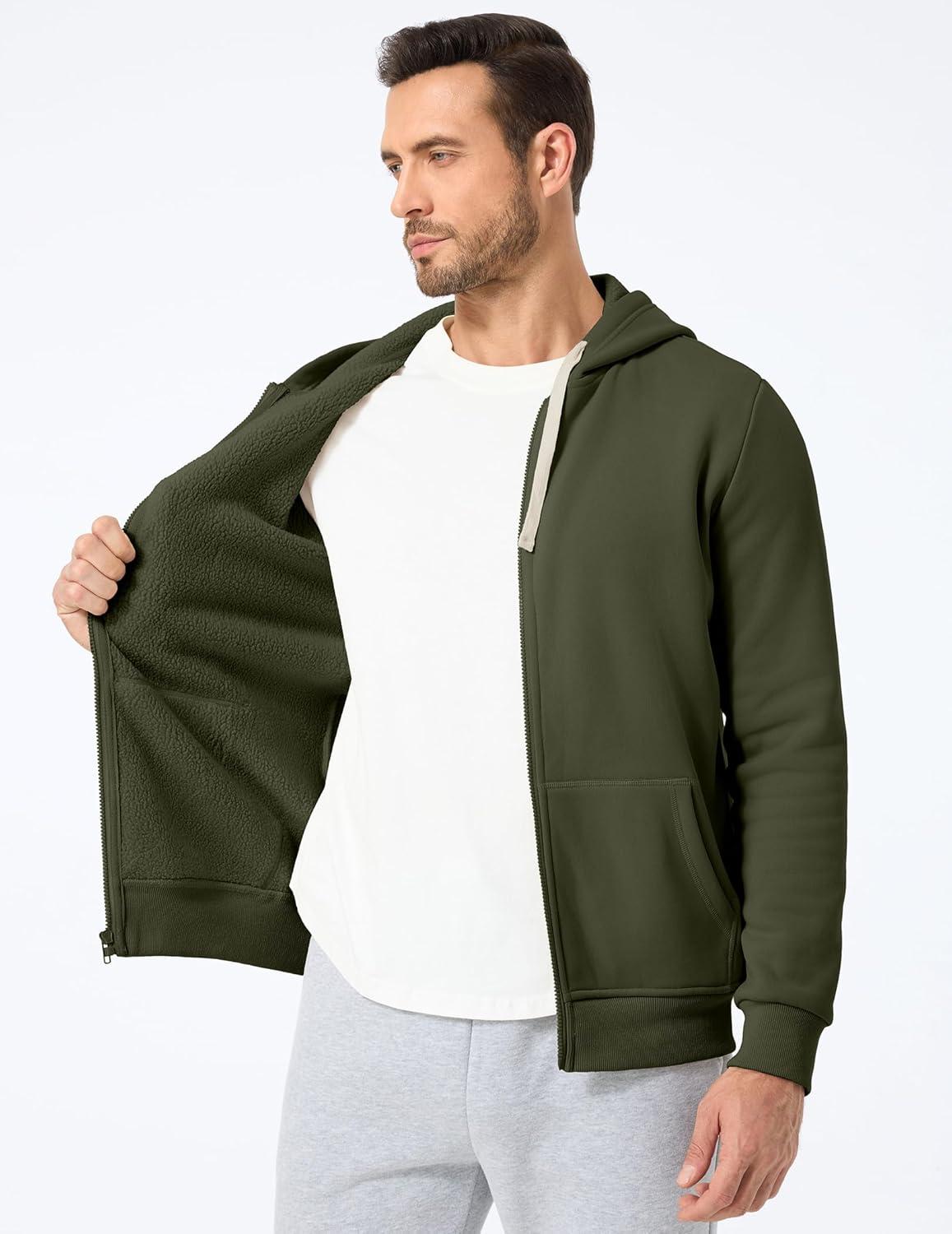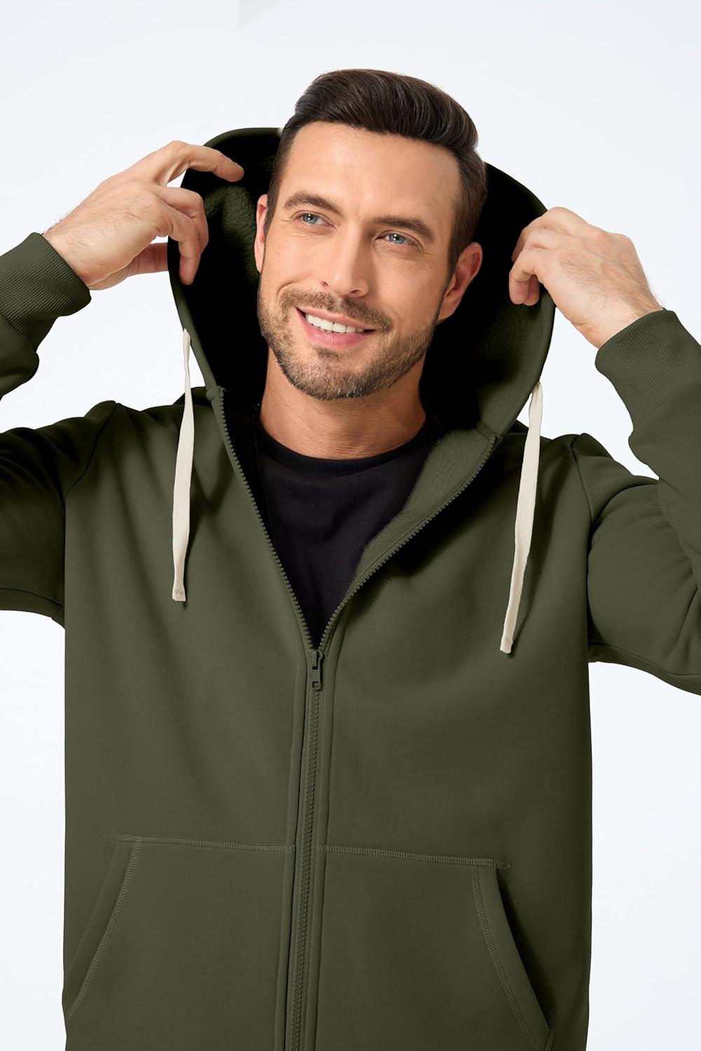 JMIERR Mens Full Zip Hooded Fleece Drawstring Hoodies Pullover Sweatshirts Casual Long Sleeve Shirts(Moss Green)